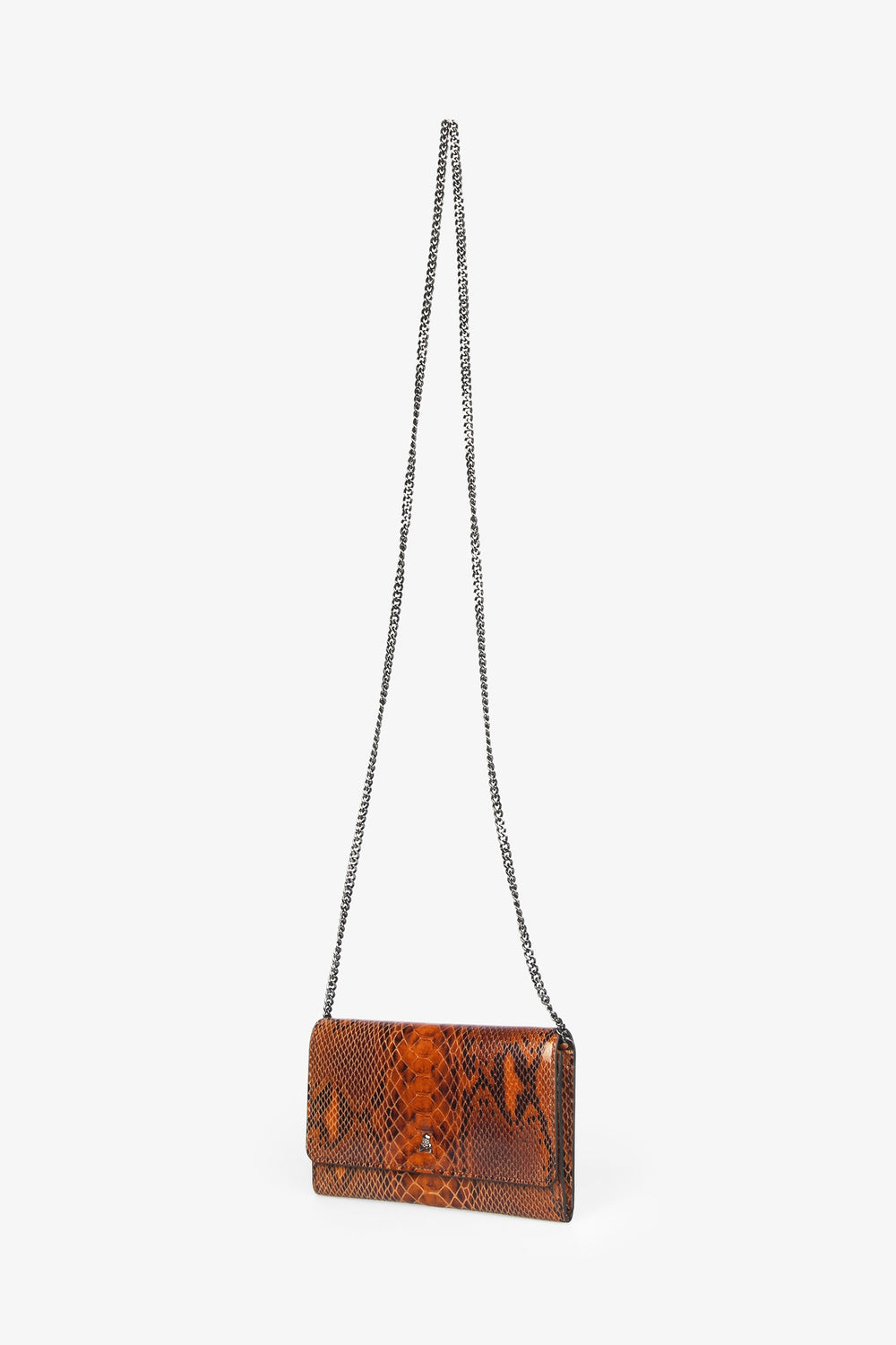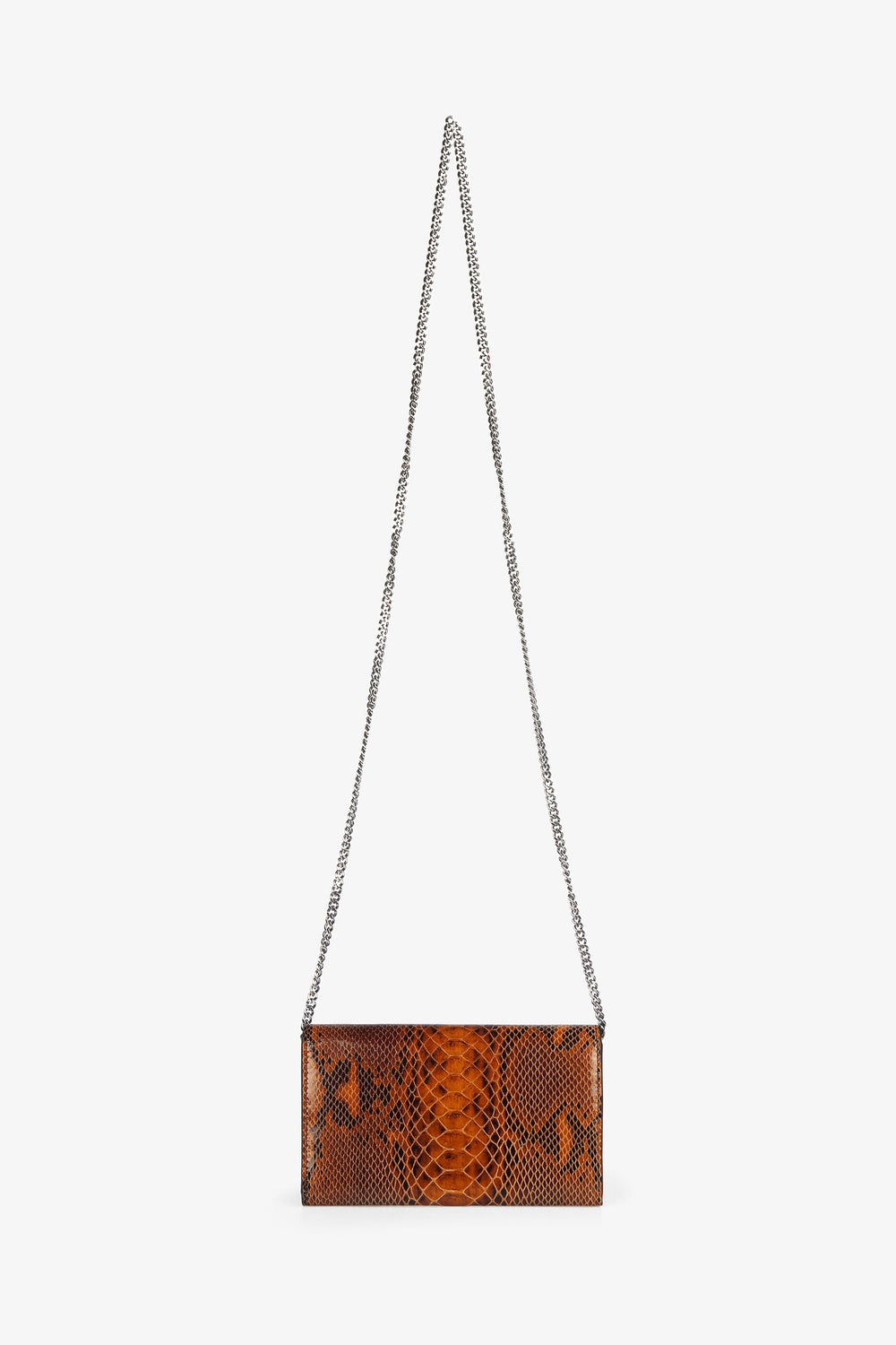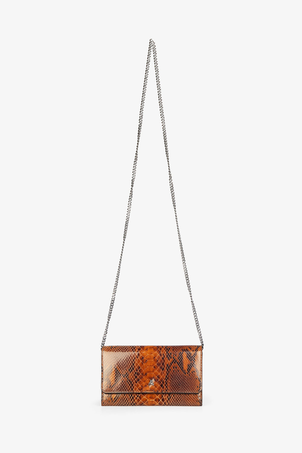 Embossed bag made of 100% Italian leather. Magnetic fastening, inner slots and triple position: clutch, long crossbody chain and short chain. Height: 11 cm / Width: 20 cm / Depth: 3 cm.