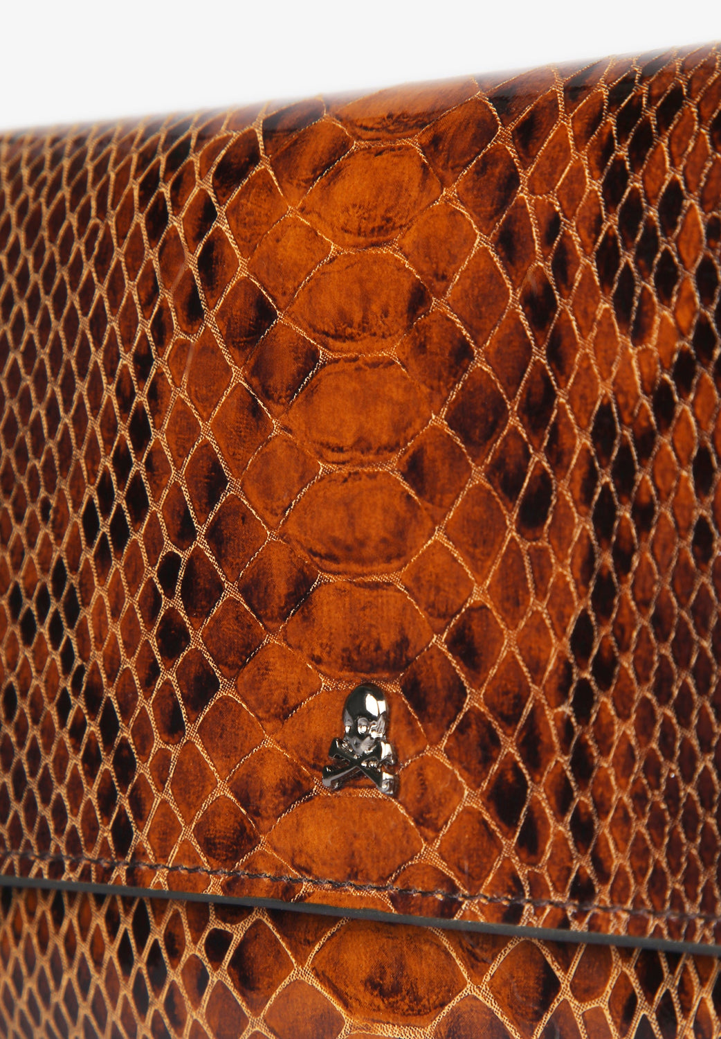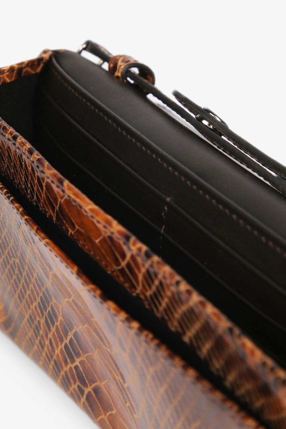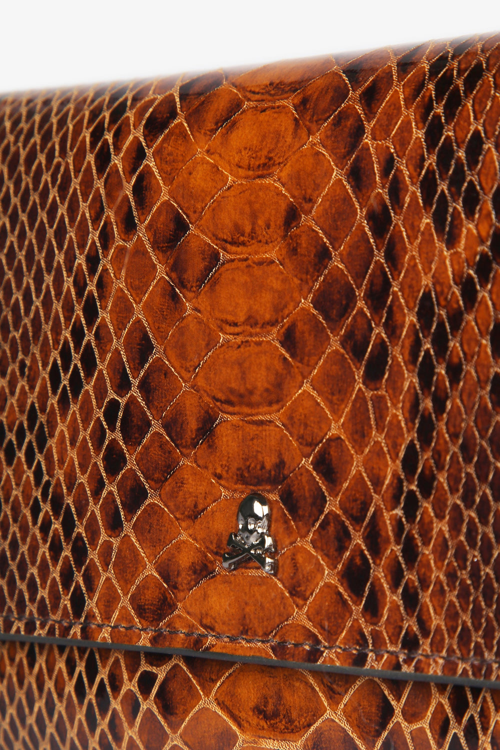 Embossed bag made of 100% Italian leather. Magnetic fastening, inner slots and triple position: clutch, long crossbody chain and short chain. Height: 11 cm / Width: 20 cm / Depth: 3 cm.