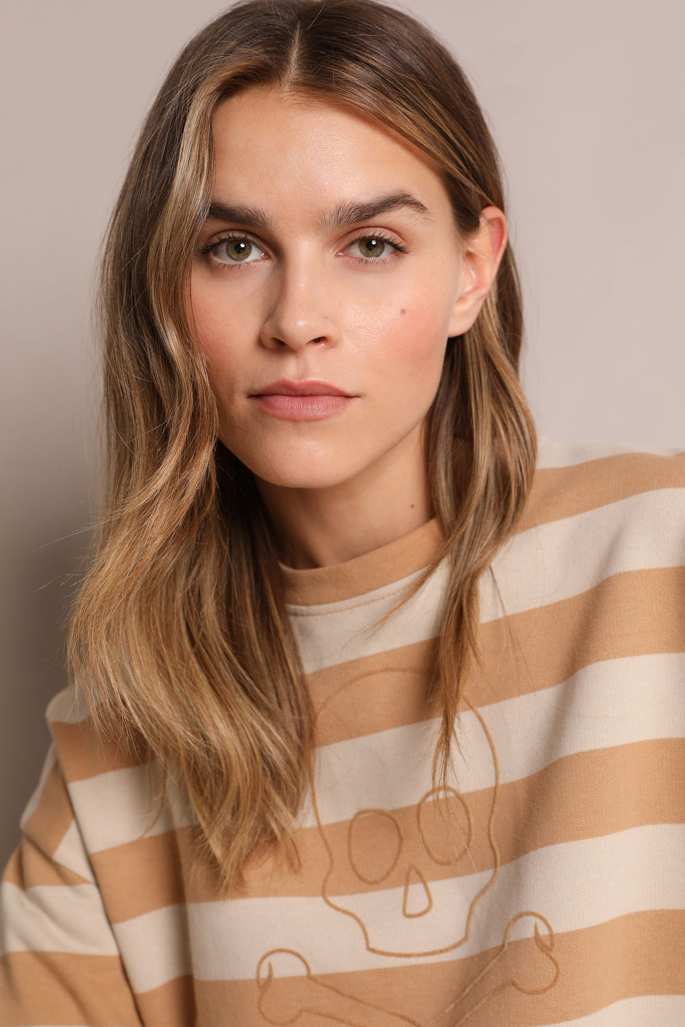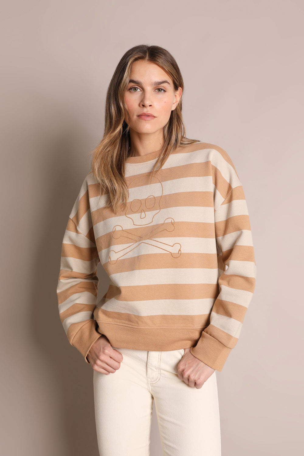 Striped sweatshirt with front skull detail, made of 100% cotton. Regular fit, round neck and long slightly oversize sleeves.