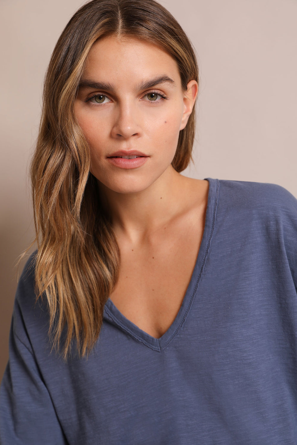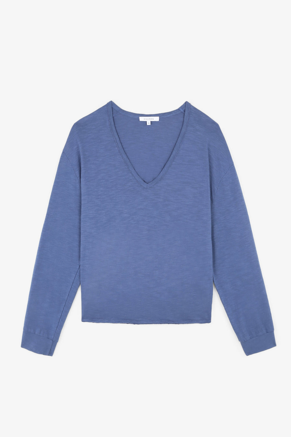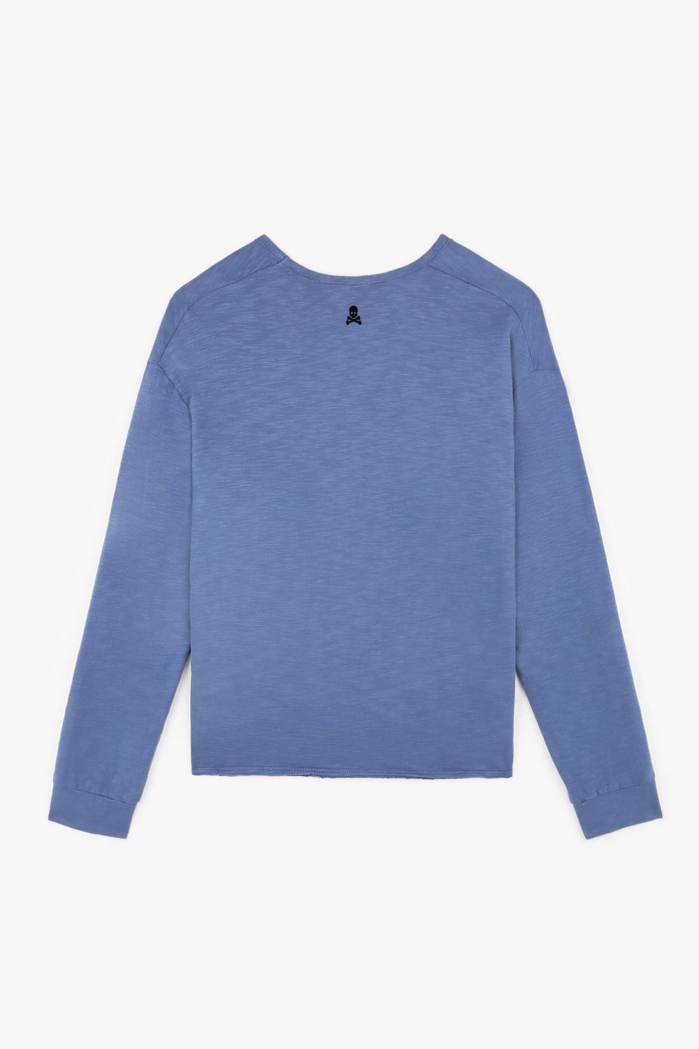 Plain T-shirt made from 100% flocked BCI cotton. Regular fit, with a V-neck and long sleeves. Mini skull on the back.