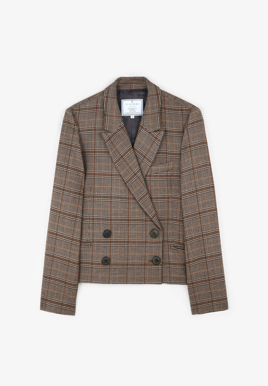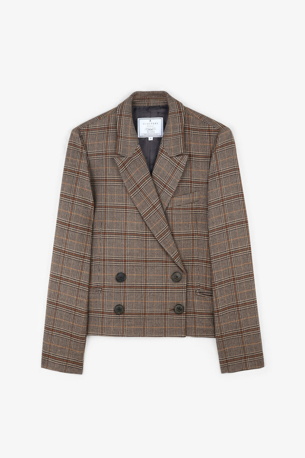 Cropped check blazer in a slightly stretchy fabric. Regular fit, collar with lapels and crossover fastening. Long sleeves.