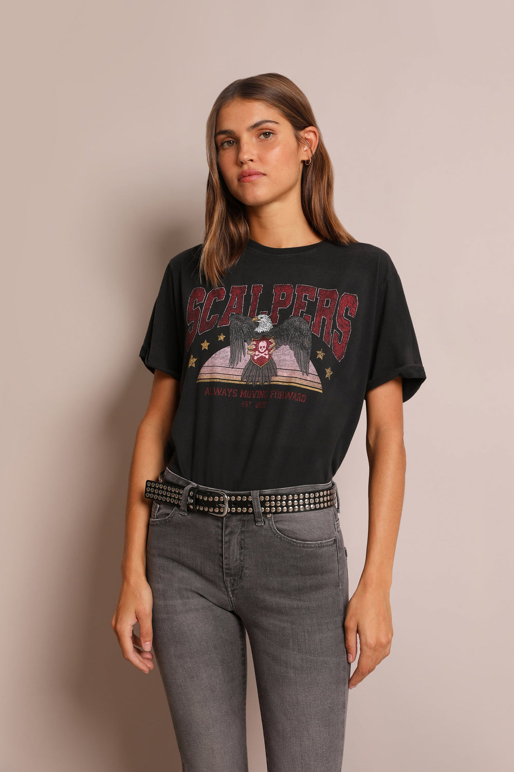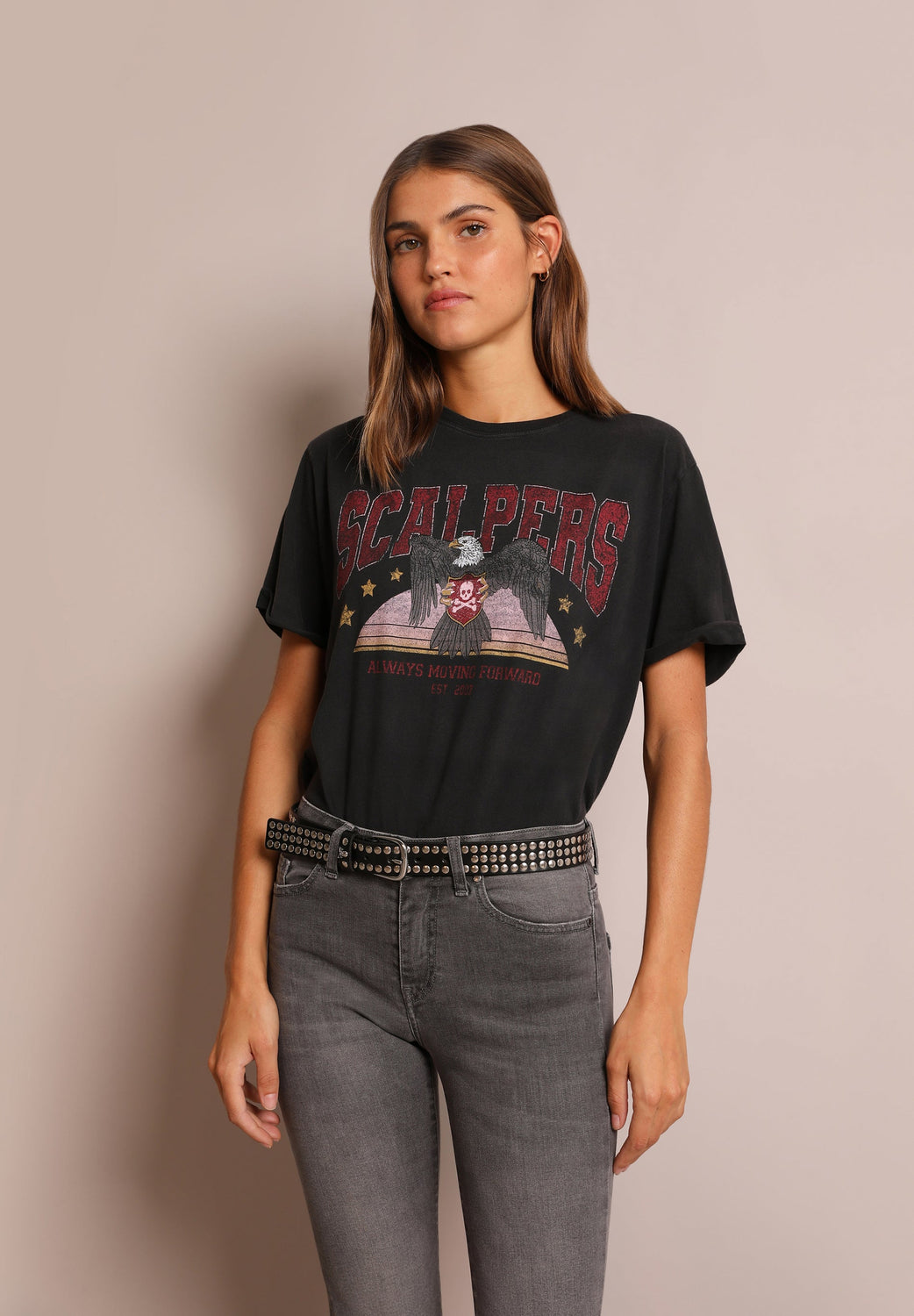 Front print T-shirt. Made from 100% cotton, regular fit, round neck and short, turn-up sleeves.