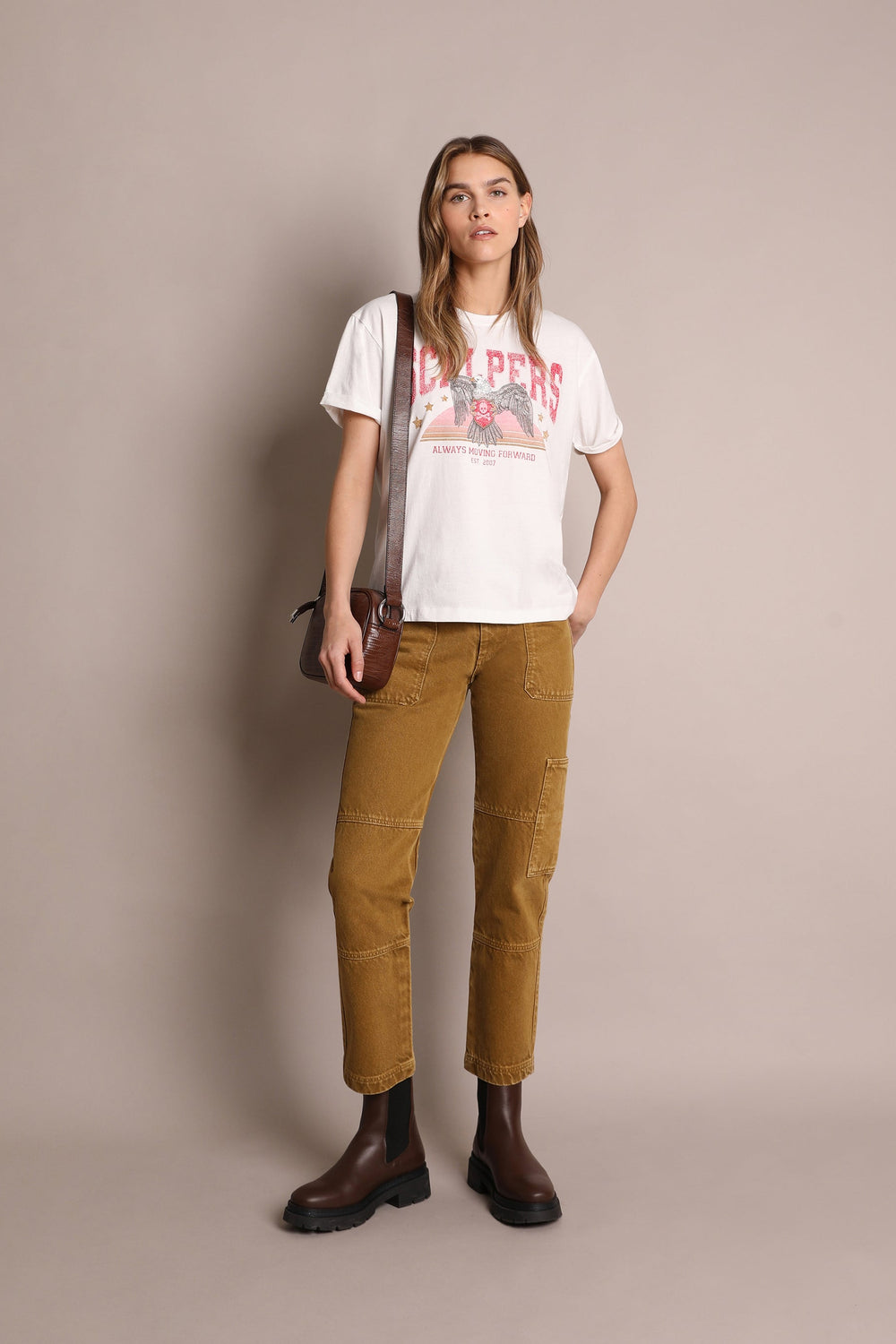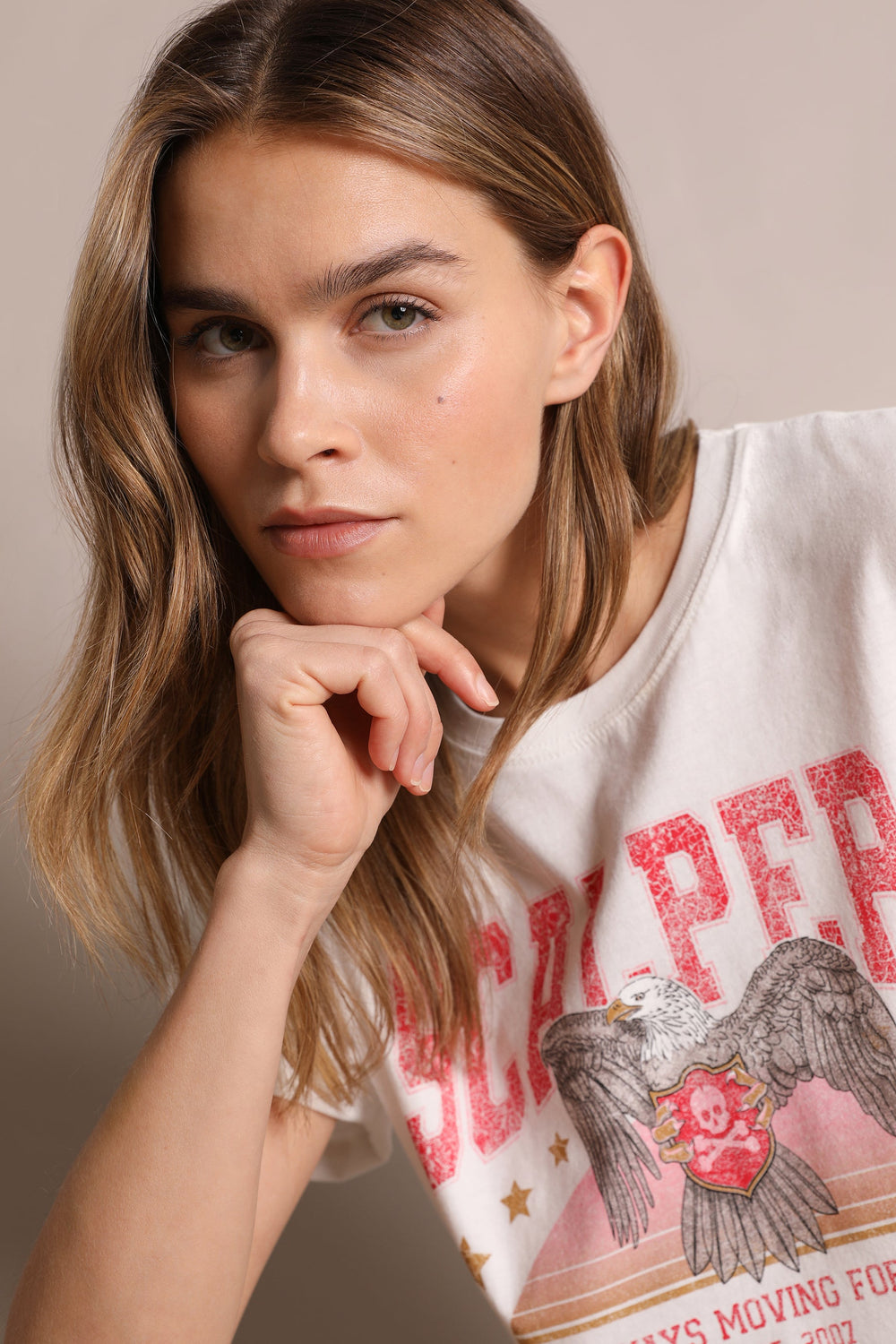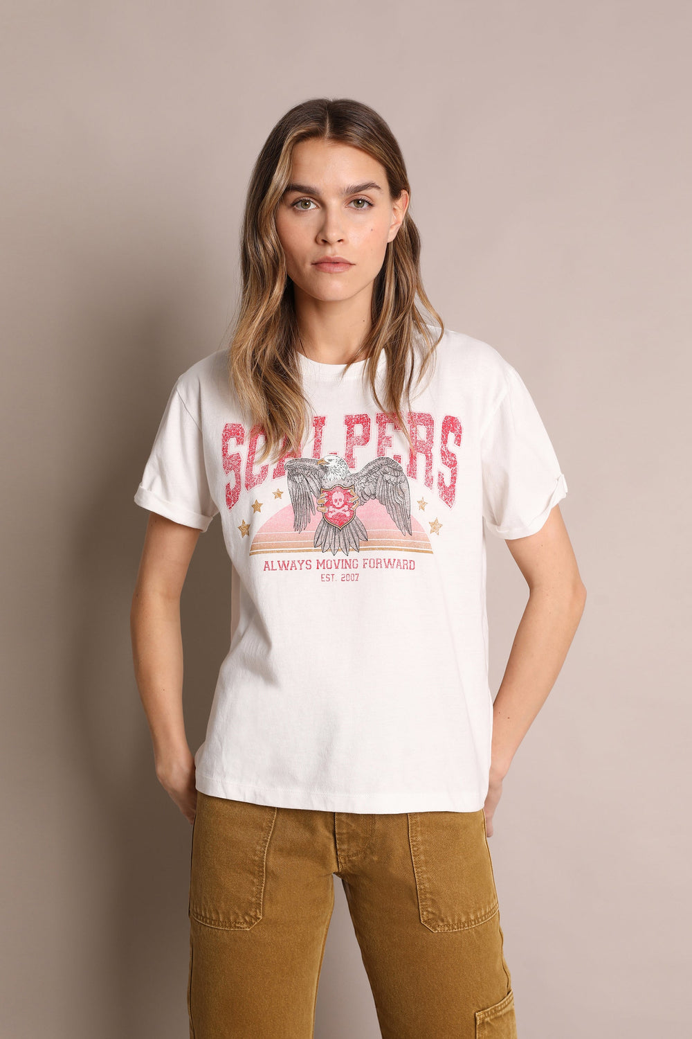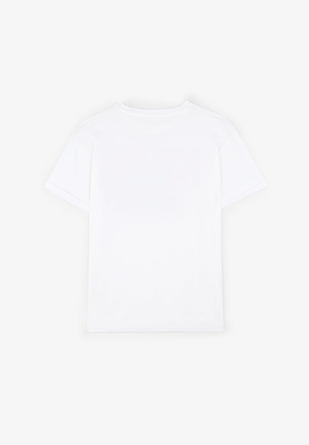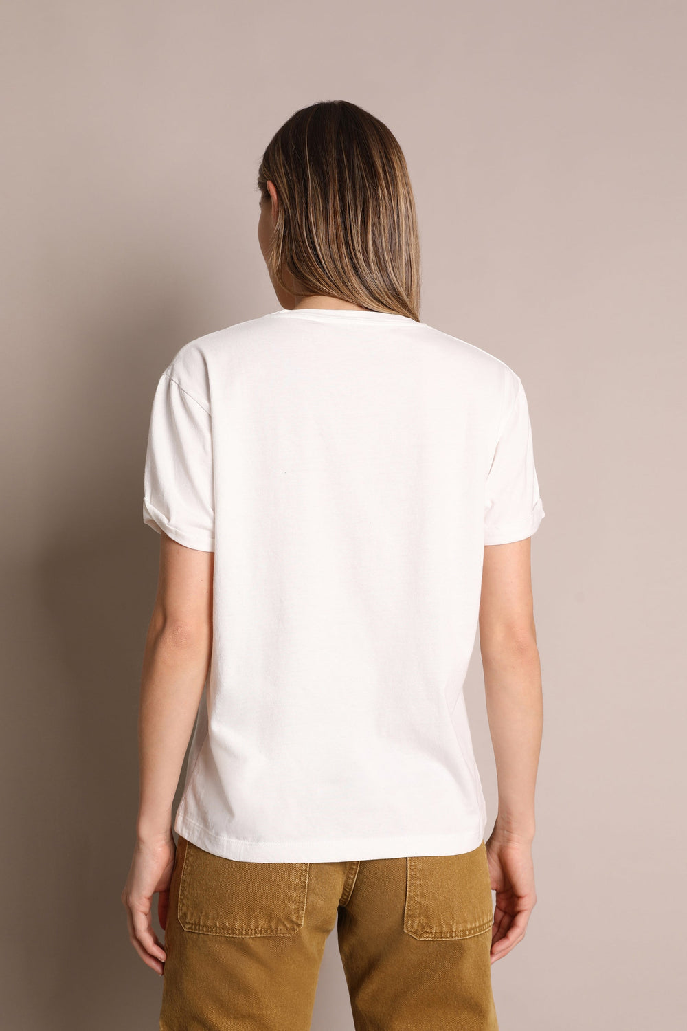 Front print T-shirt. Made from 100% cotton, regular fit, round neck and short, turn-up sleeves.
