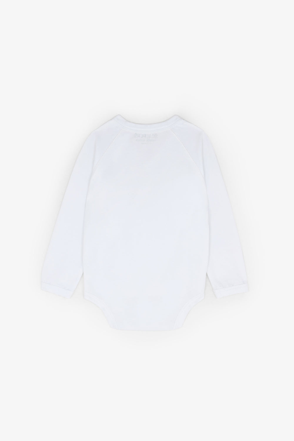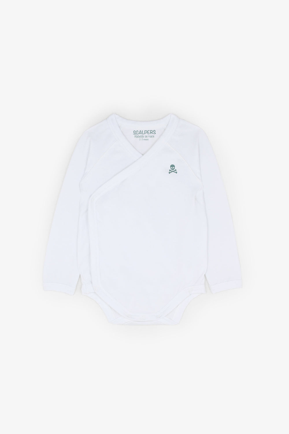 Baby bodysuit (up to 3 months). Made of 100% BCI cotton. Long sleeves. Crossover fastening. Snap buttons fastening.