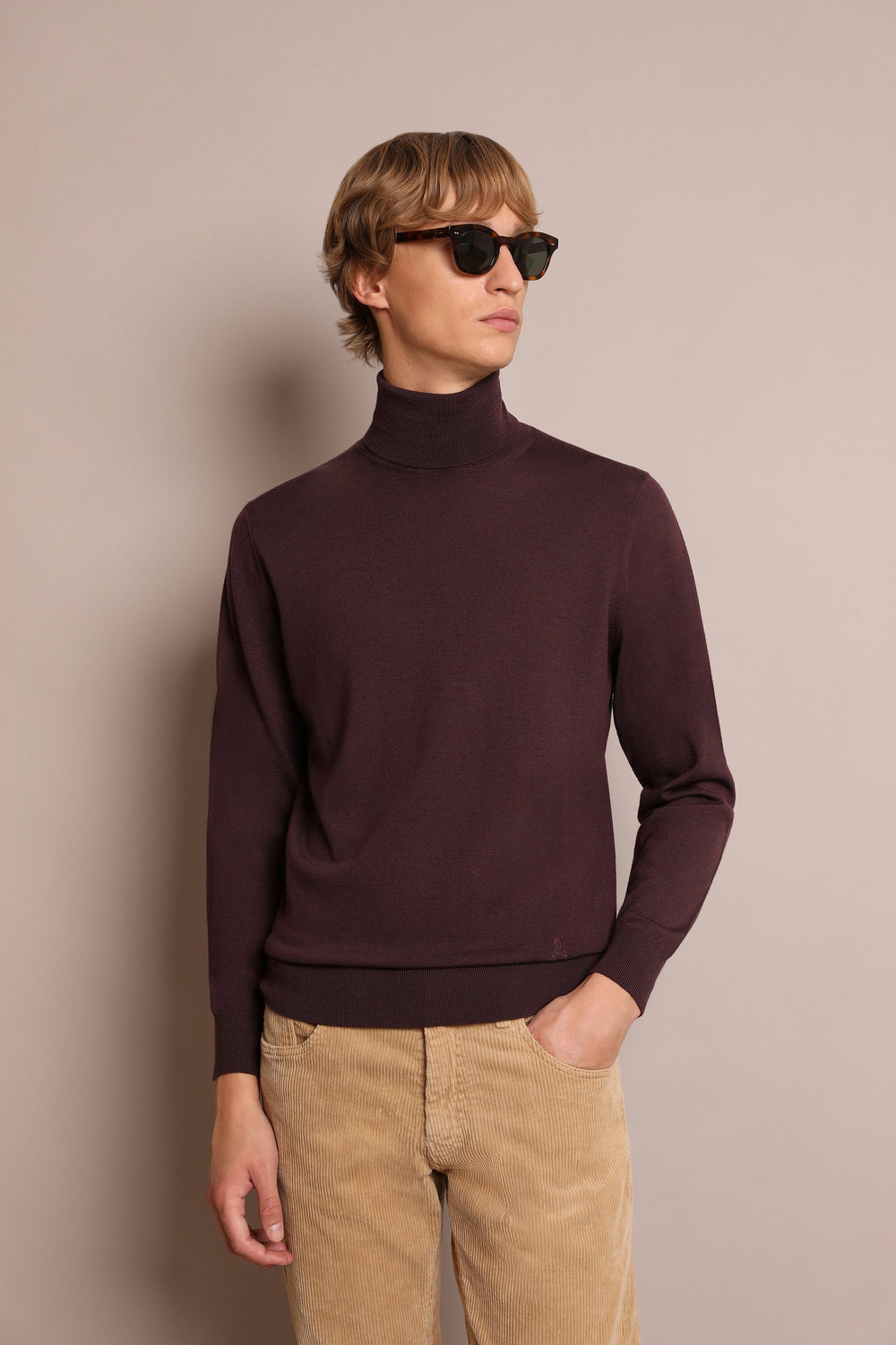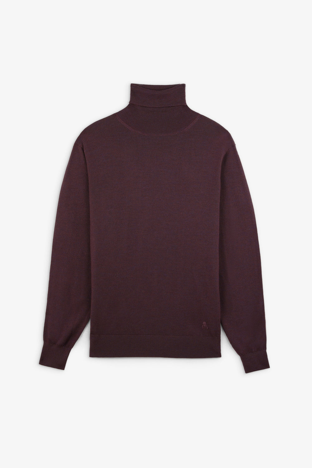 Sweater with matching embroidered skull detail. Made of 100% Merino Wool, regular fit, roll neck and long sleeves