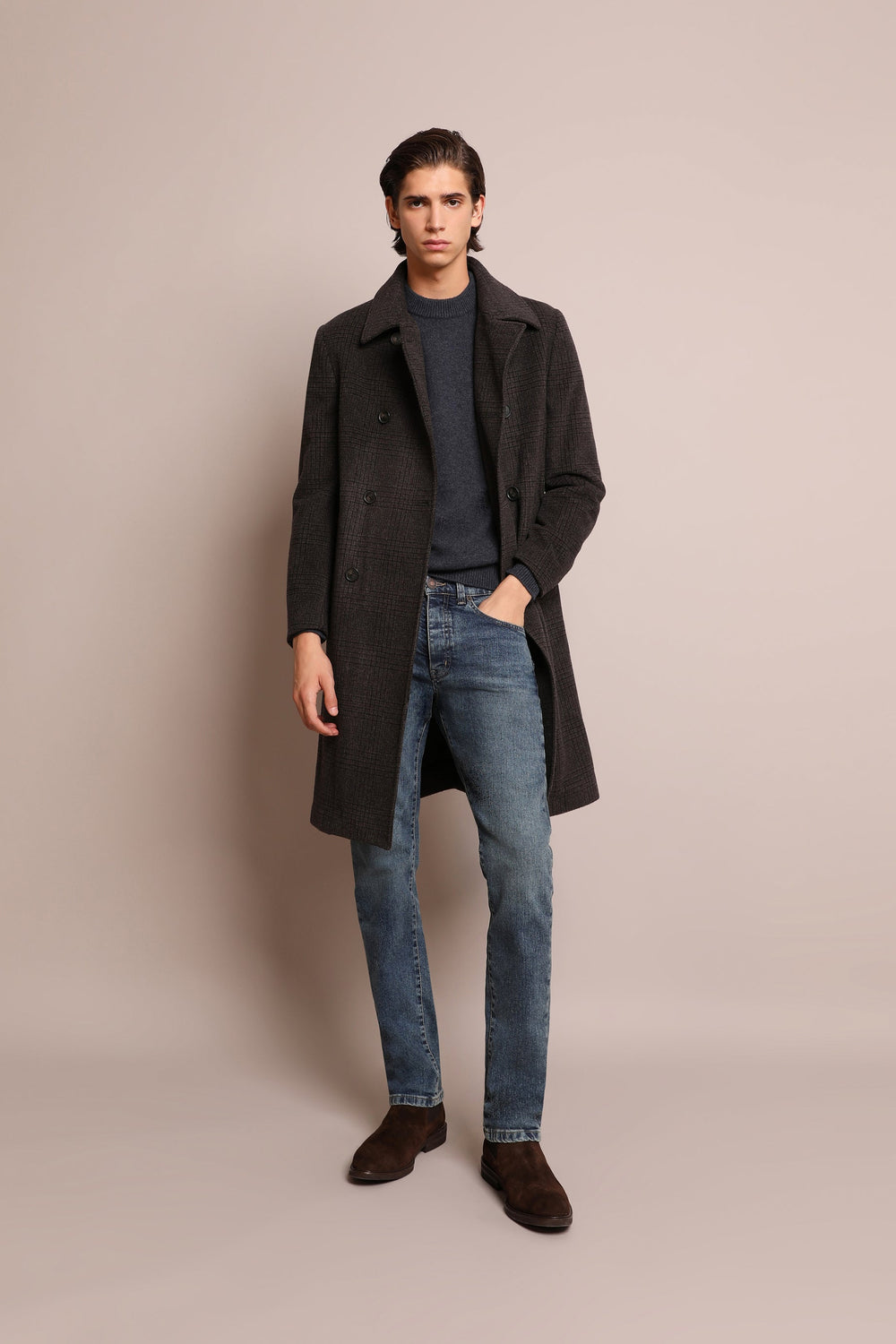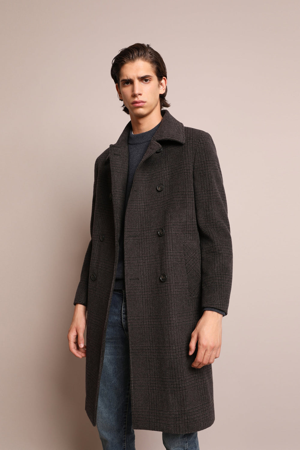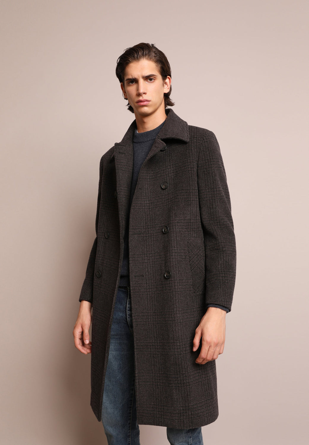 Check coat made of a wool blend. Regular fit, classic collar and button fastening. Long sleeves and side pockets.