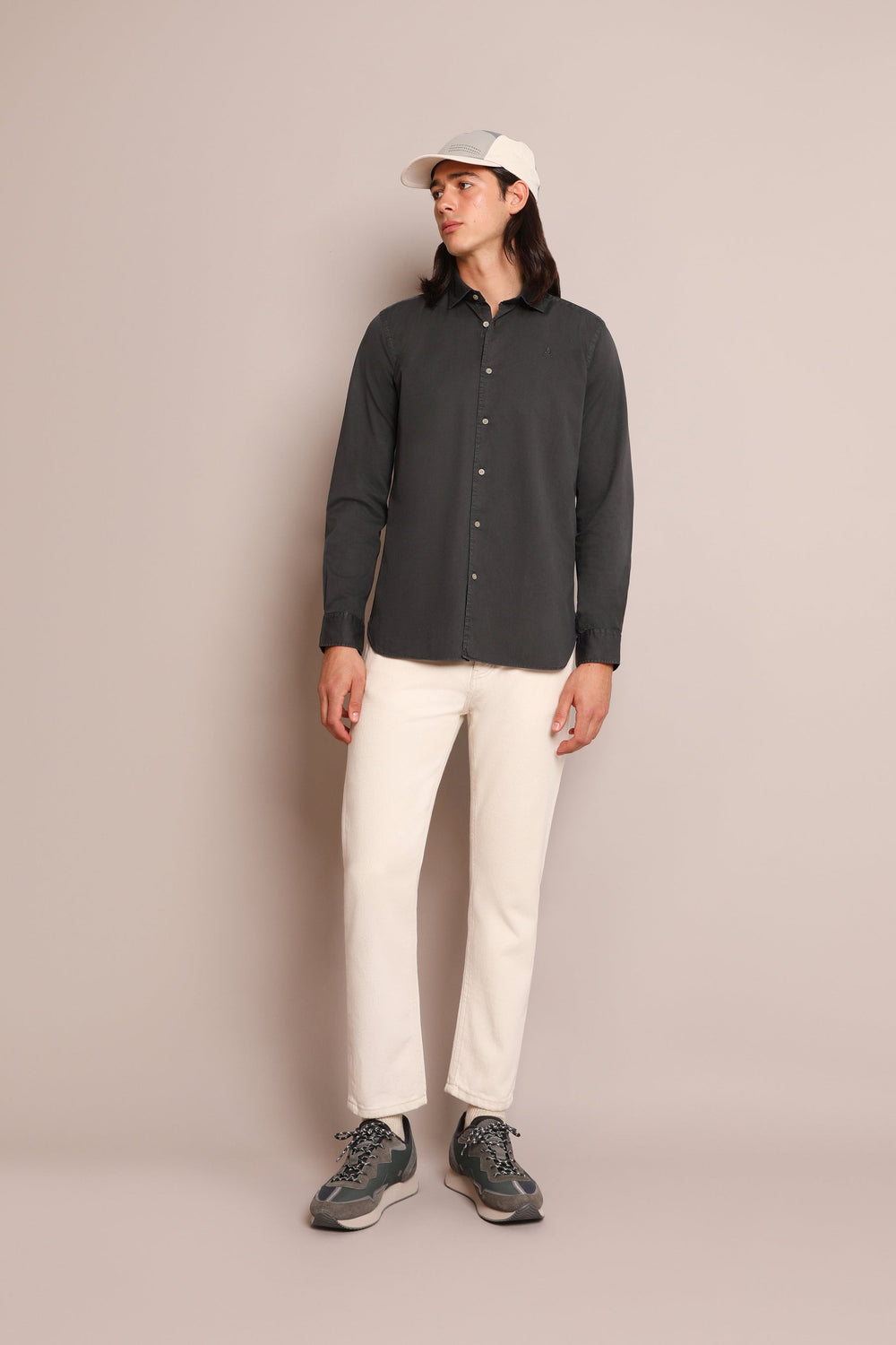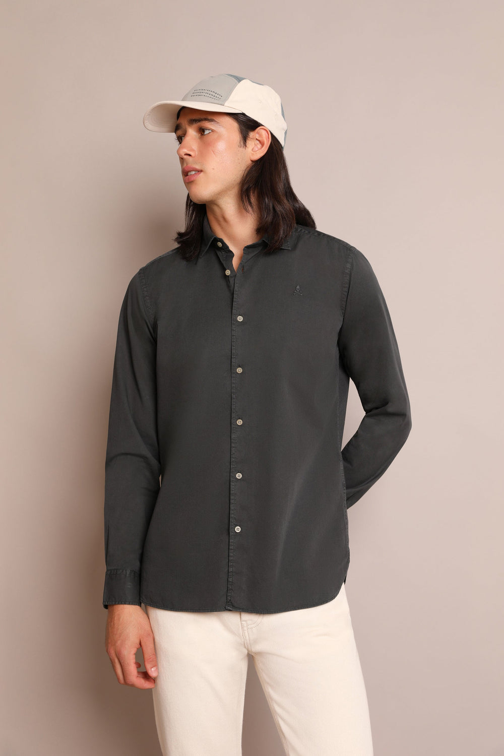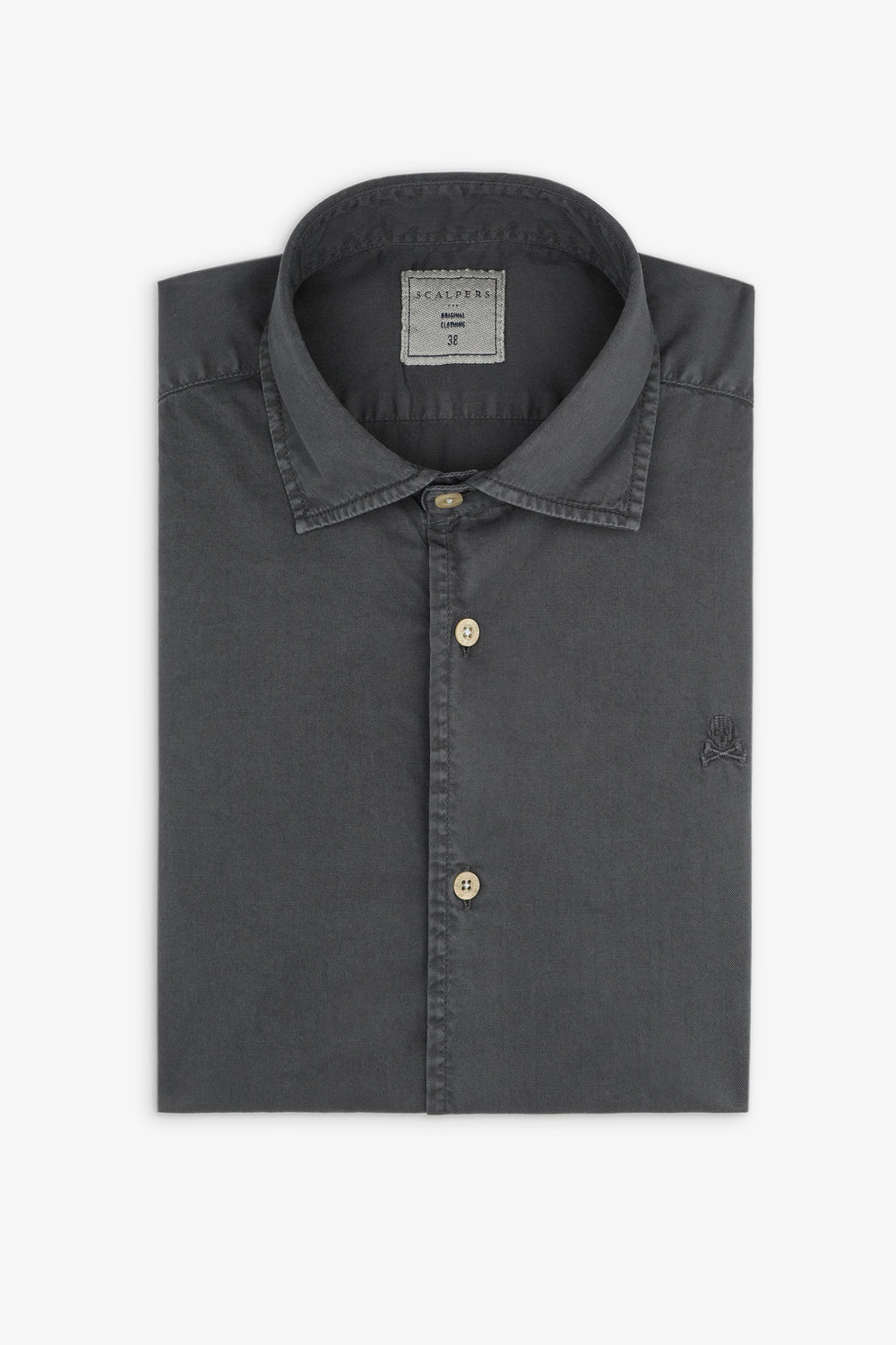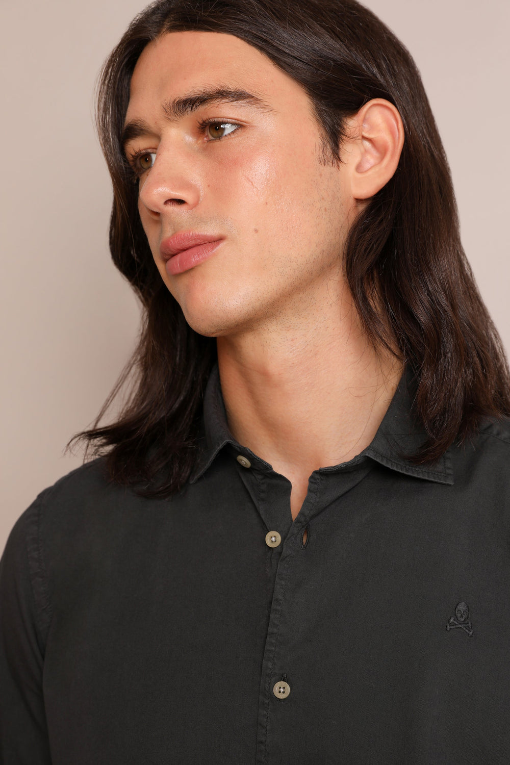 Faded shirt with a matching embroidered skull. Made of 100% cotton, regular fit, Italian collar, button fastening and long sleeves.