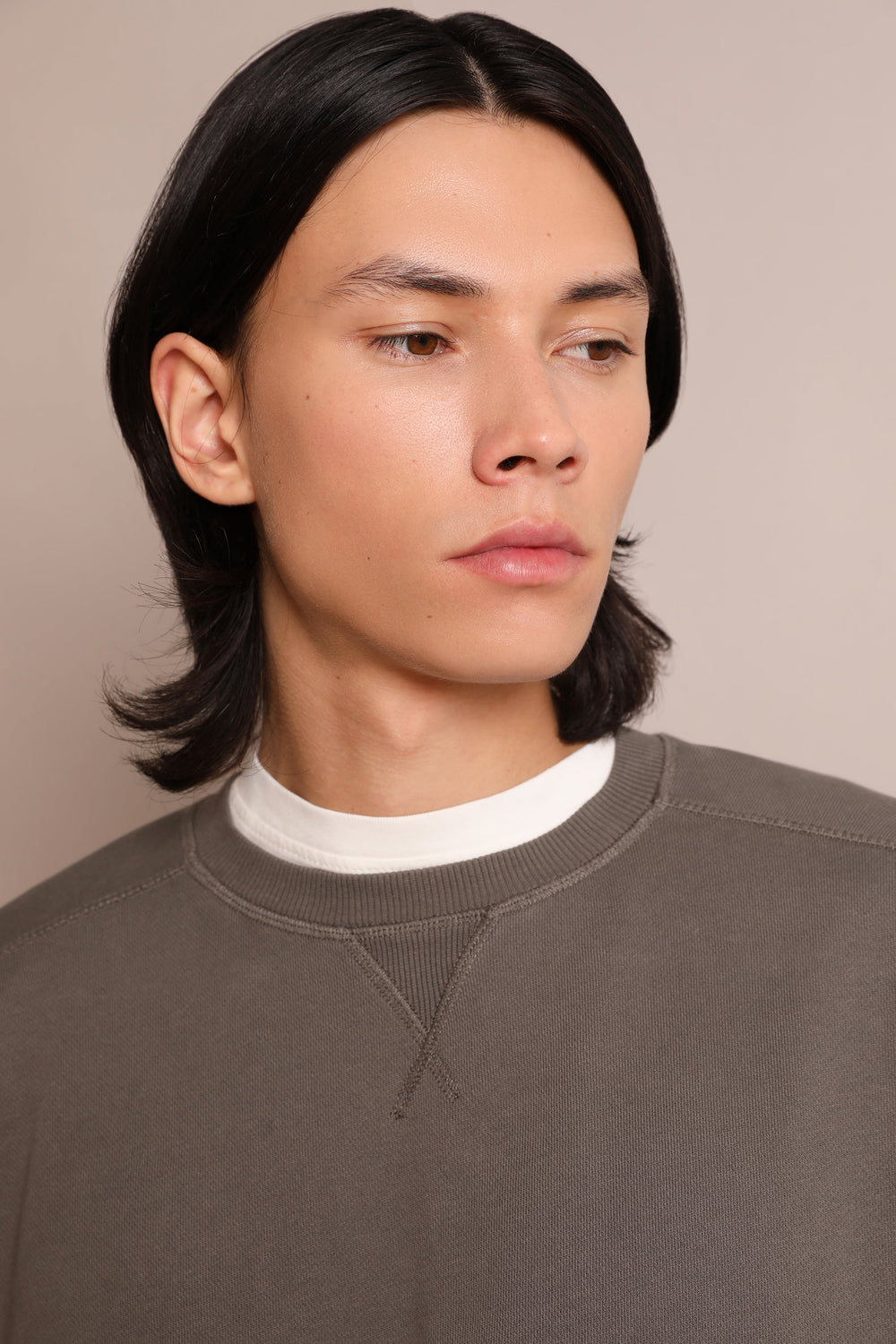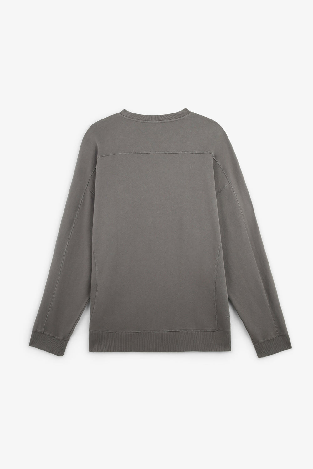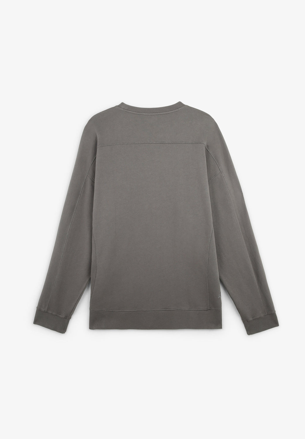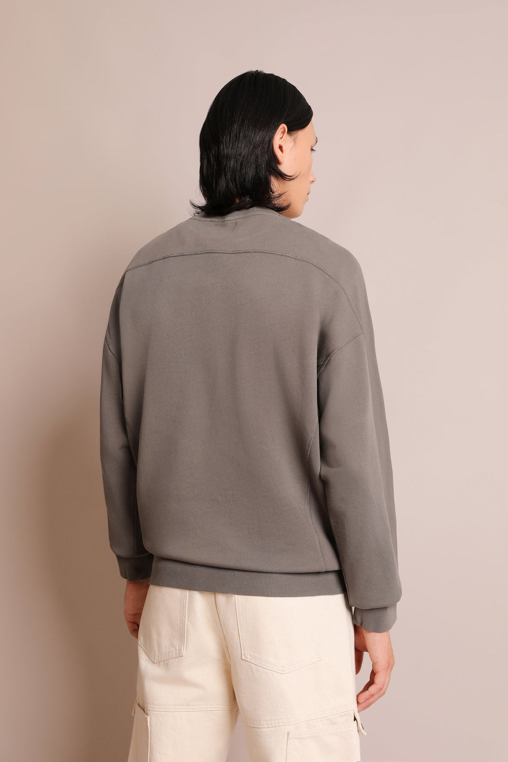 Sweatshirt with a pouch pocket. Made from 100% organic cotton, oversized cut, high pouch, round neck with crossover stitching and side embroidery