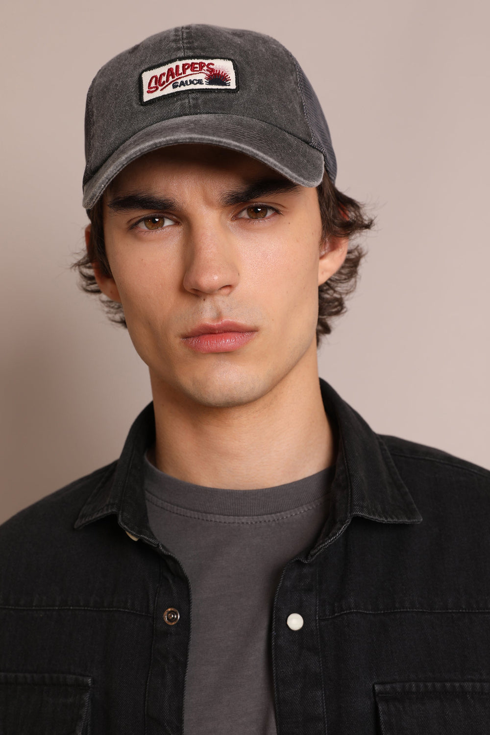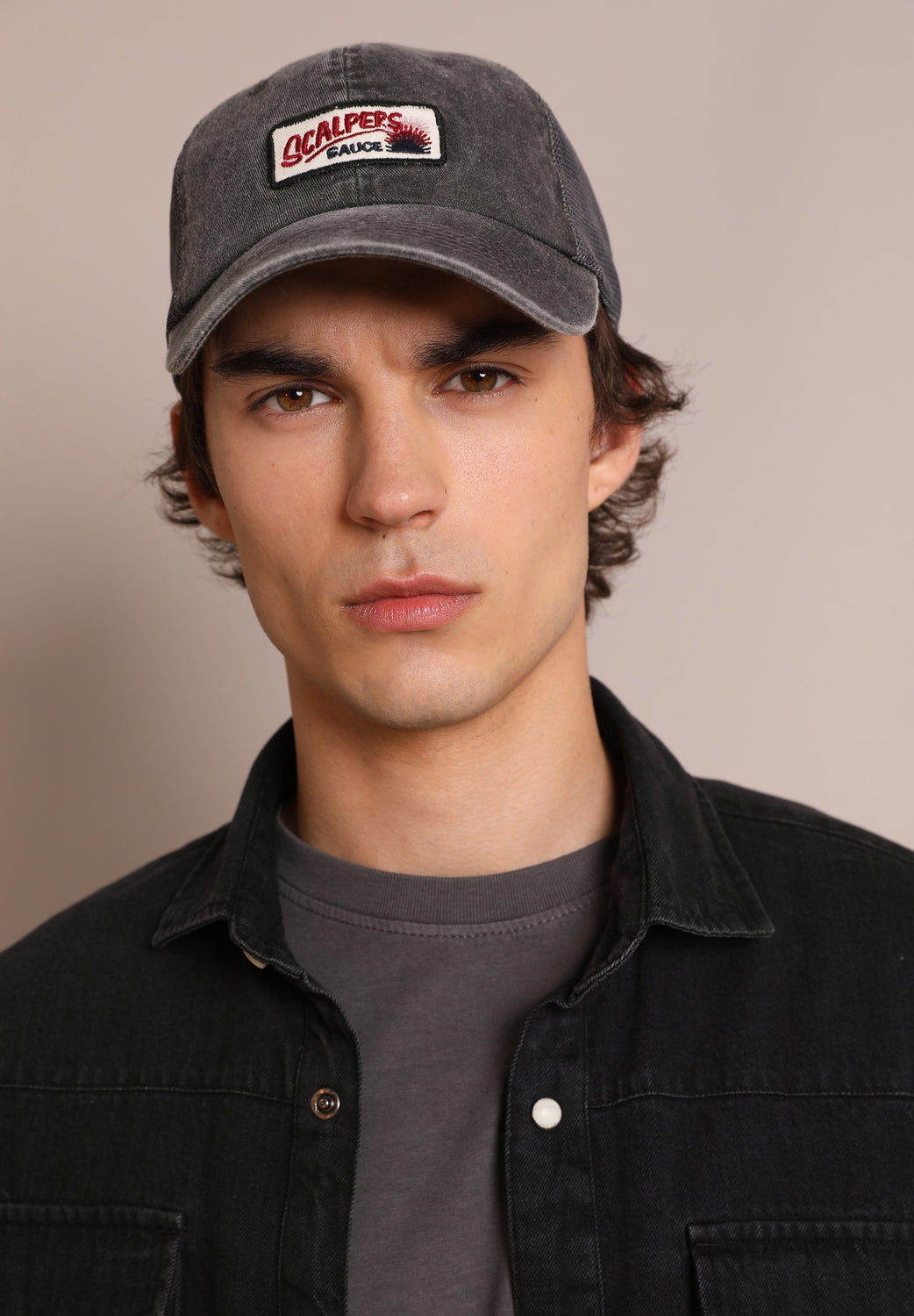 Faded cap with an embroidered patch made from cotton. Adjustable back fastening and back mesh.