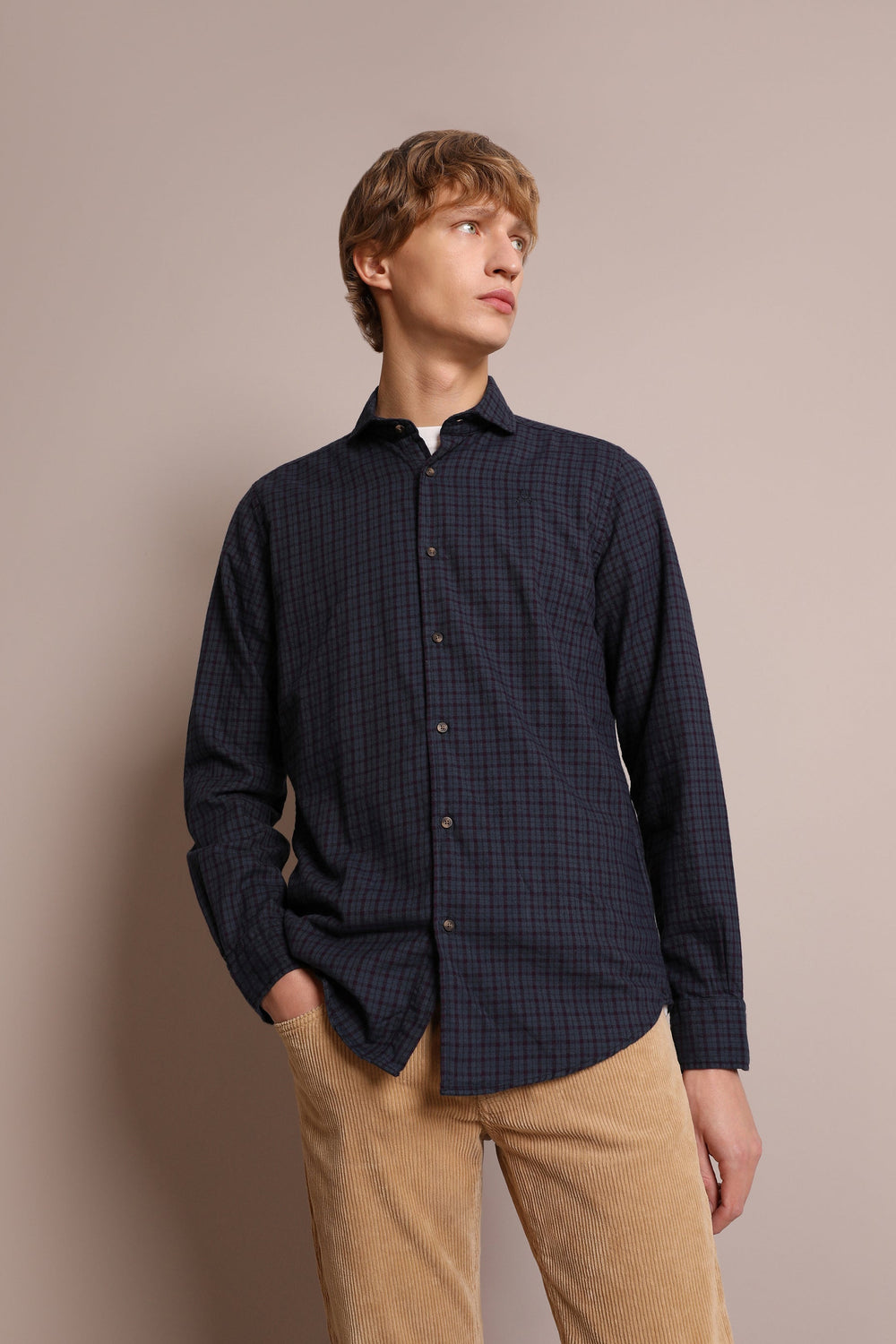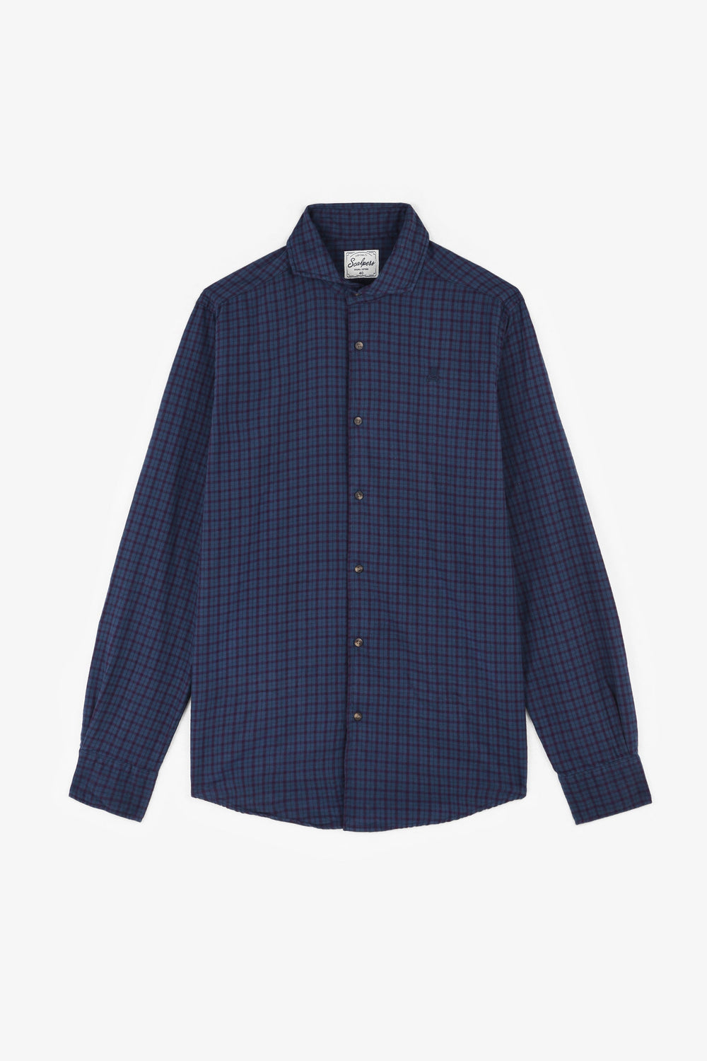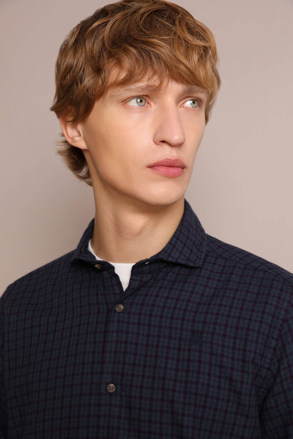 Flannel mini check shirt made from 100% cotton. Regular fit, cutaway collar and button fastening. Long sleeves with buttoned cuffs. Embroidered skull on the chest.