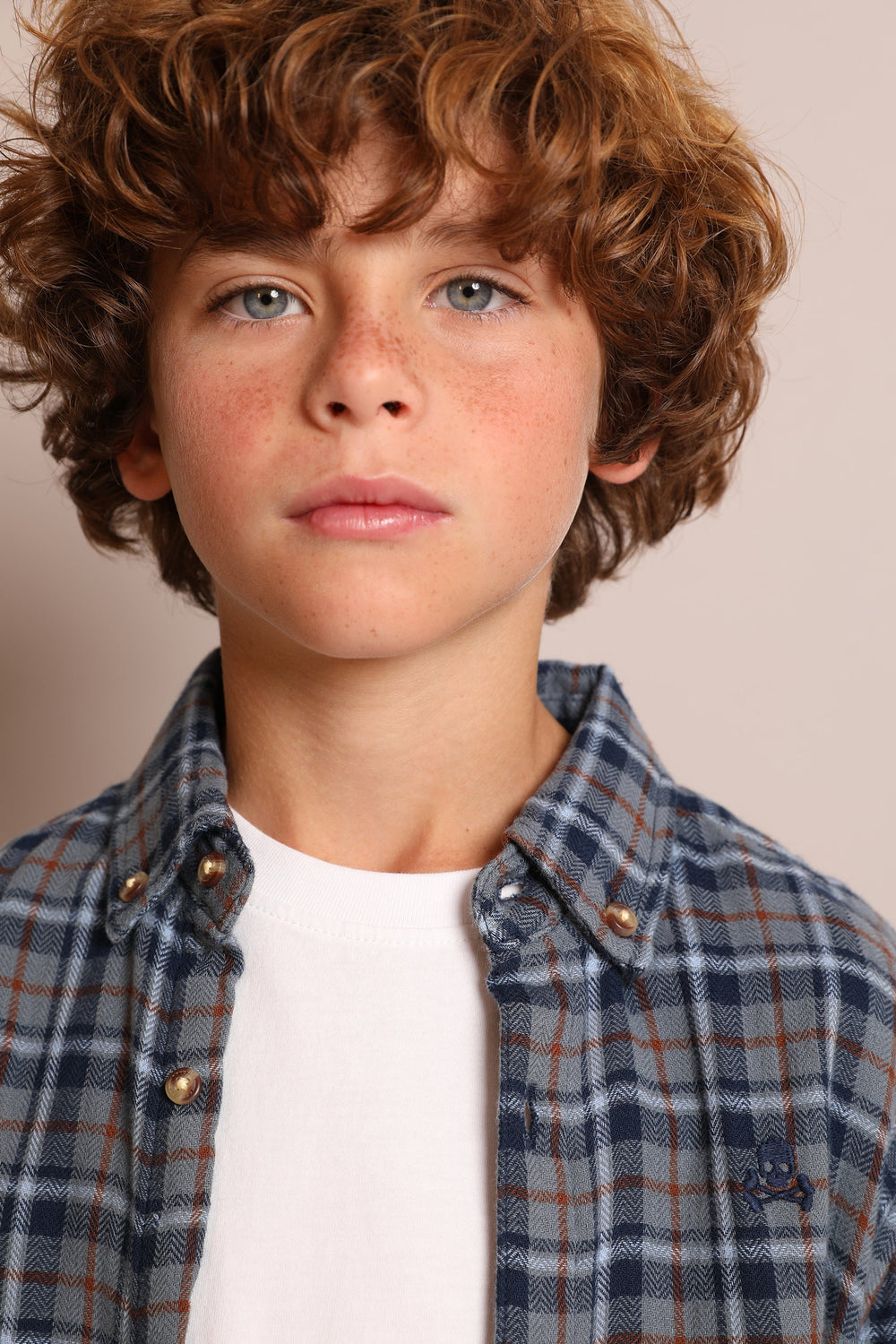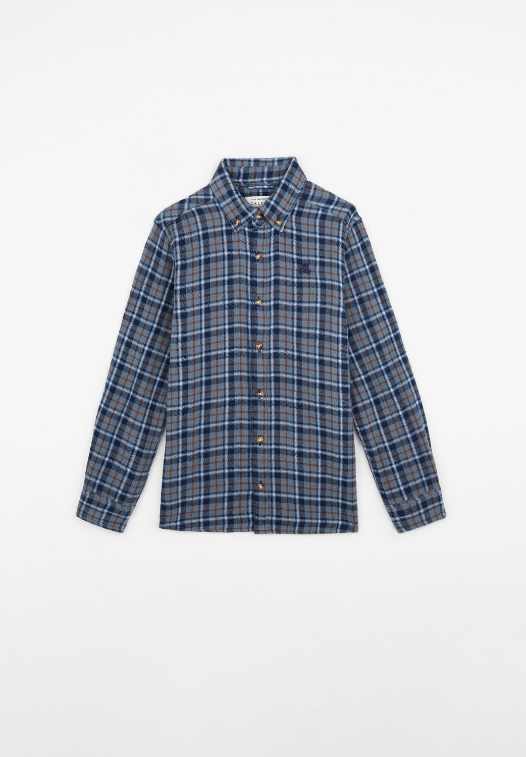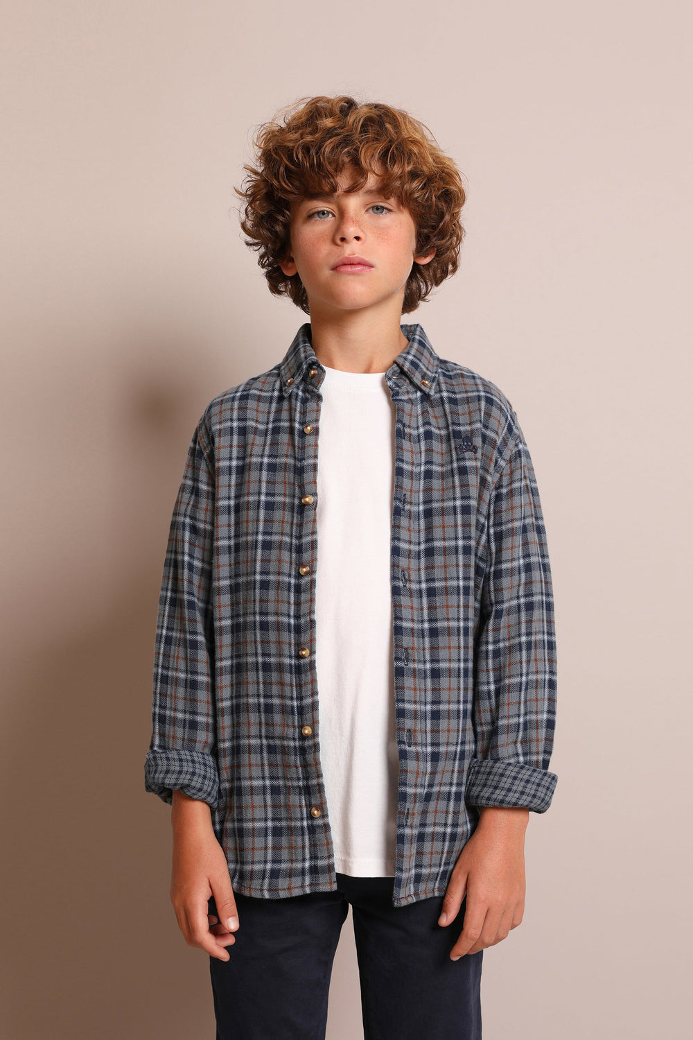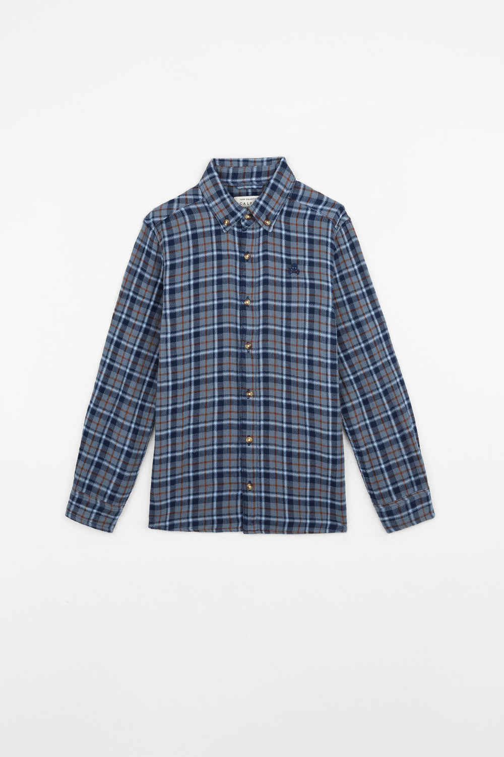 Check shirt. Made of cotton blend fabric, regular fit, contrast button fastening, button-down collar, long sleeves with buttoned cuffs and turn back detail featuring a different check pattern and matching embroidered skull detail on the chest