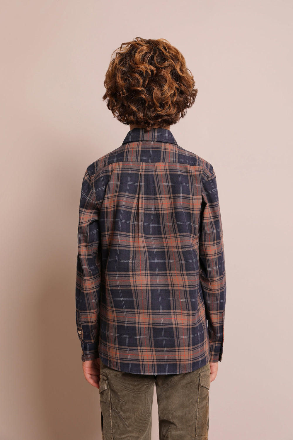 Polo shirt with window pane checks. Made of 100% BCI cotton fabric, regular fit, classic collar and long sleeves with buttoned cuffs