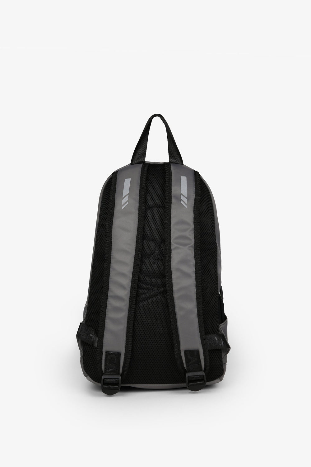 Backpack made of technical fabric with front zip. Zip closure, back and top straps and front pocket. Reflective details. Width: 28 cm / Height: 42 cm / Depth: 14 cm / Capacity: 40L