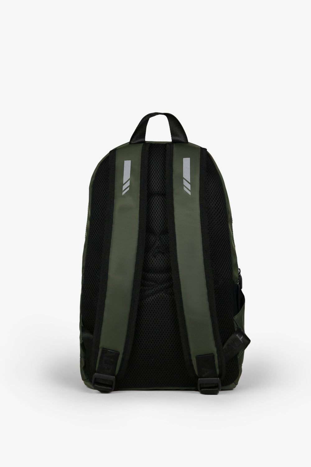 Backpack made of technical fabric with front zip. Zip closure, back and top straps and front pocket. Reflective details. Width: 28 cm / Height: 42 cm / Depth: 14 cm / Capacity: 40L