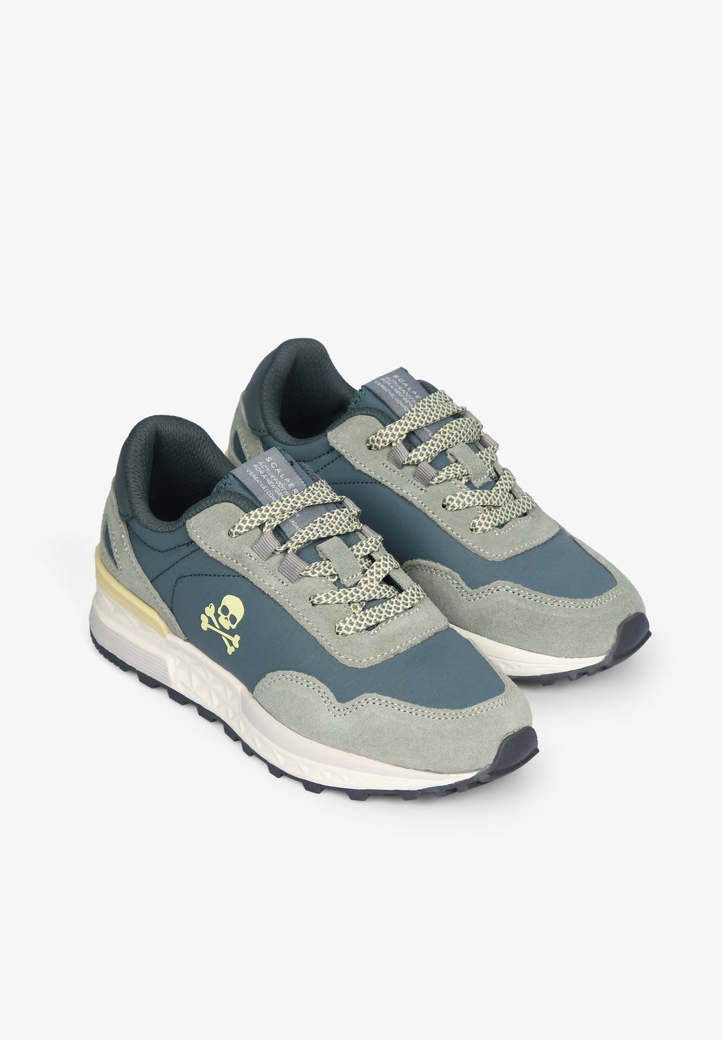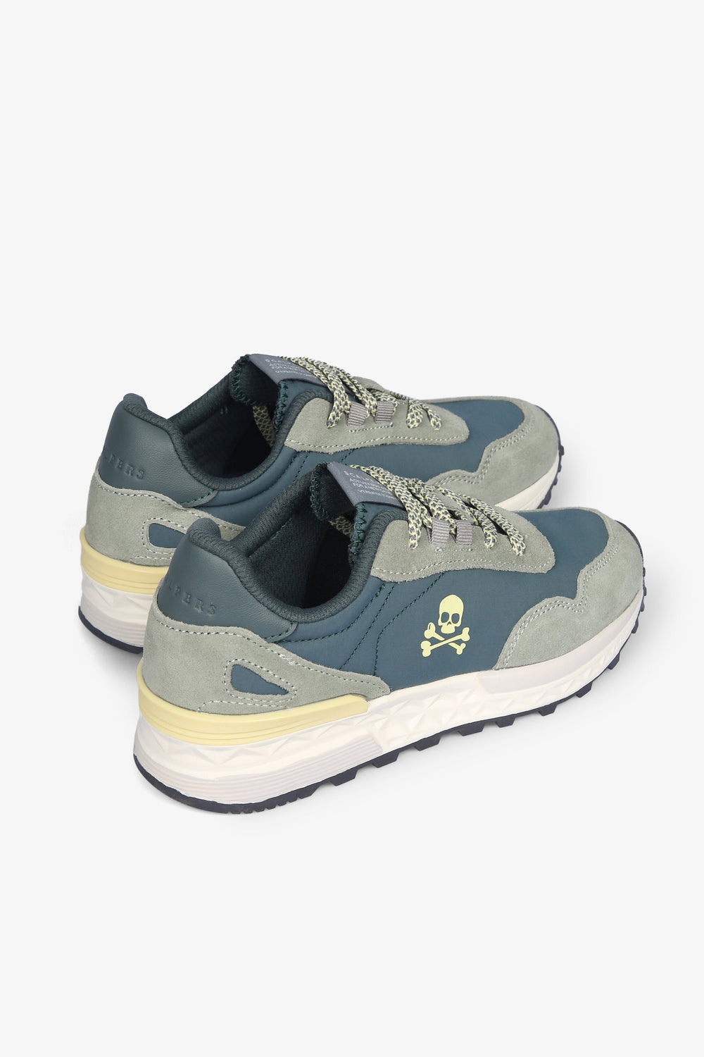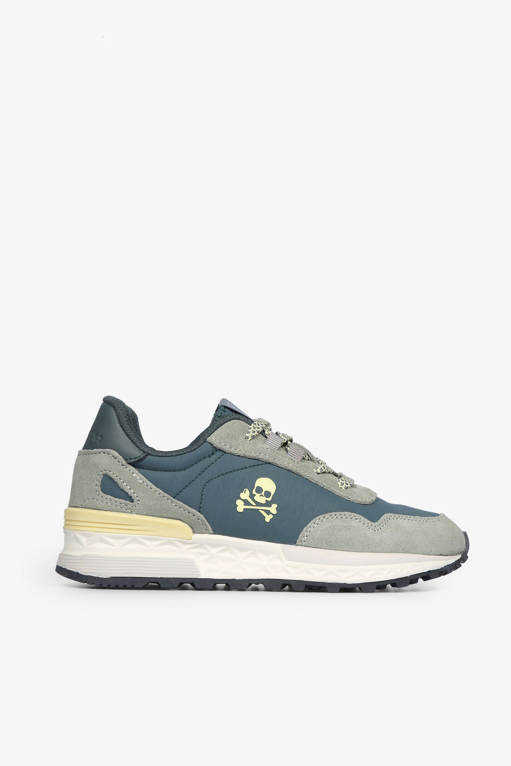 Sneakers with skulls on the sides made from leather and technical fabric. Mottled lace-up fastening and serrated rubber soles. Contrast stabilisers.