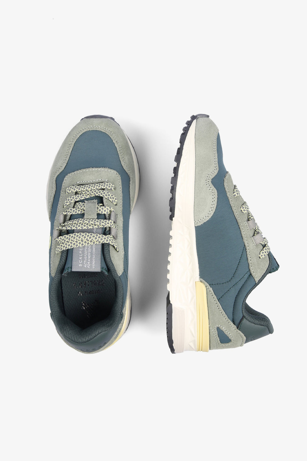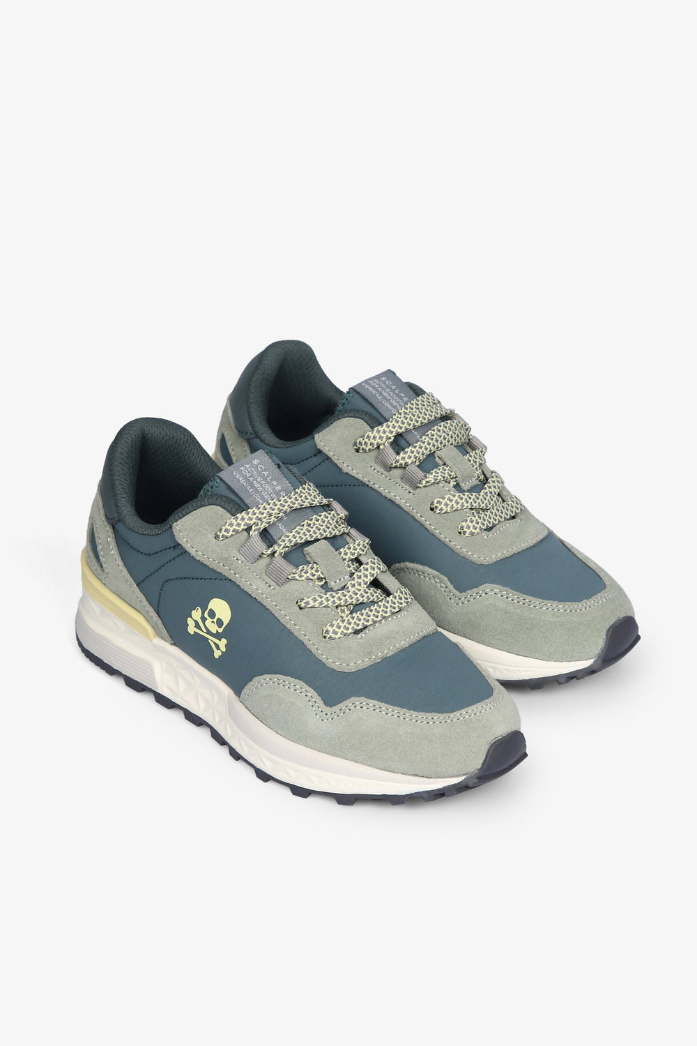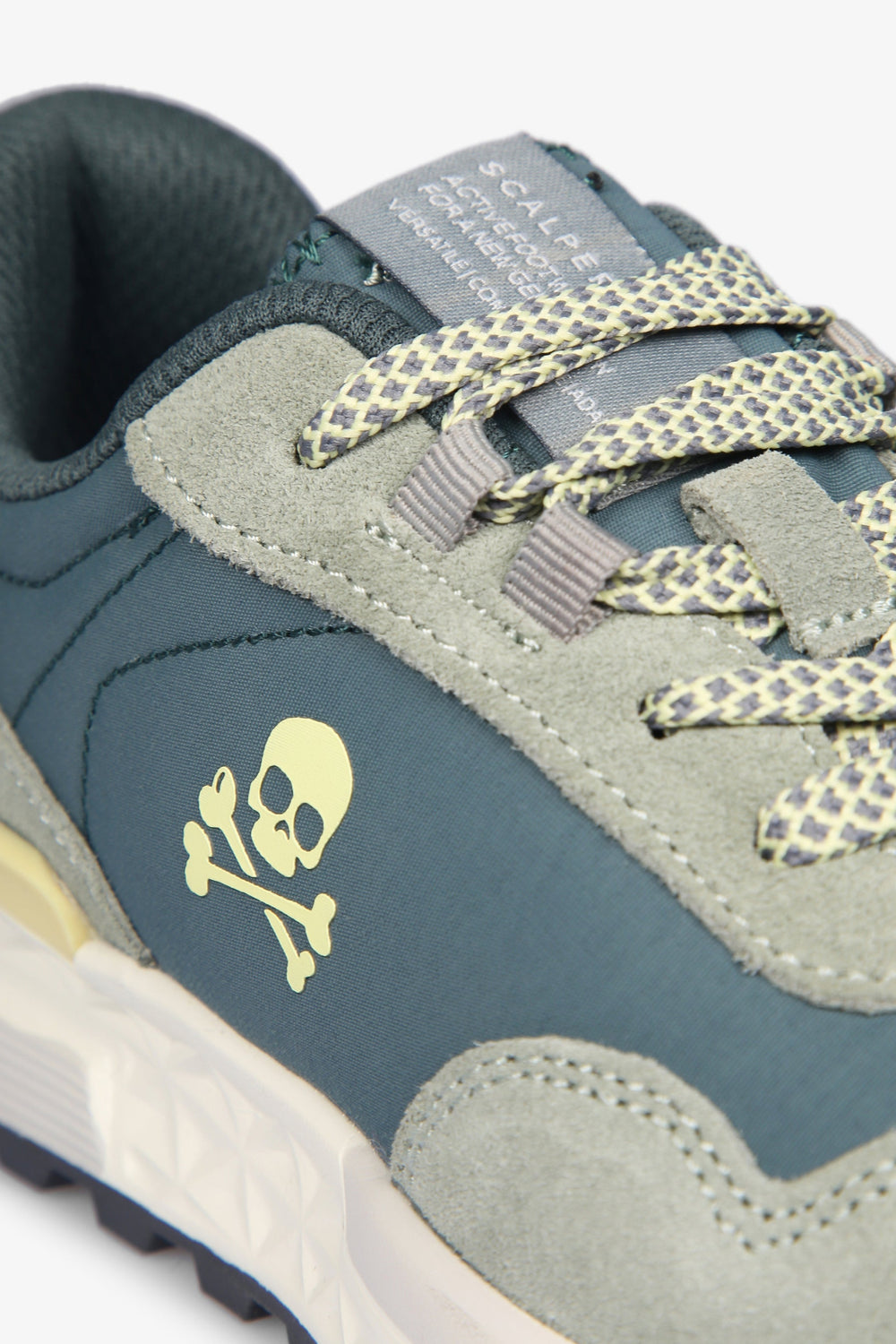 Sneakers with skulls on the sides made from leather and technical fabric. Mottled lace-up fastening and serrated rubber soles. Contrast stabilisers.