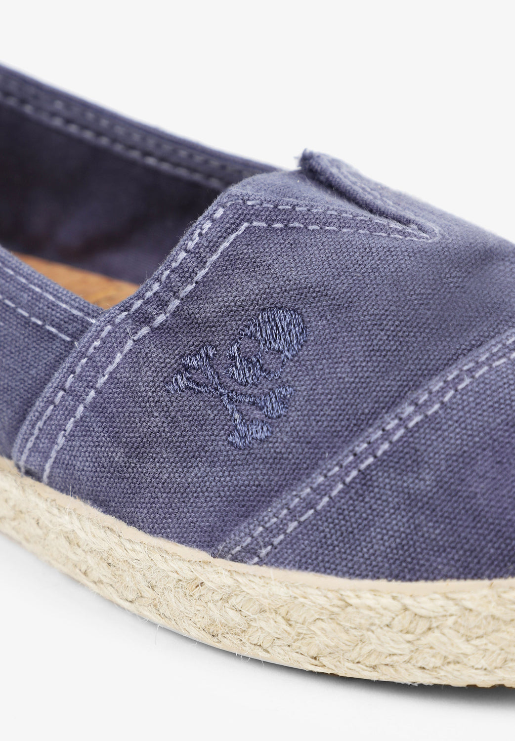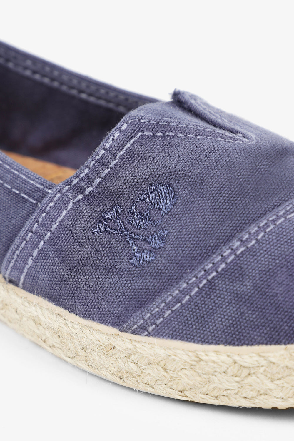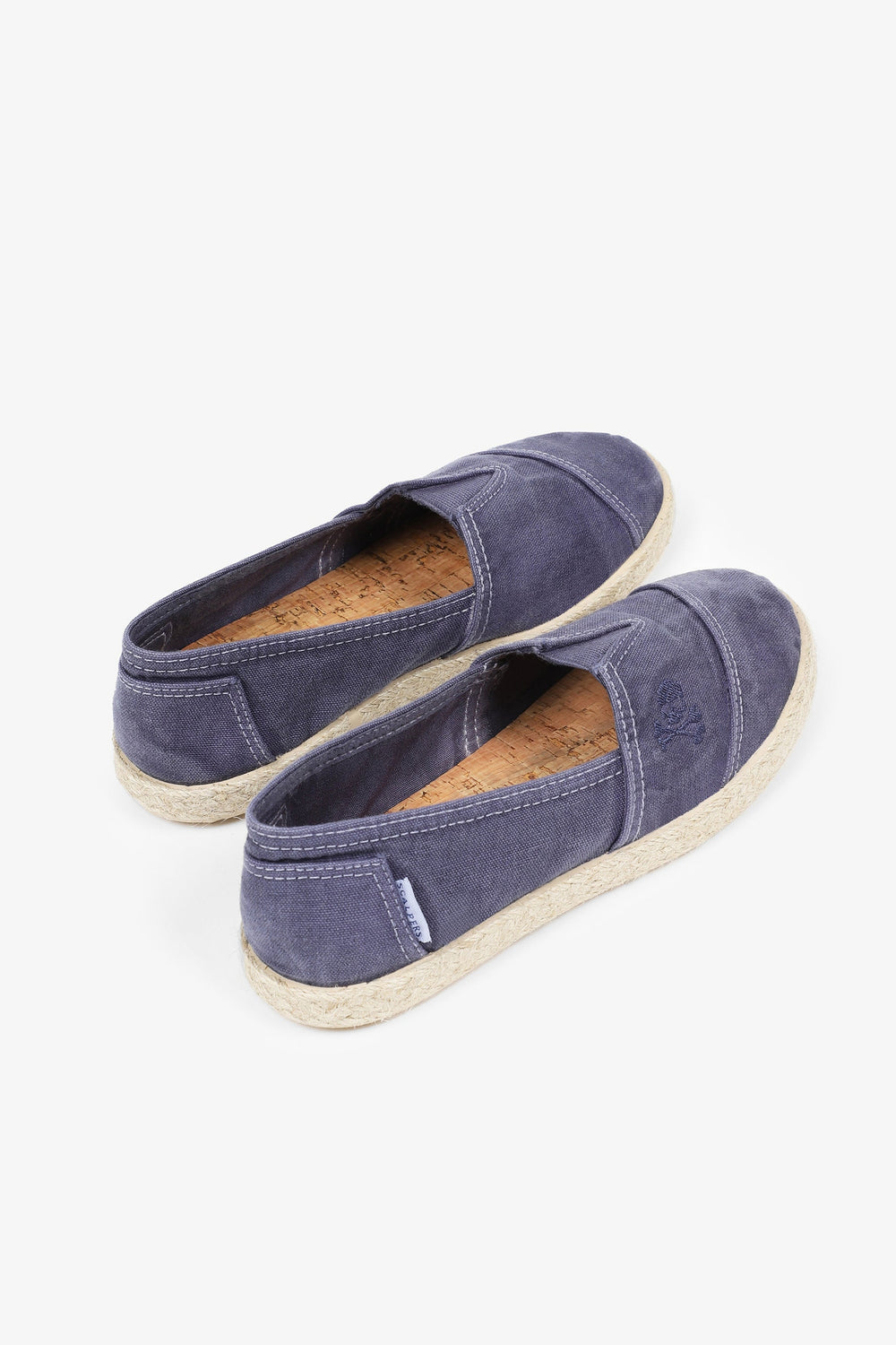 Canvas espadrilles made of 100% recycled cotton. Esparto grass and rubber sole with embroidered skull detail and label.