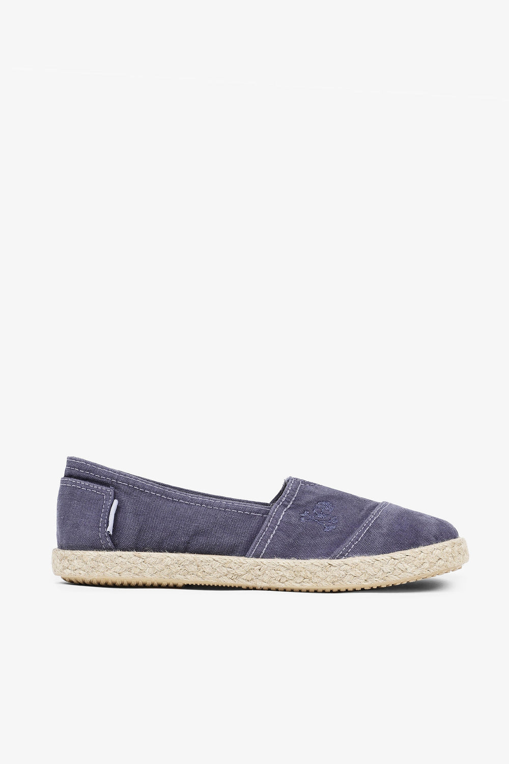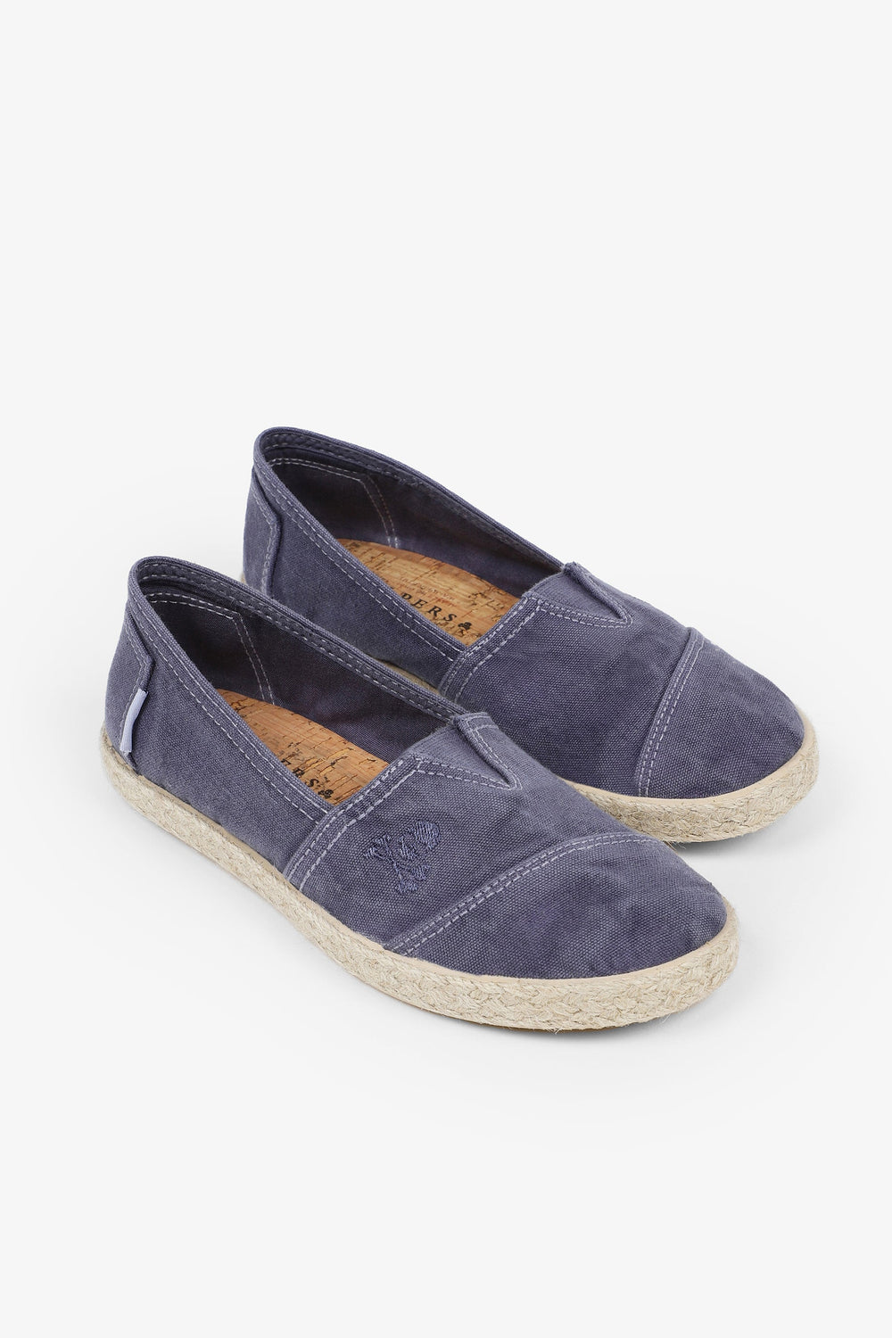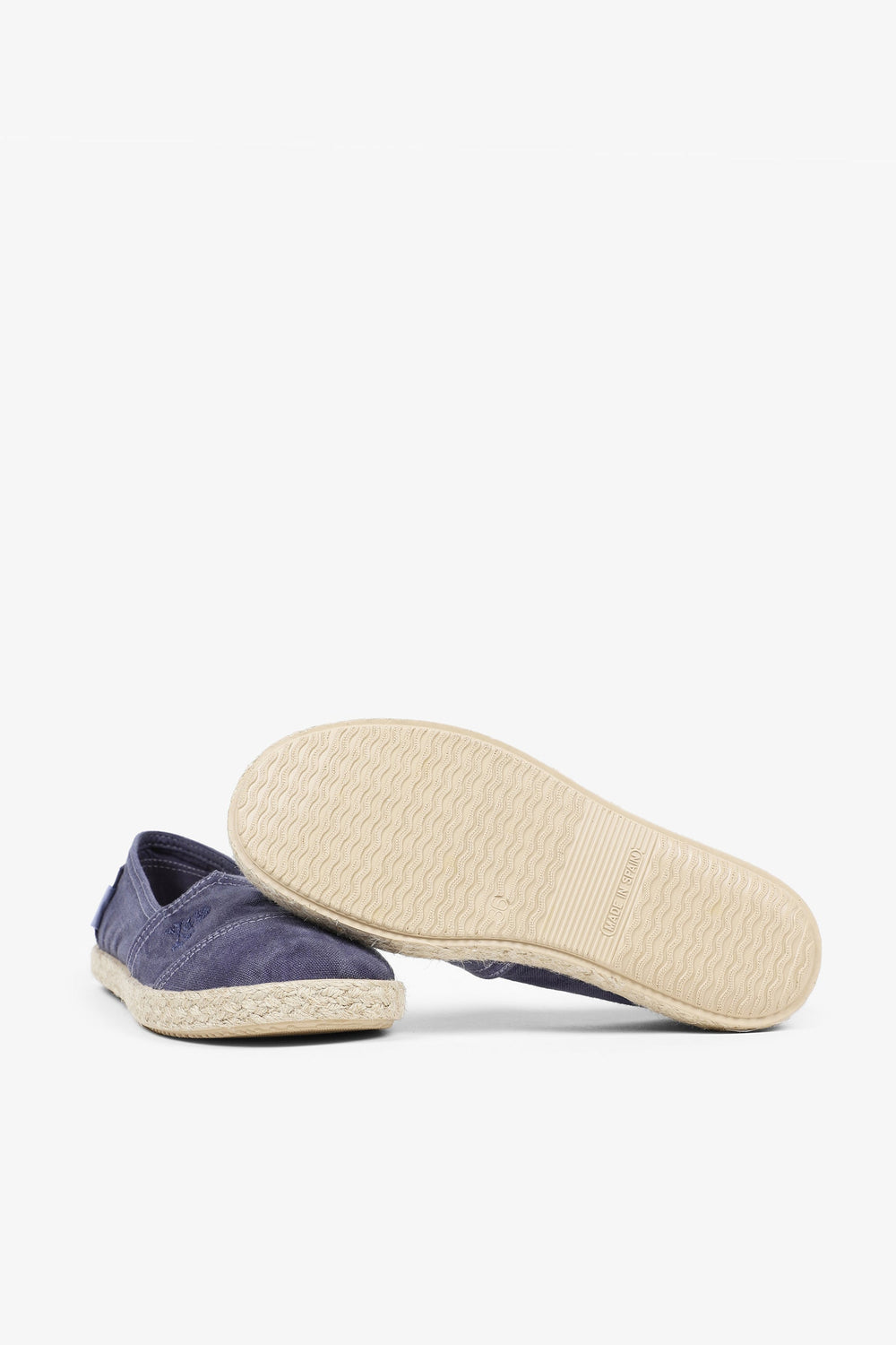 Canvas espadrilles made of 100% recycled cotton. Esparto grass and rubber sole with embroidered skull detail and label.