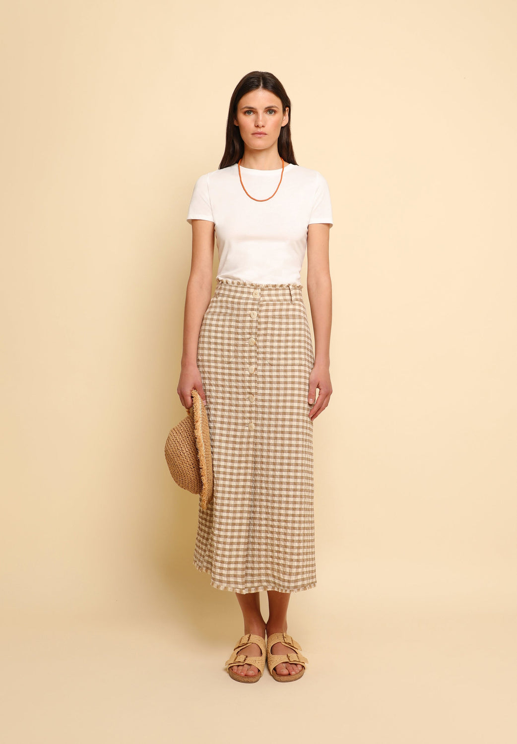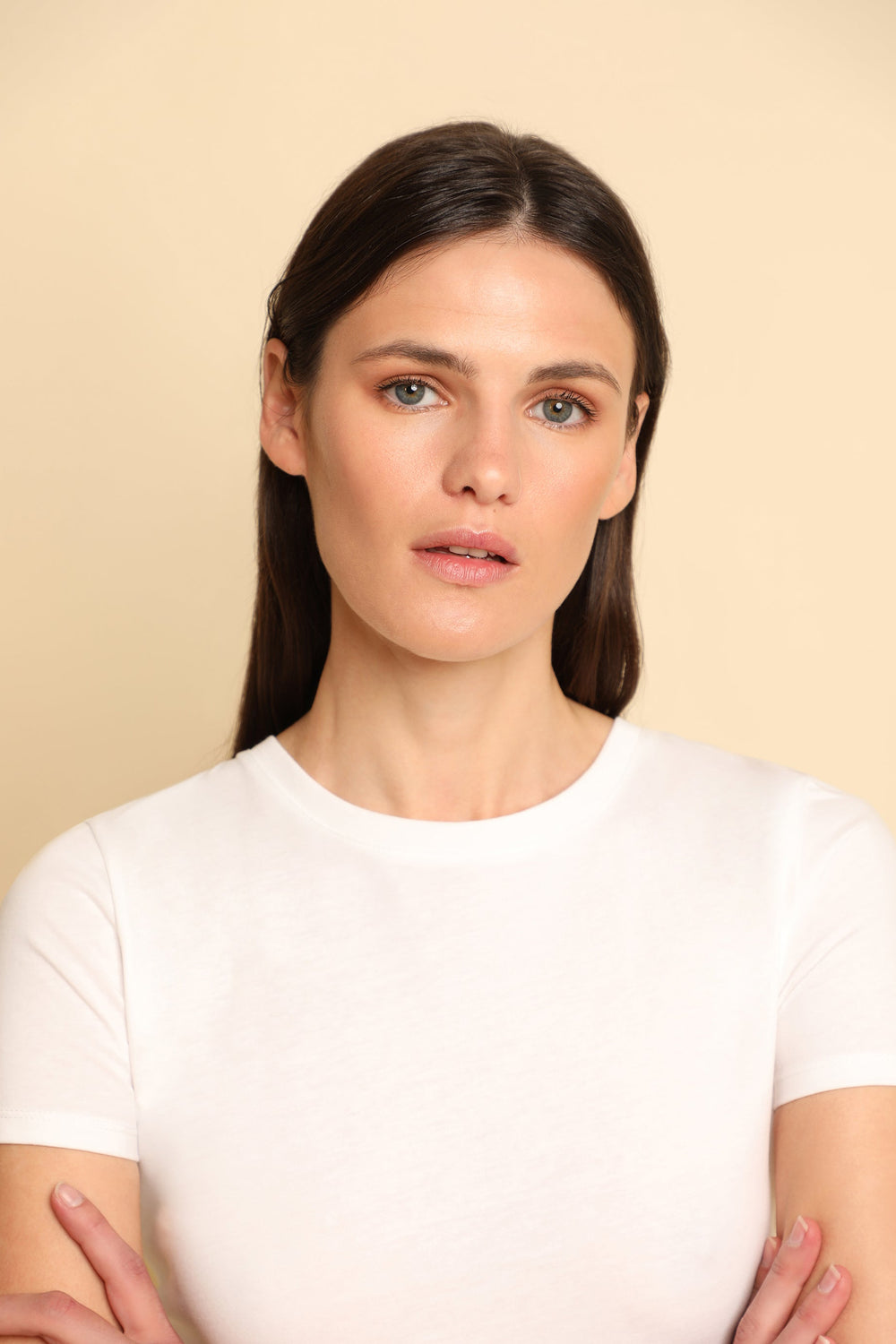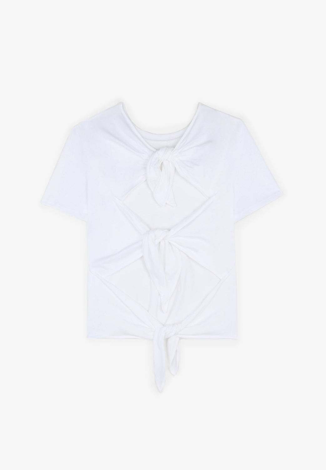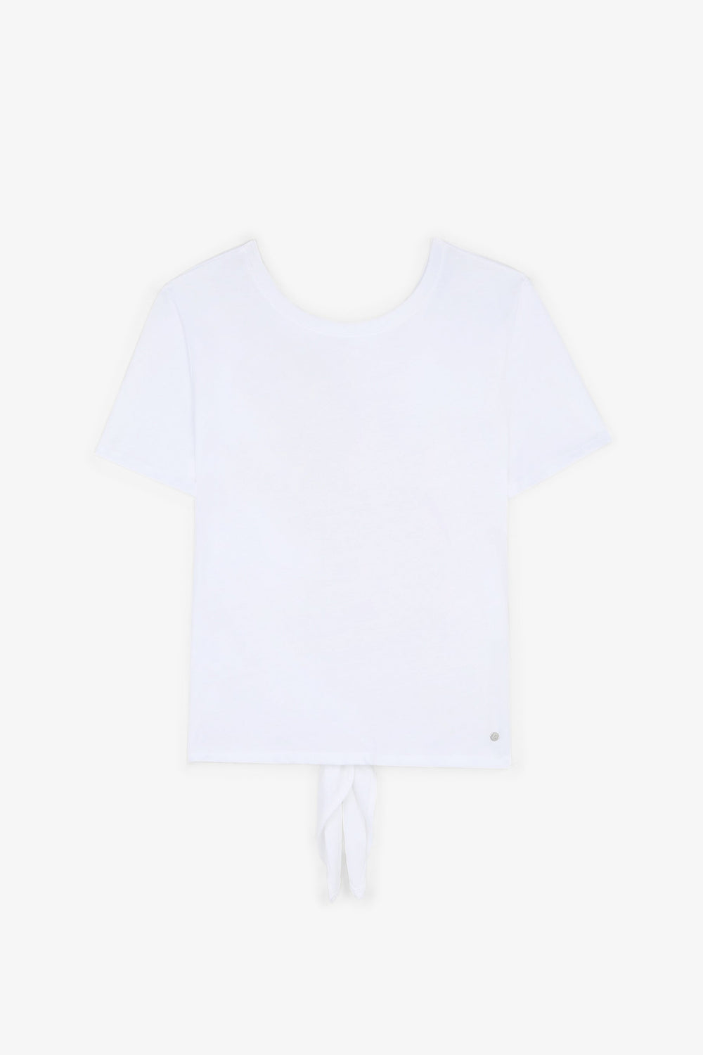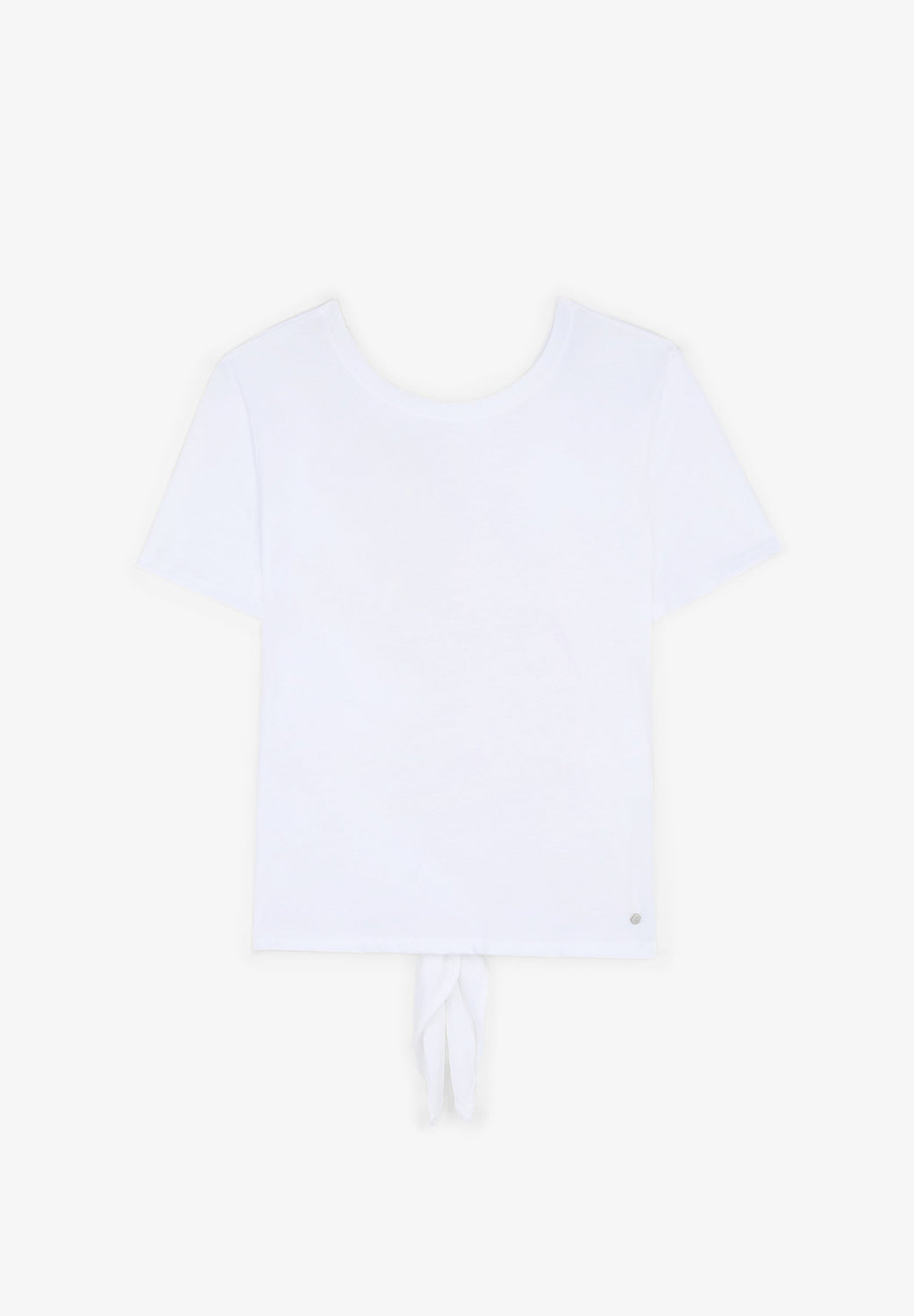 T-shirt with back ties made of 100% BCI cotton. Regular fit, round neck and short sleeves.