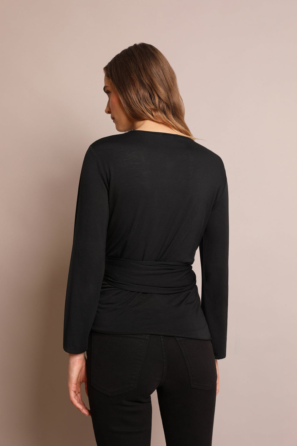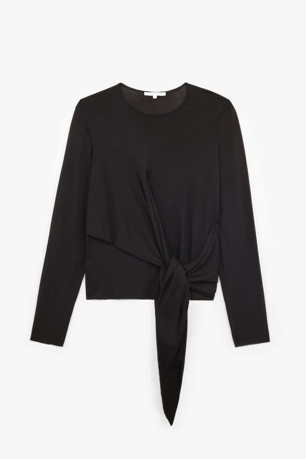 T-shirt with a multi-position knotted bow made from 100% BCI cotton. Slim fit, round neck and long sleeves.
