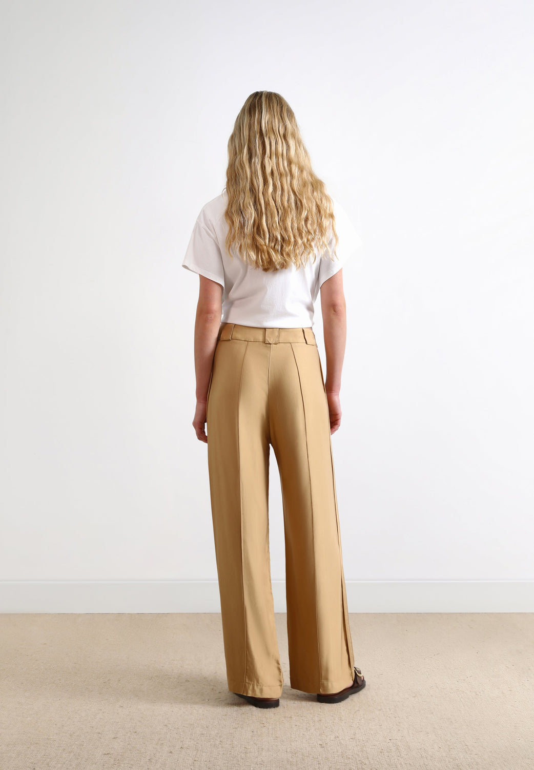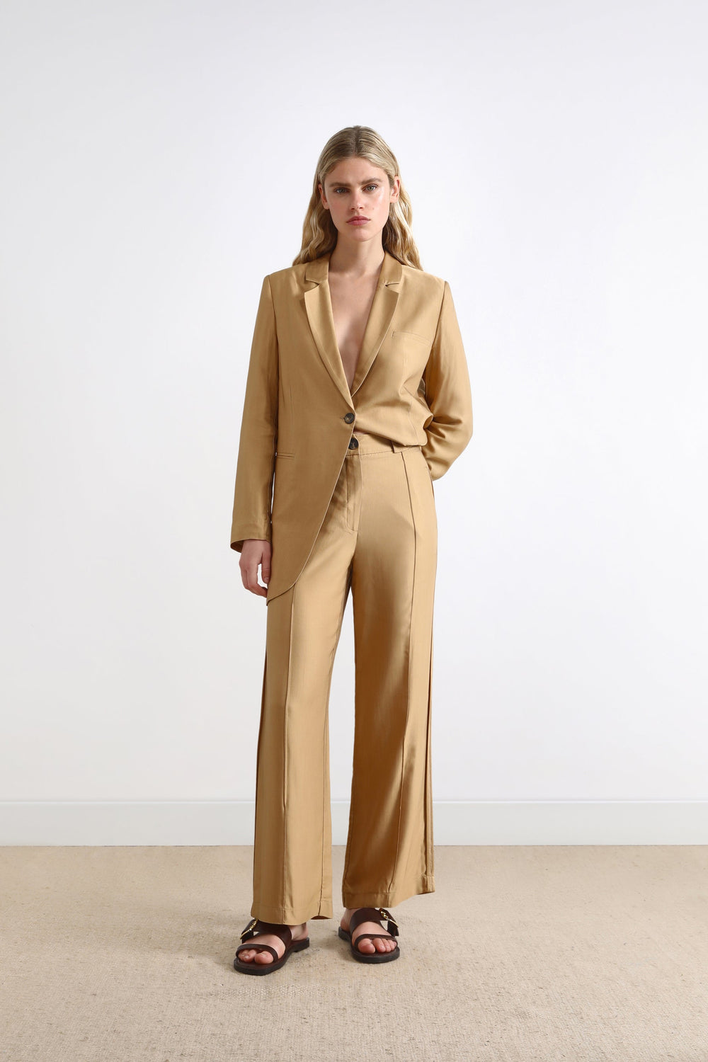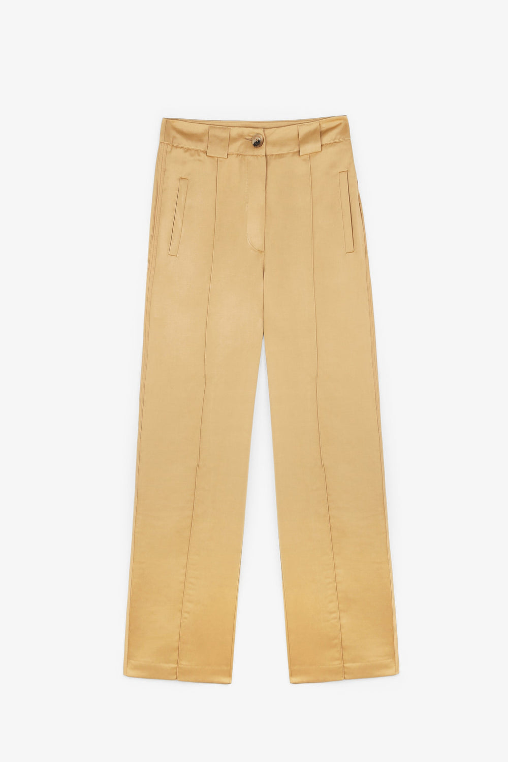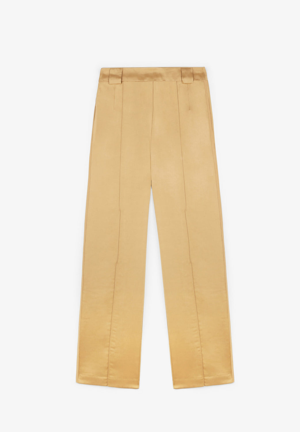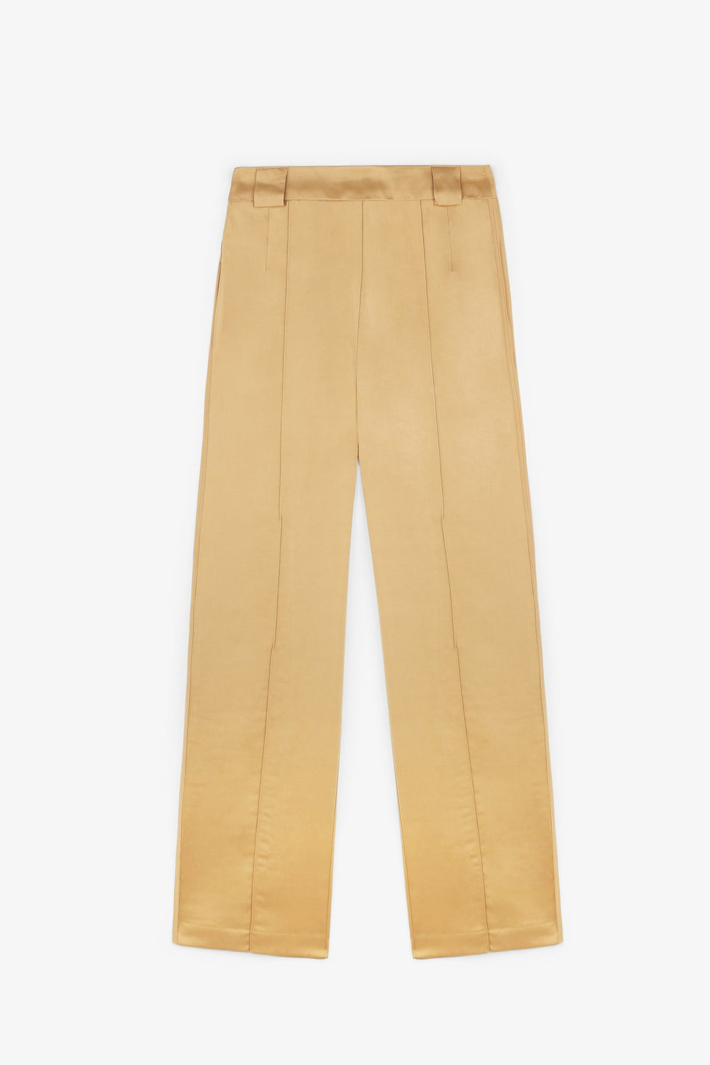 Satin trousers.