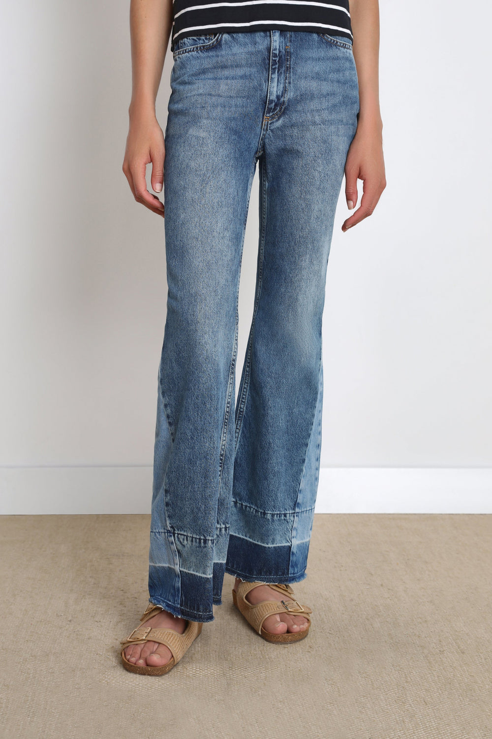 - Flared fit with high waist