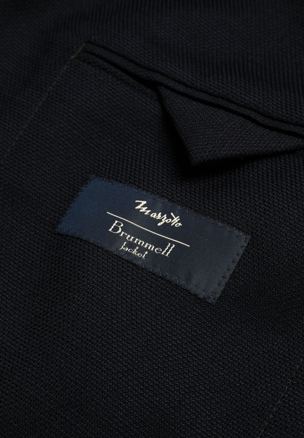 Navy blue plain blazer. Crafted from Marzotto wool fabric. Regular Fit. Notch lapel collar. Button fastening. Unlined construction. Patch pockets. Sleeves with lightly structured shoulder pads and functional buttonholes.