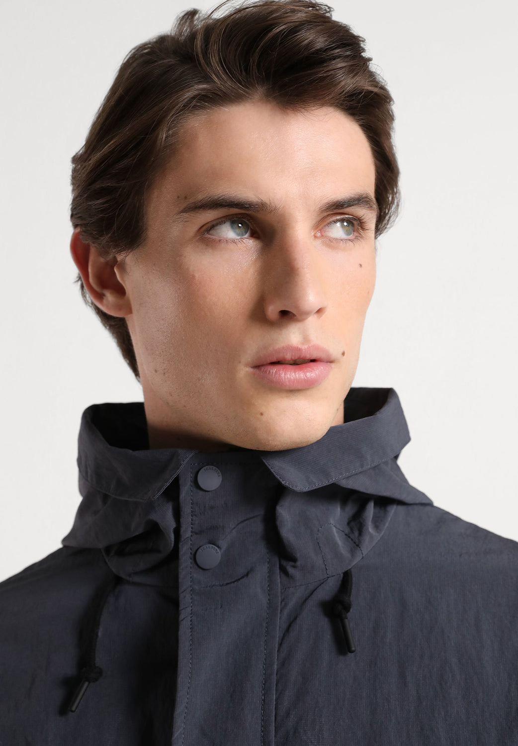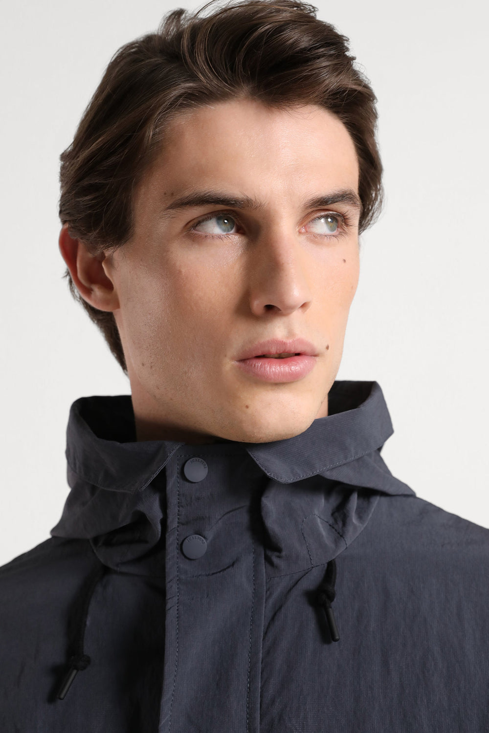 - High collar with adjustable drawstring hood