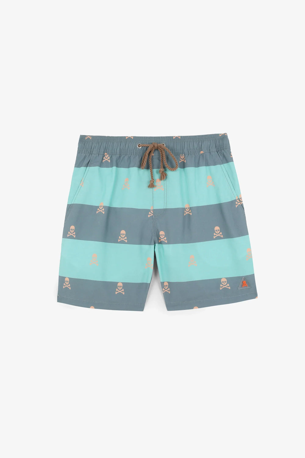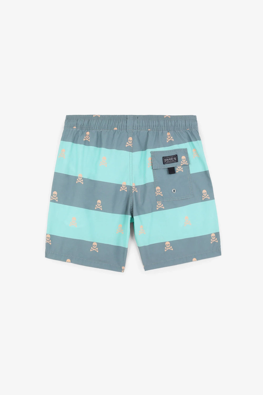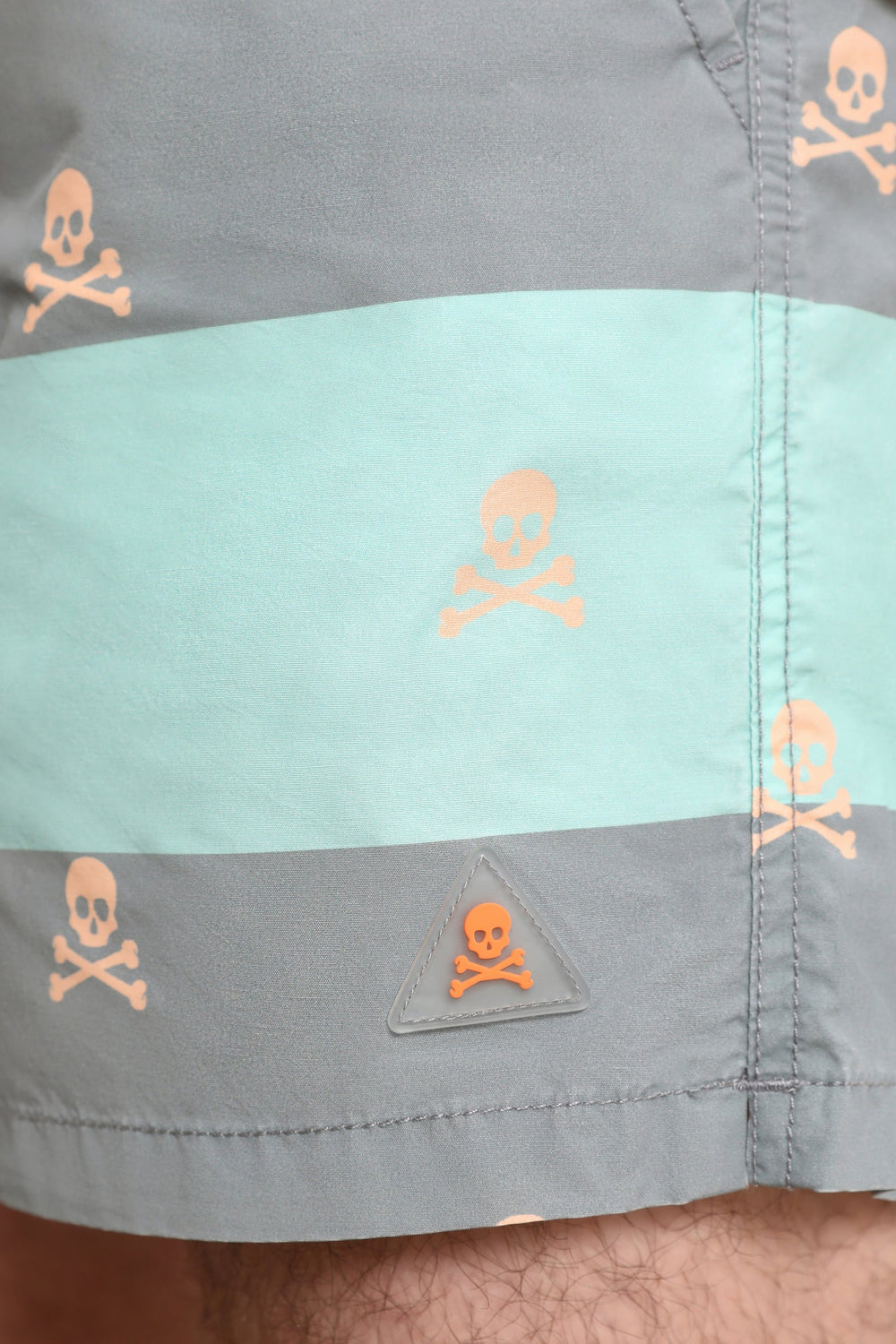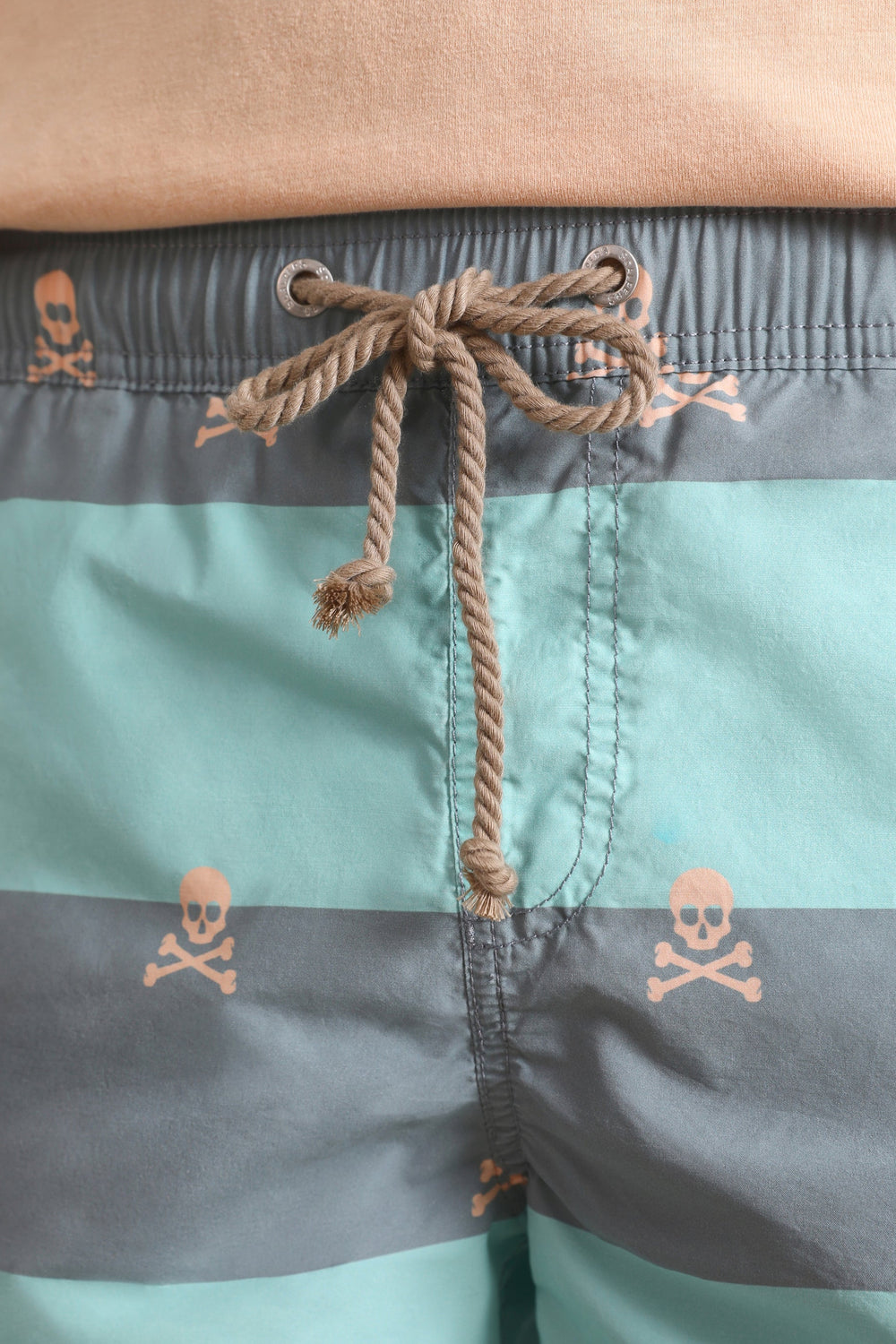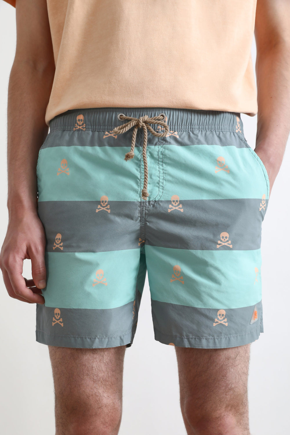 SWIMMING TRUNKS WITH STRIPES AND SKULLS