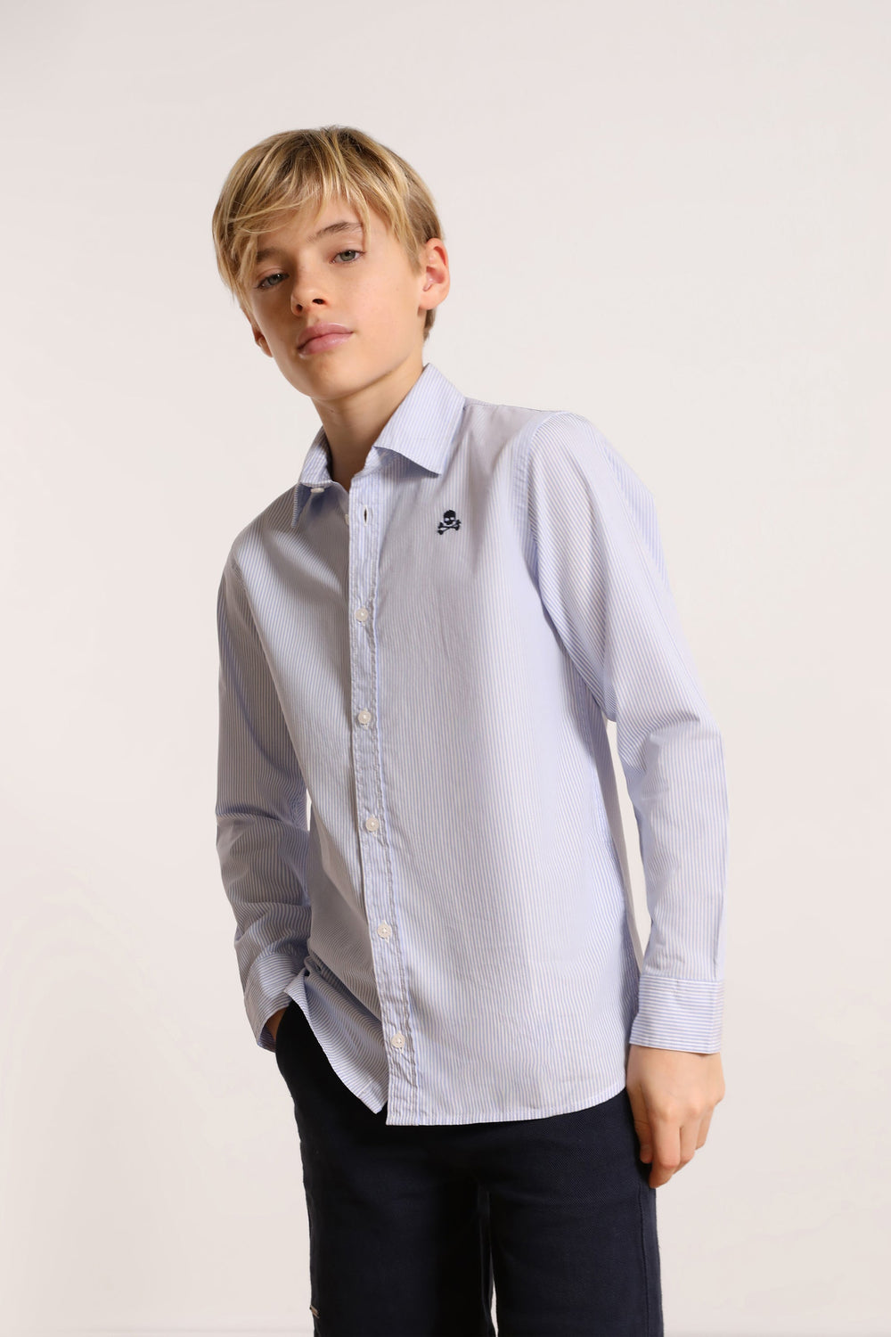 Basic shirt with contrast embroidered skull detail