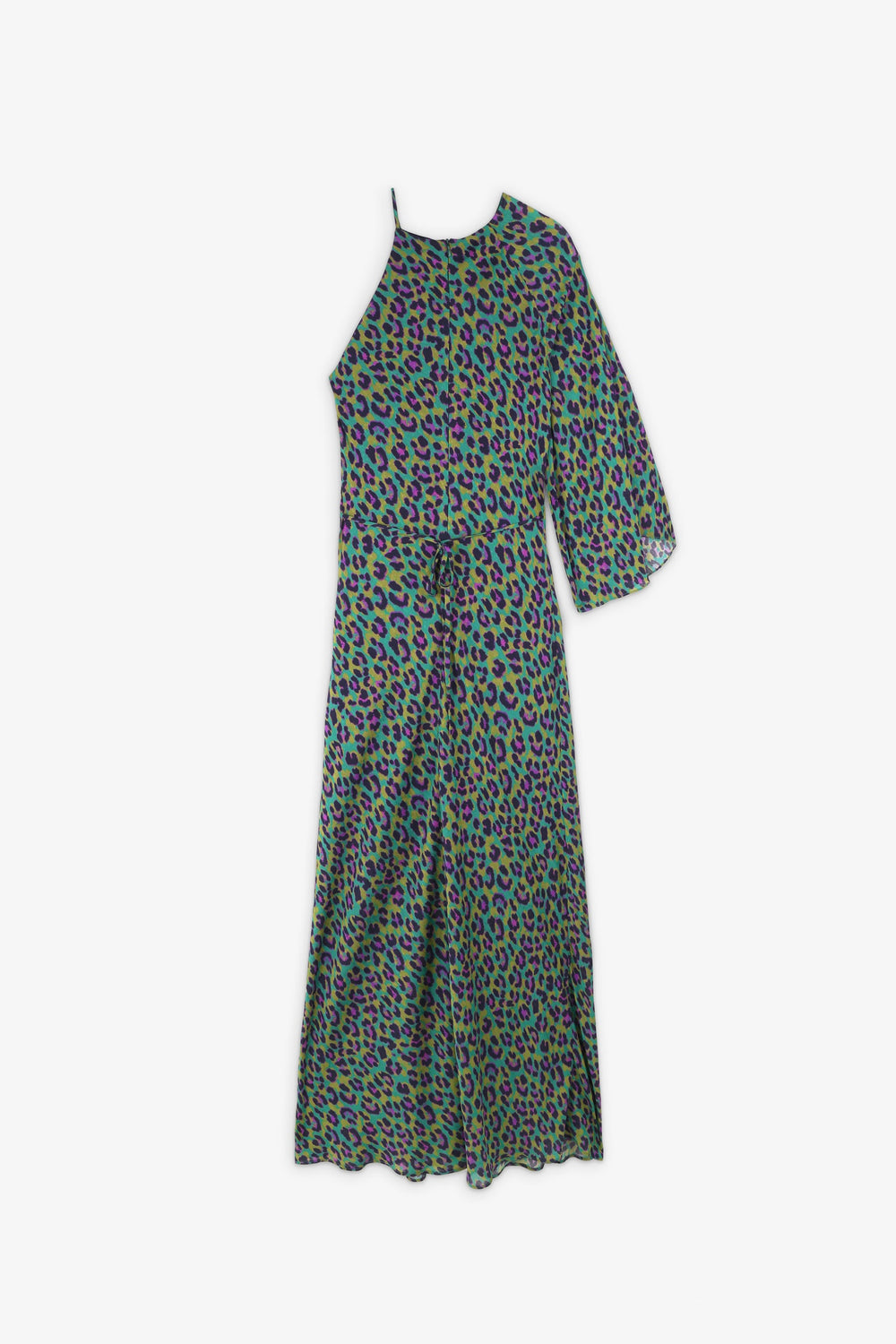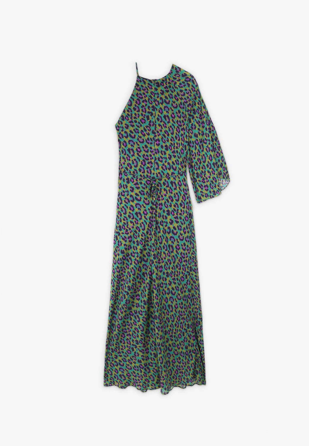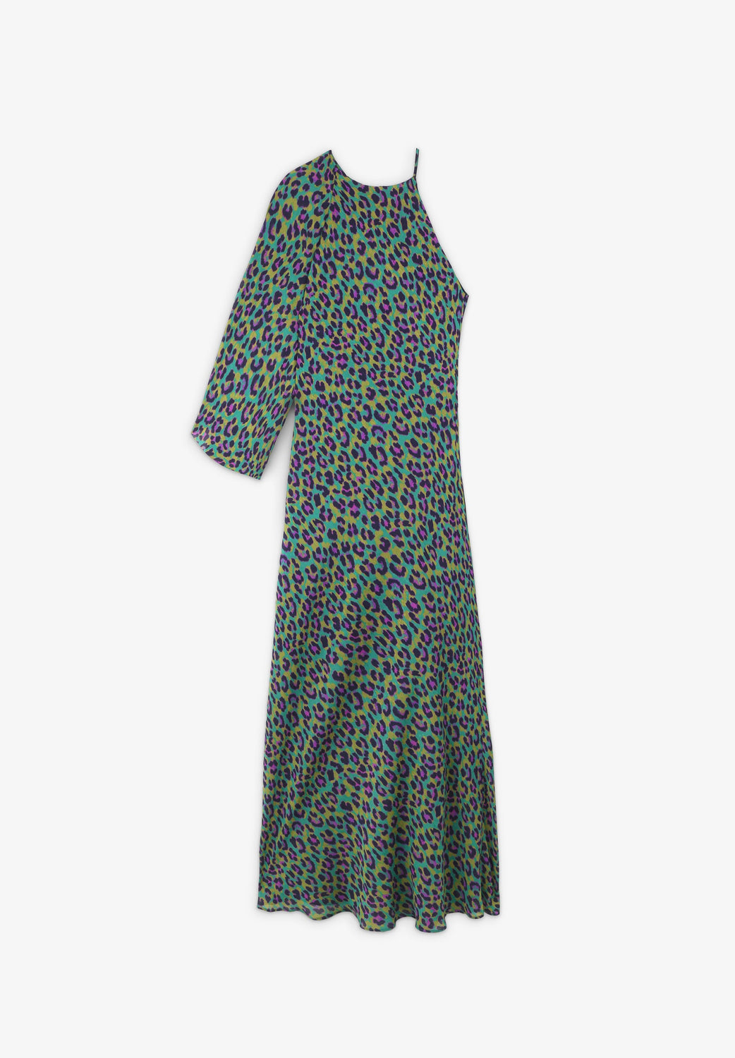 LONG ANIMAL PRINT ASYMMETRIC DRESS