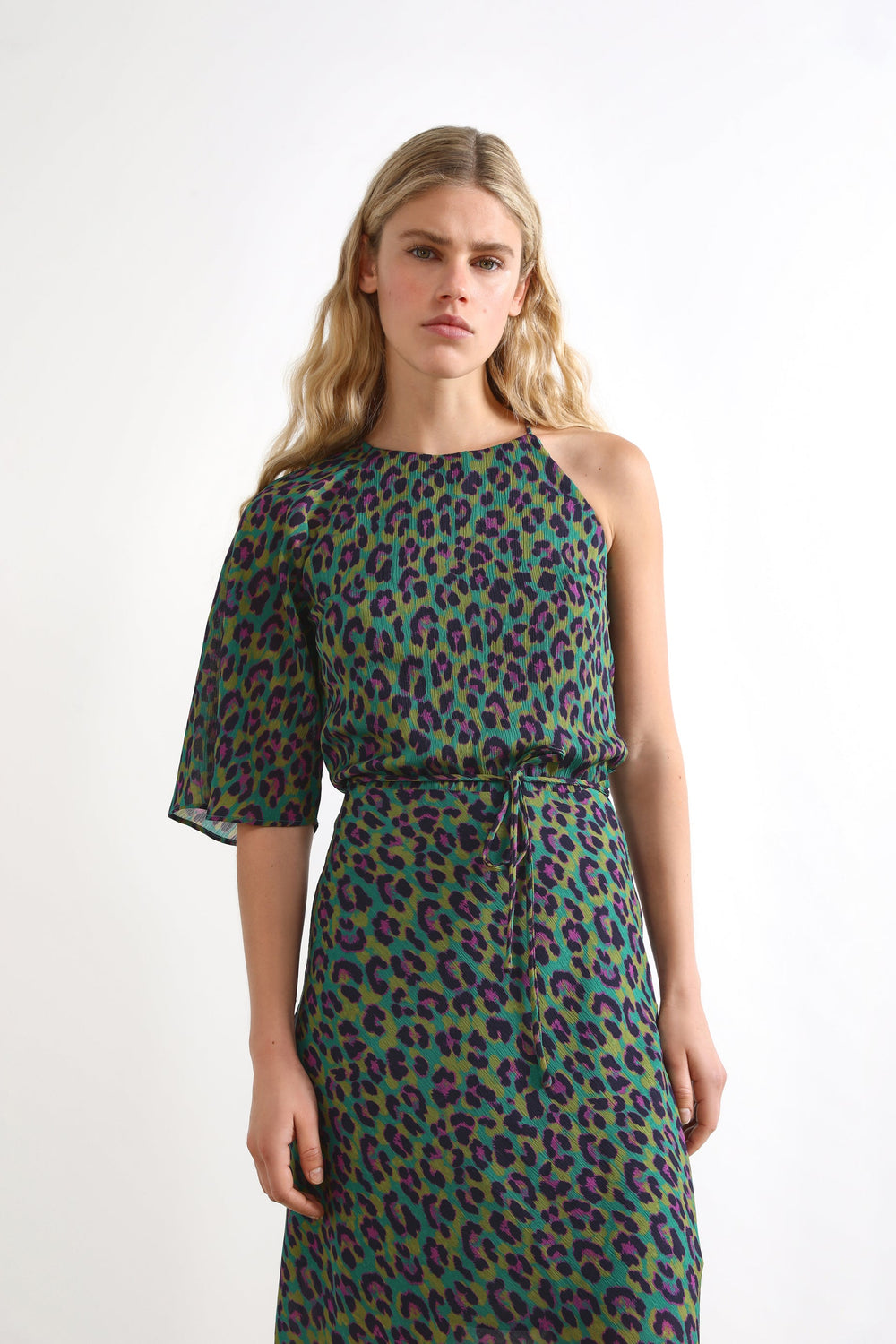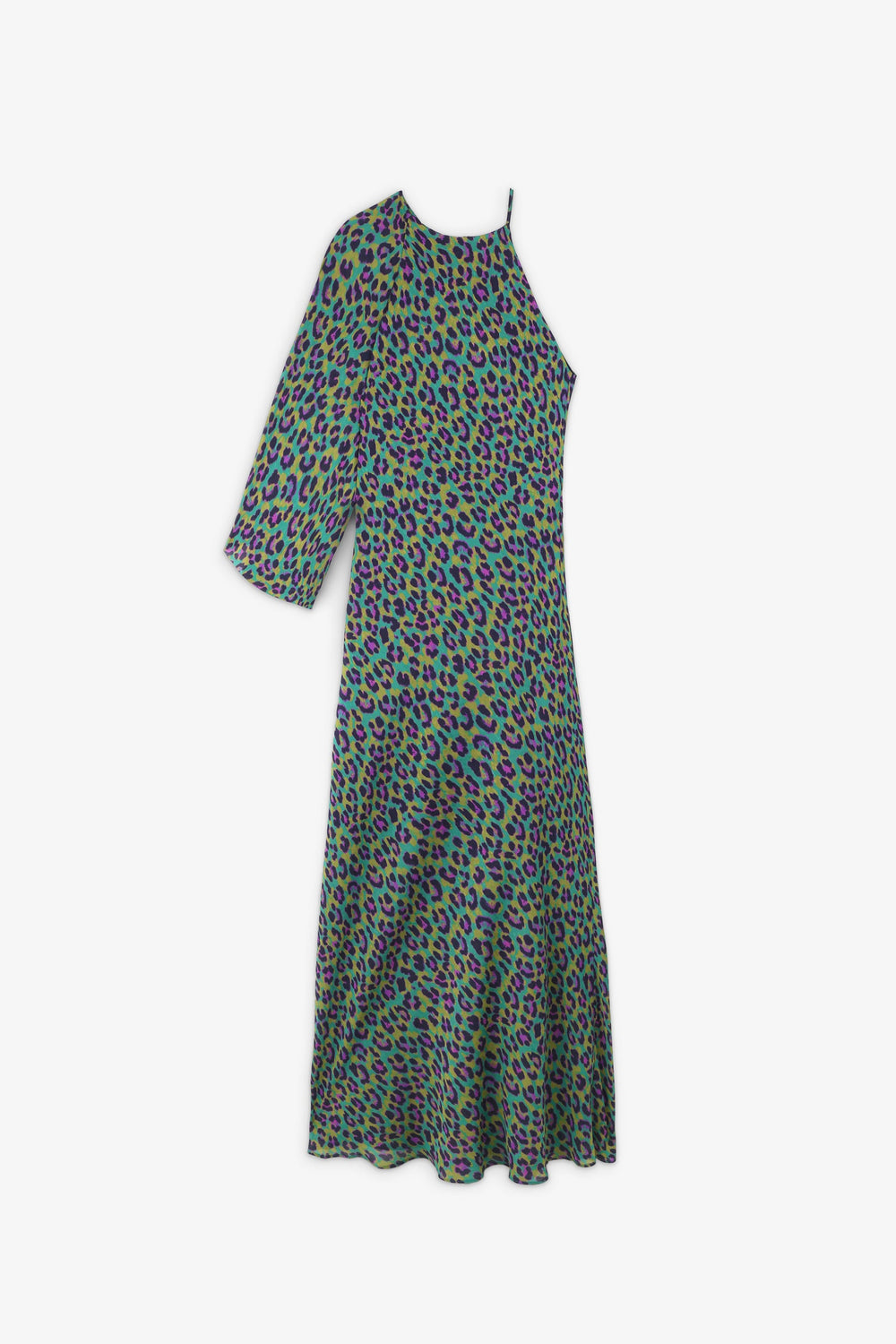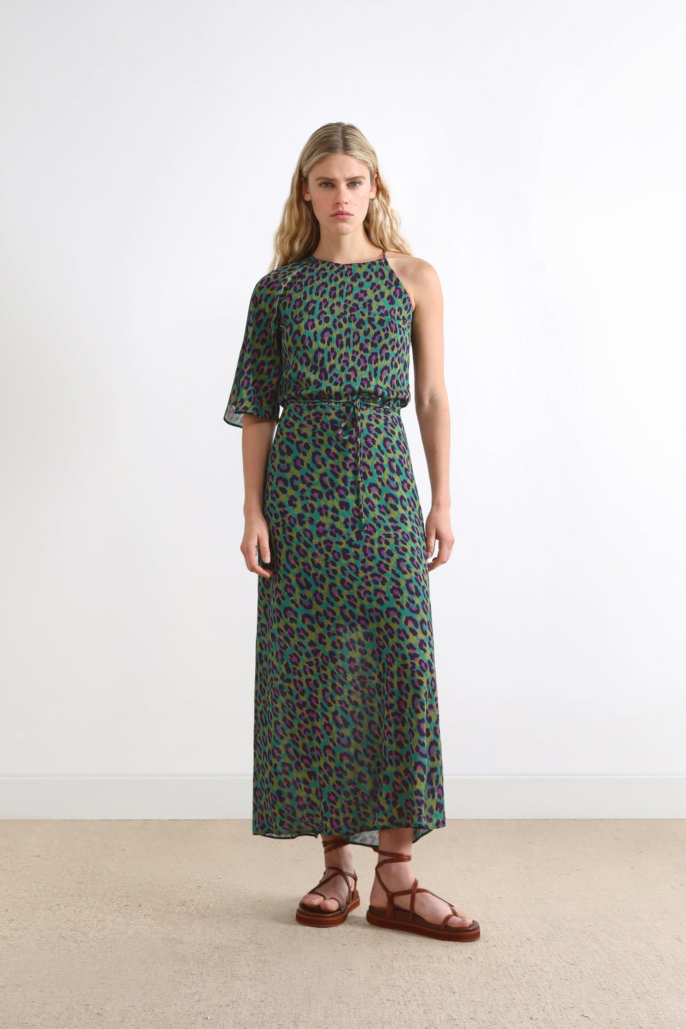 LONG ANIMAL PRINT ASYMMETRIC DRESS
