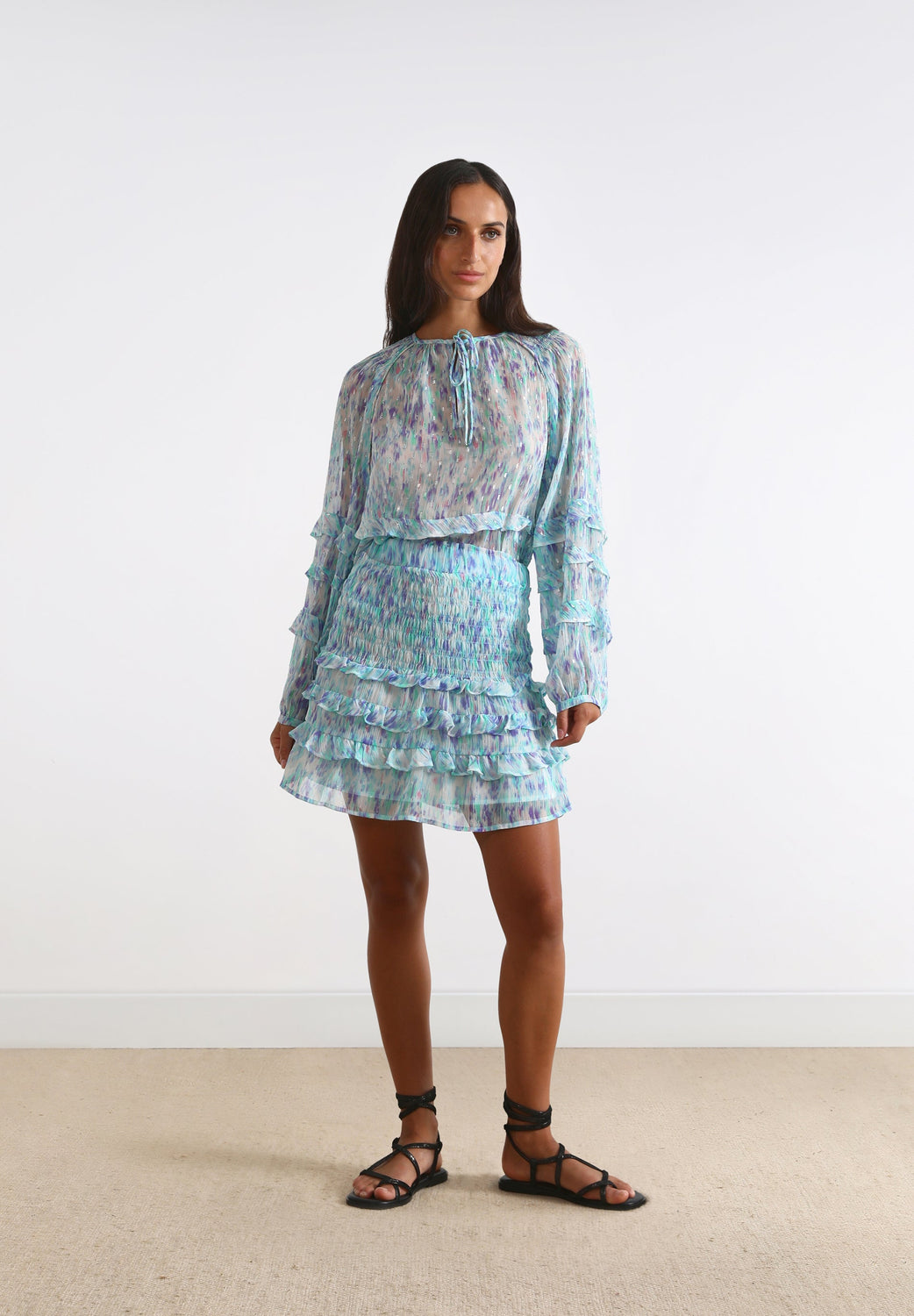 - Ruffle detail on the hem
