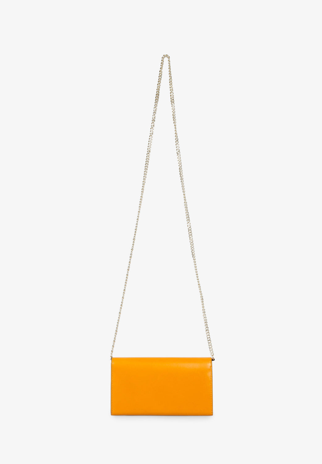 - Can be worn three ways: clutch, long crossbody and short handle.