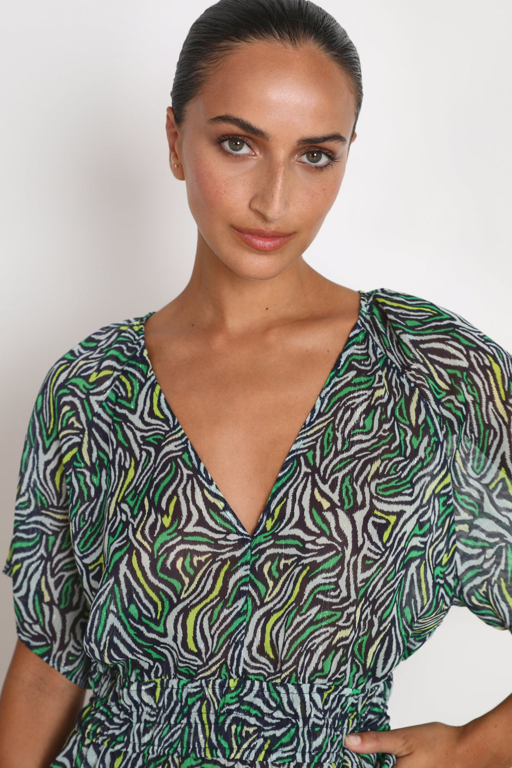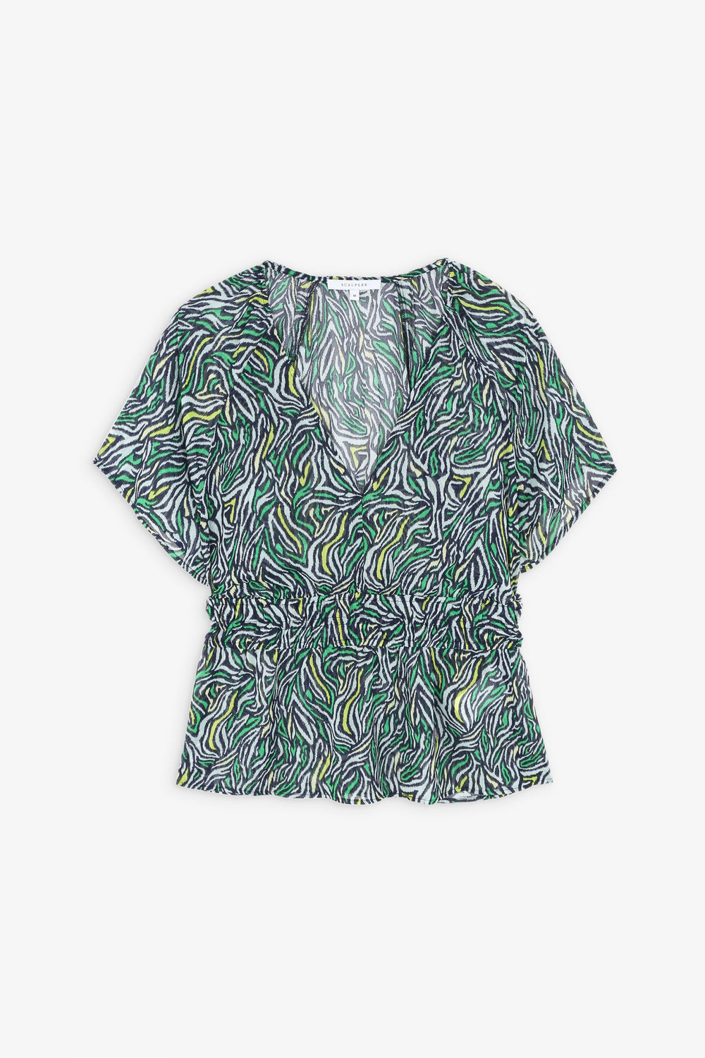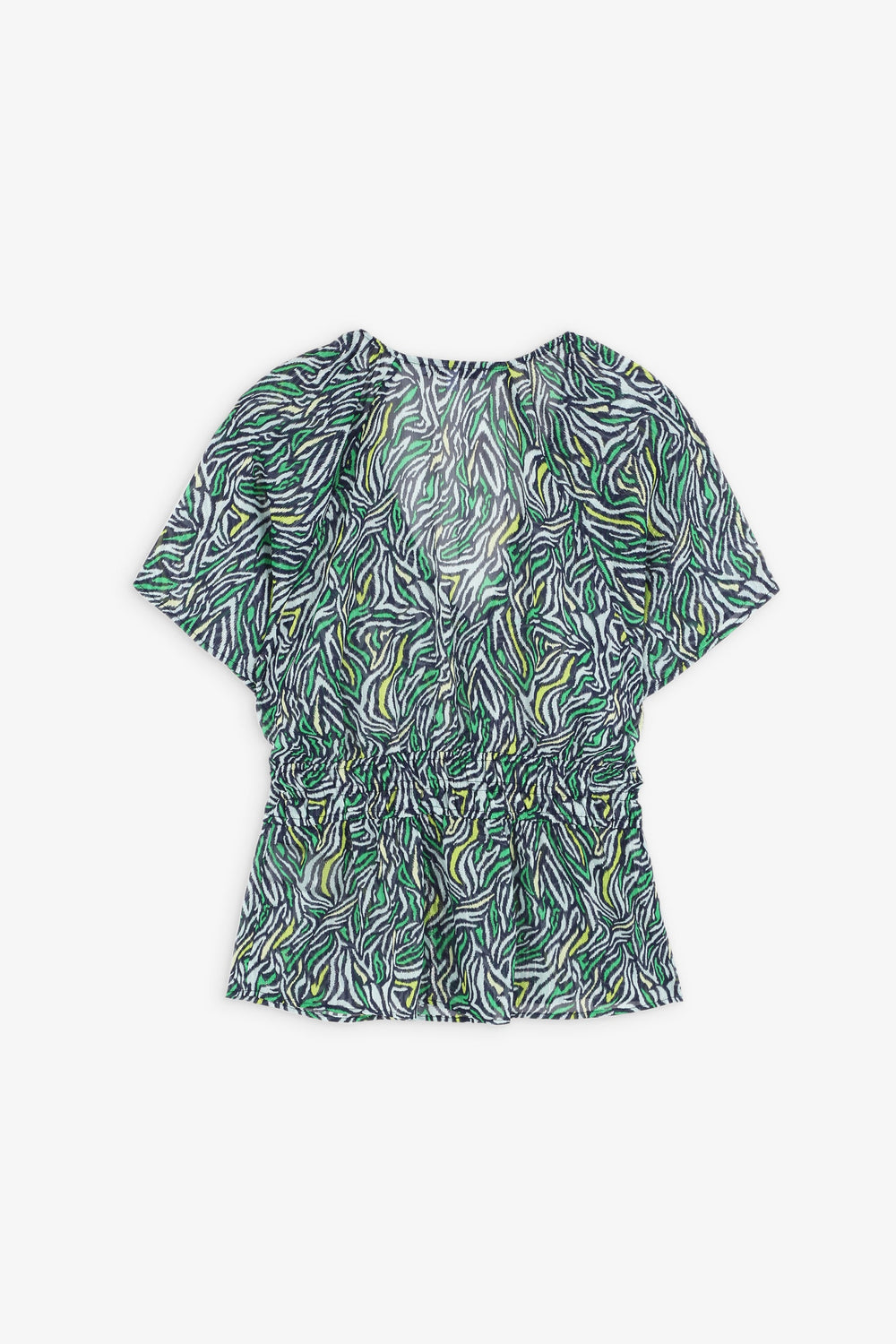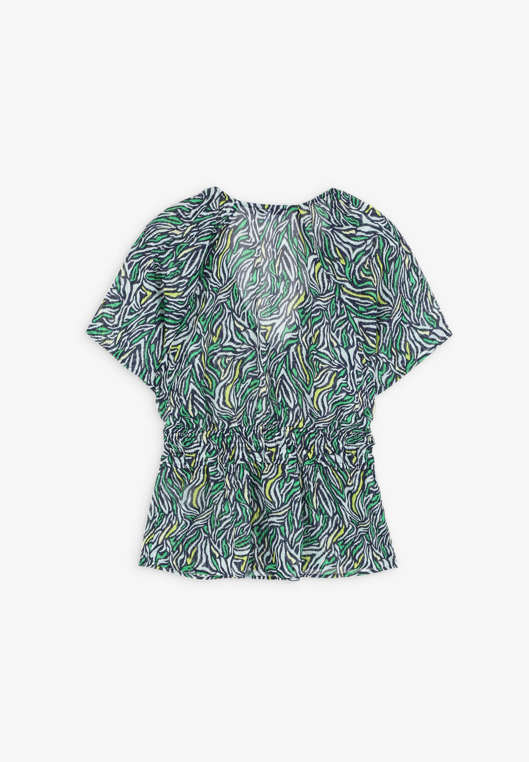 Animal print top with gathered waist.