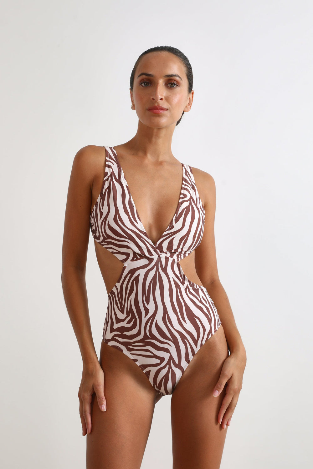 ANIMAL PRINT CUT-OUT SWIMSUIT