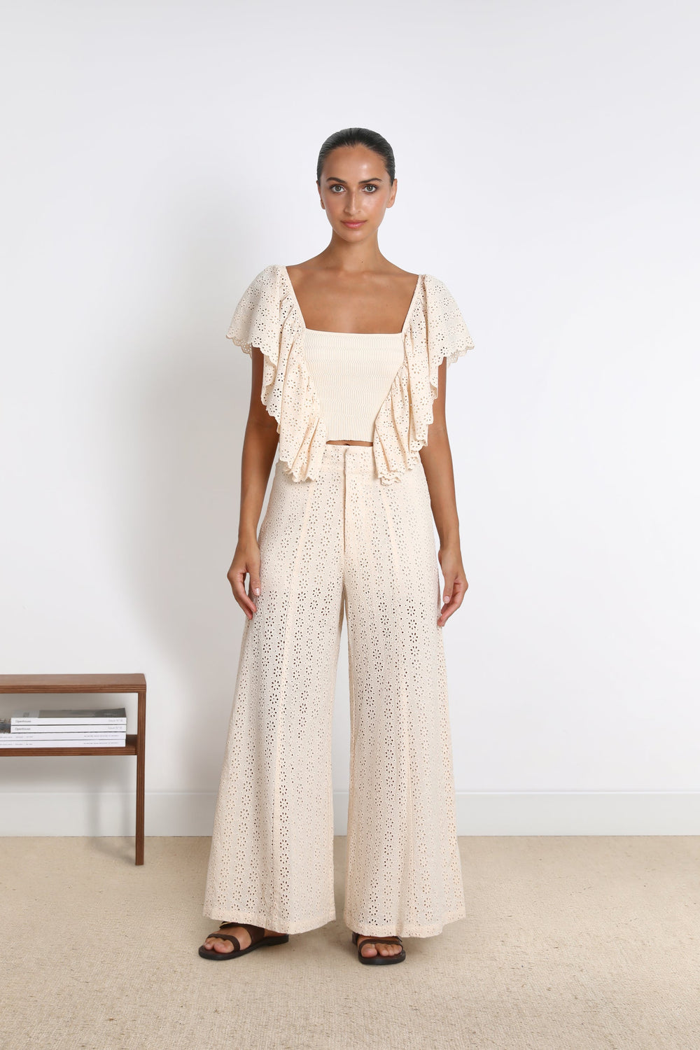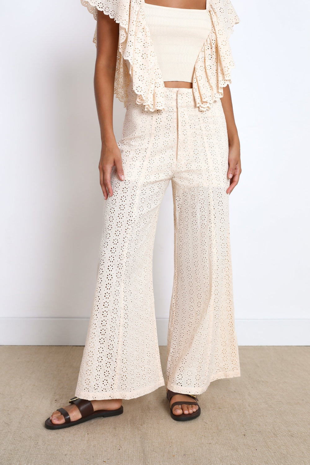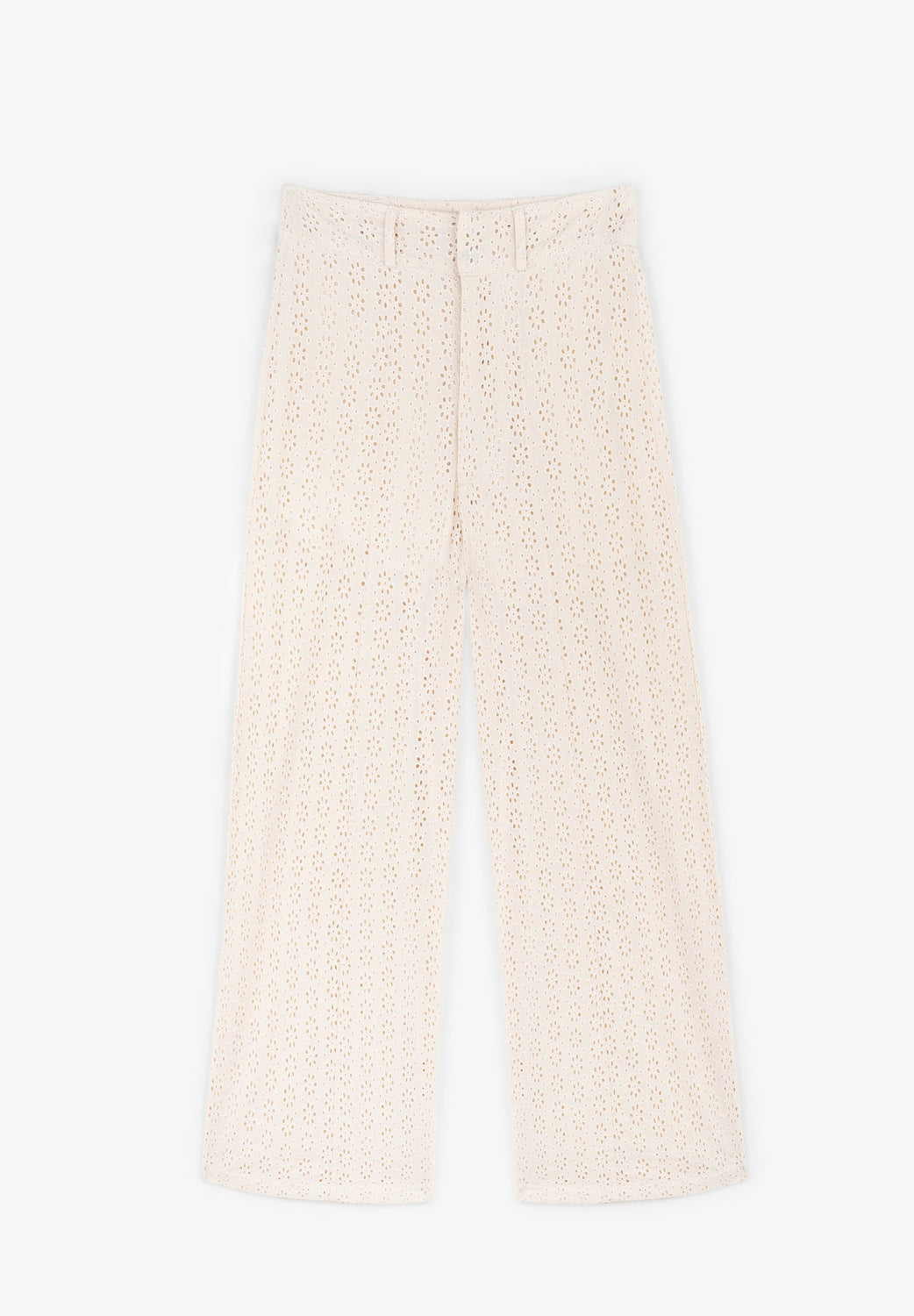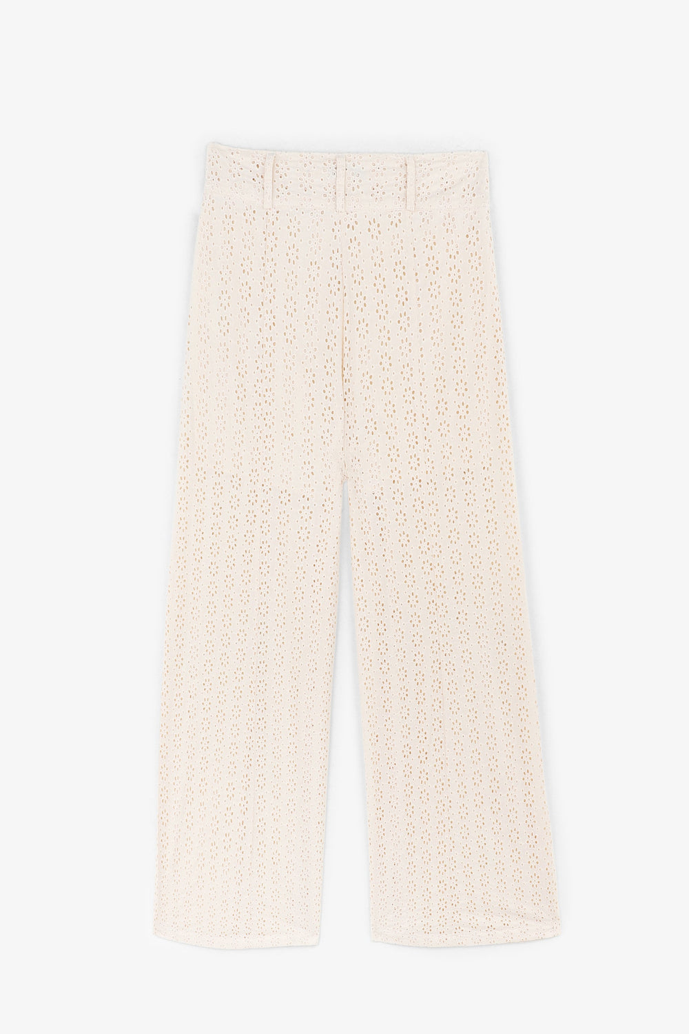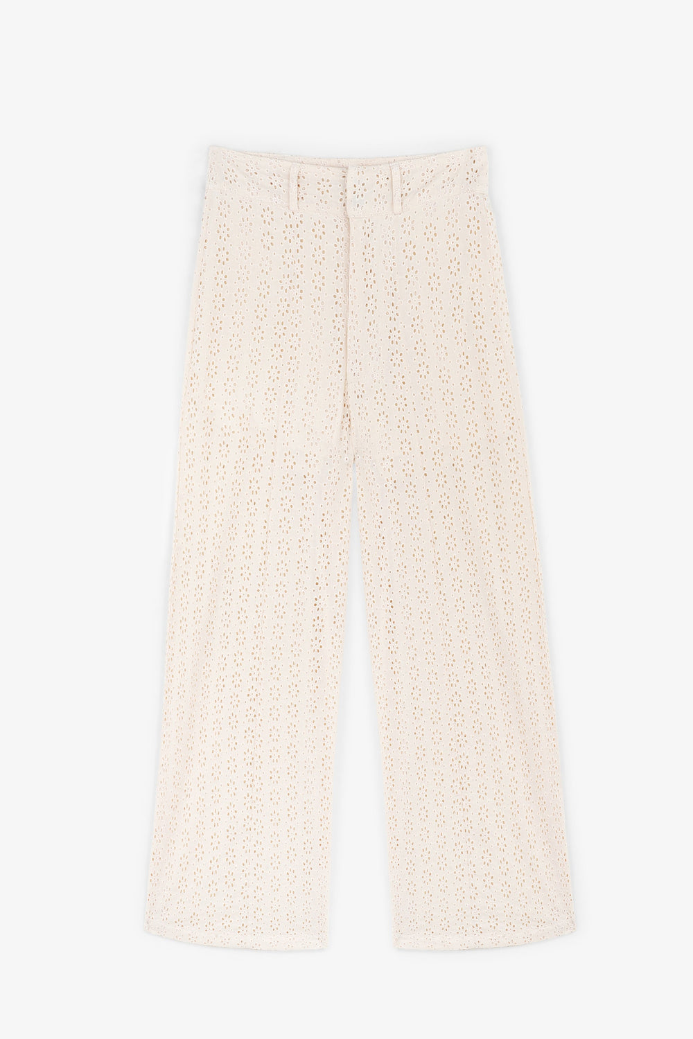 Trousers with broderie anglaise.