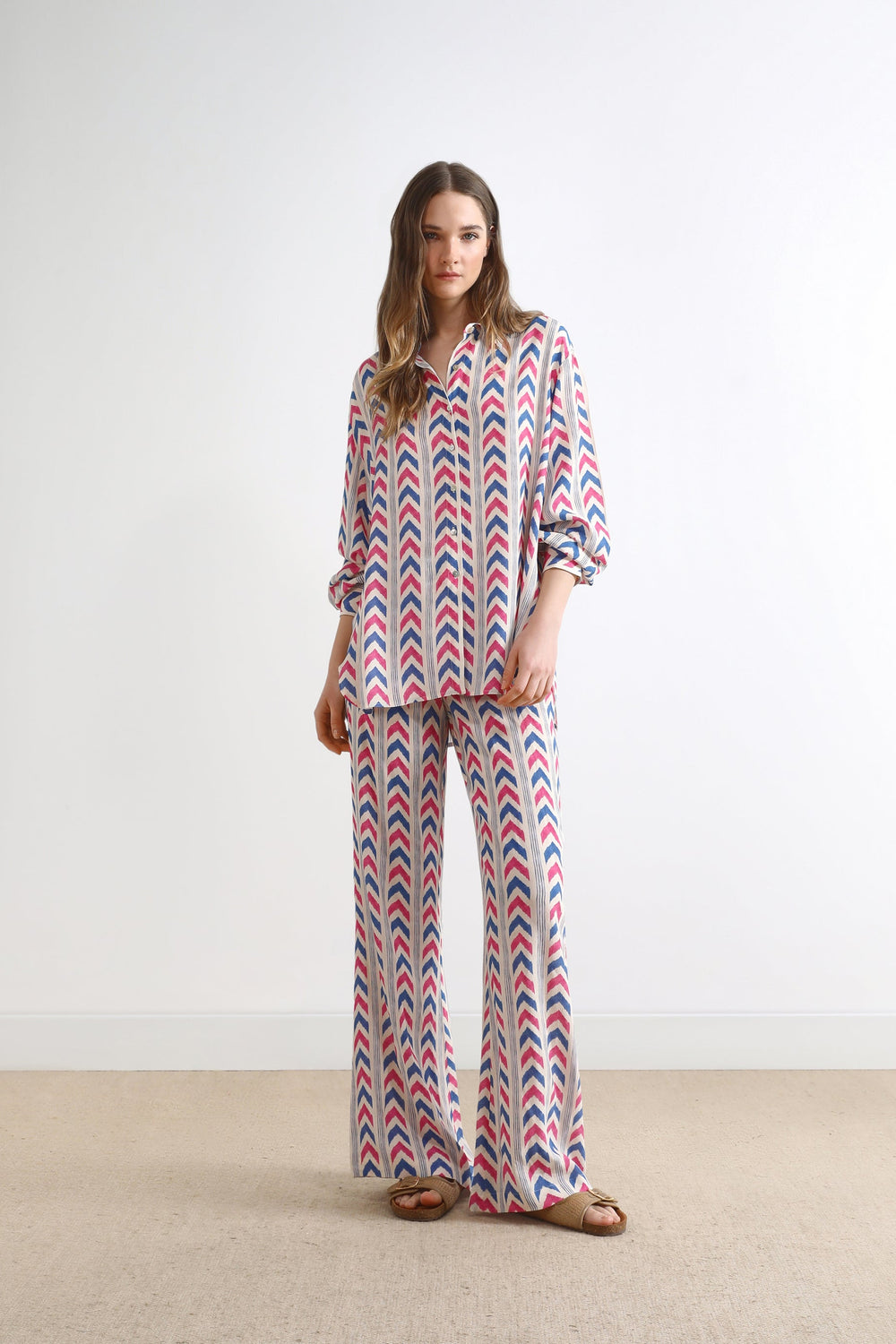 - Long sleeves with buttoned cuffs