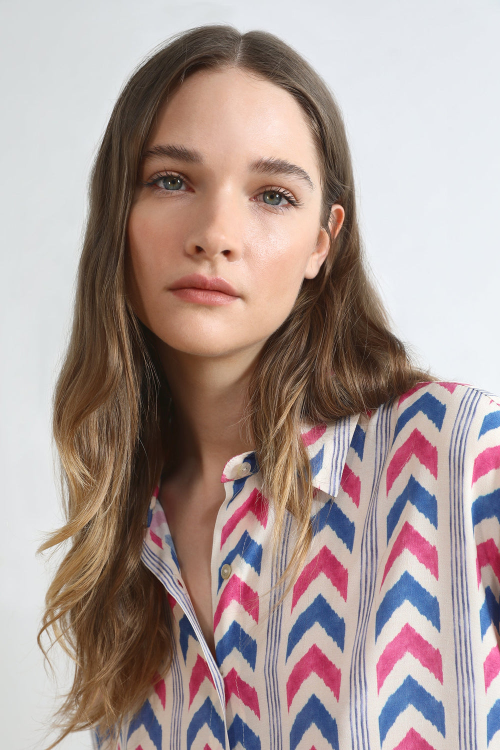 Shirt with striped print.