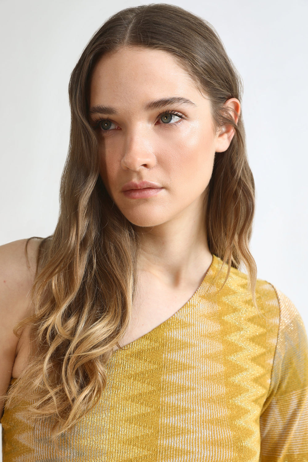 - Asymmetric neckline