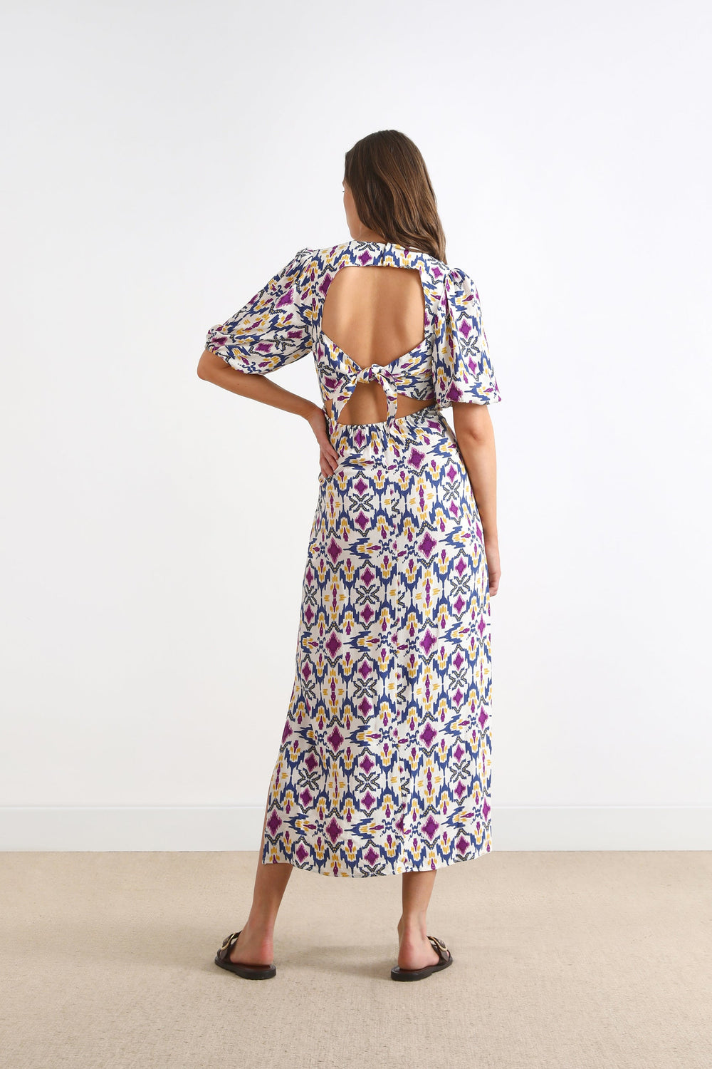 PRINTED MIDI DRESS WITH BACK VENT