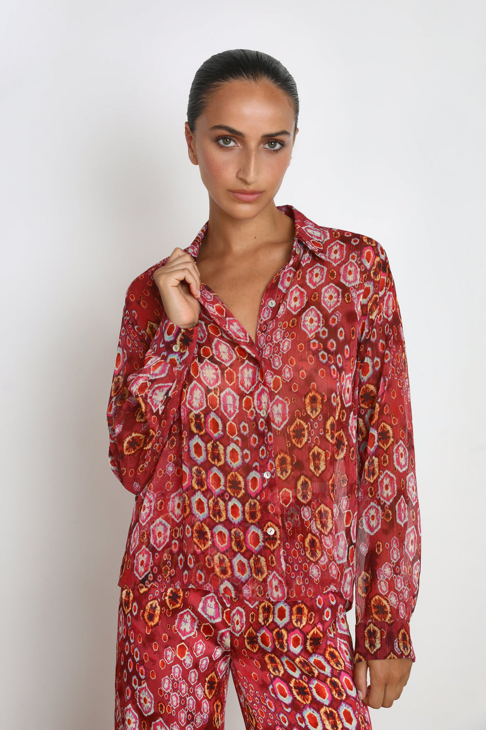 - Long sleeves with buttoned cuffs