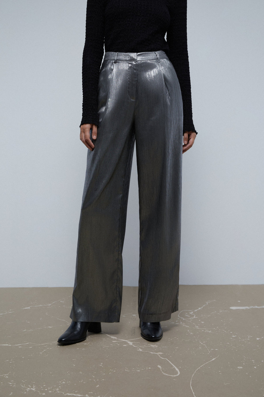 Satin palazzo trousers with darts