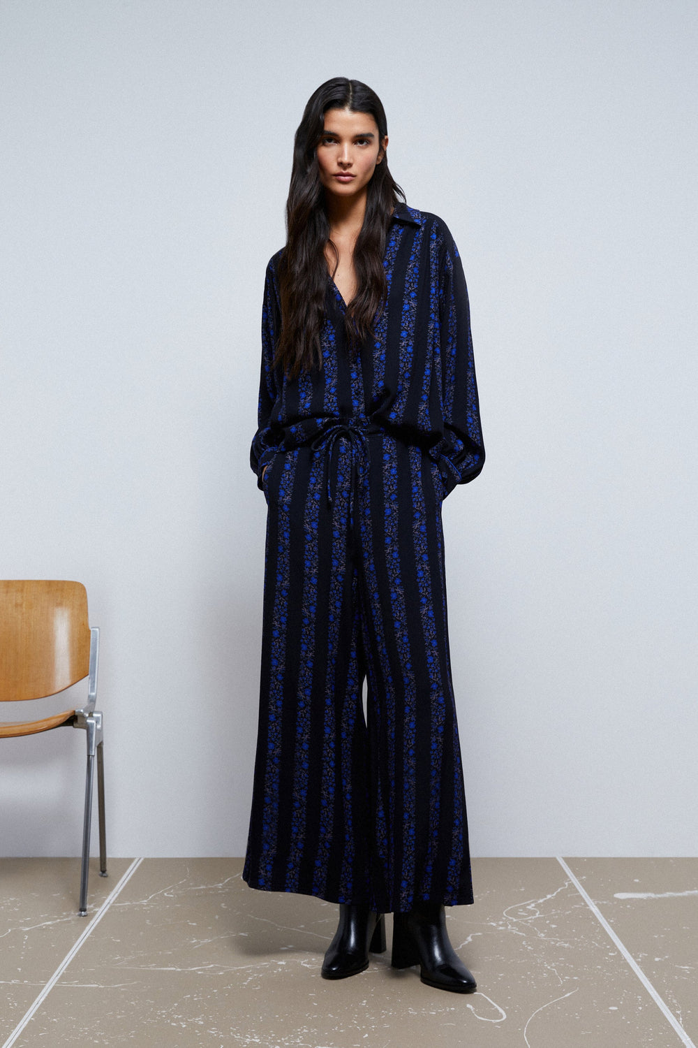 PALAZZO STRIPED FLORAL TROUSERS