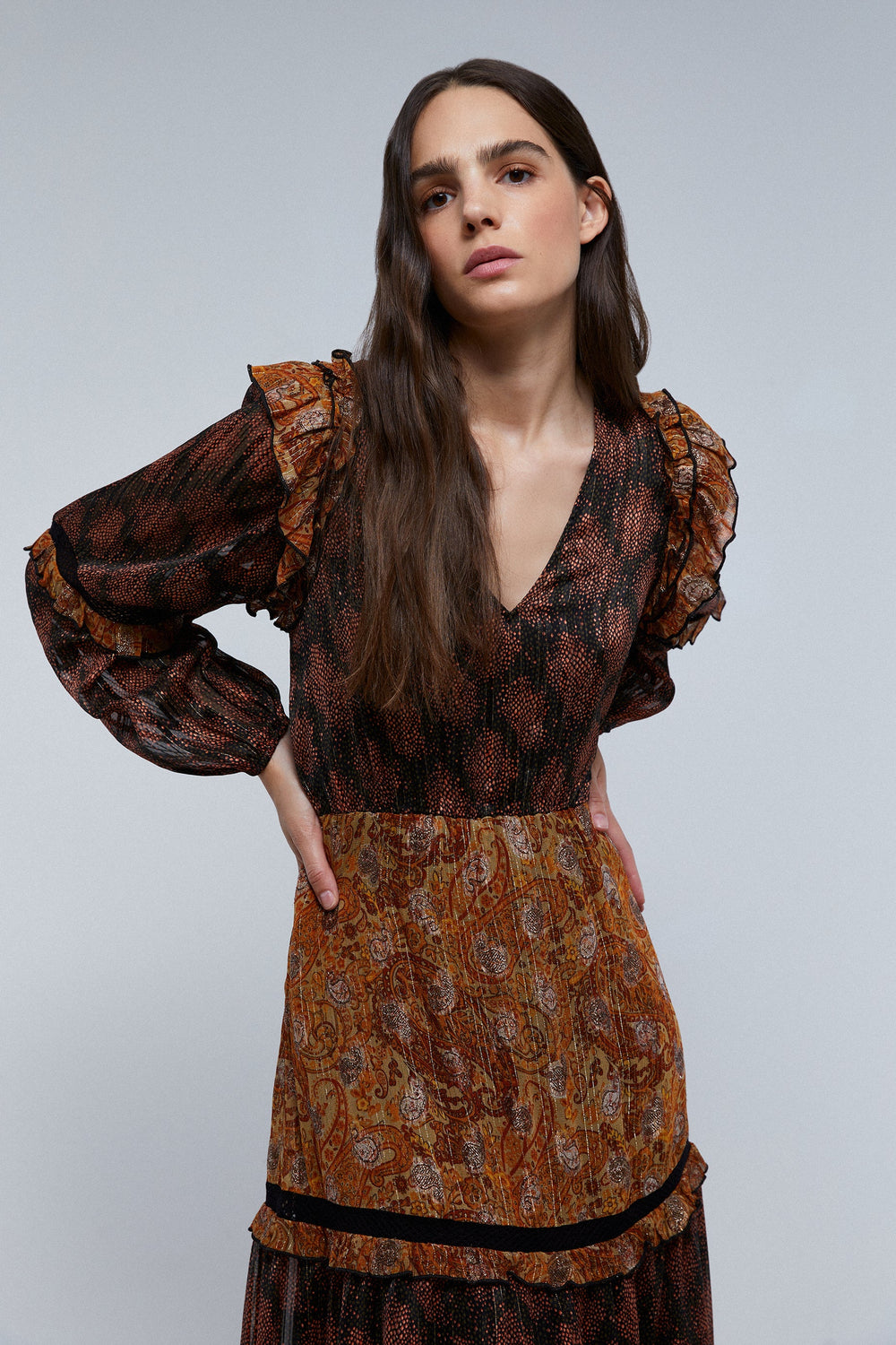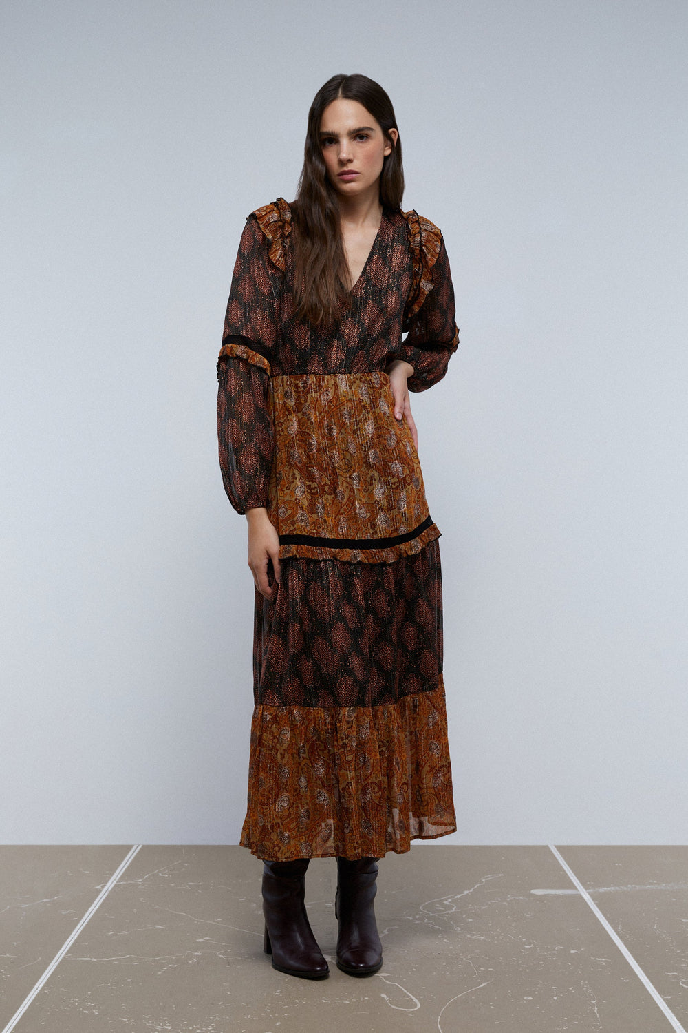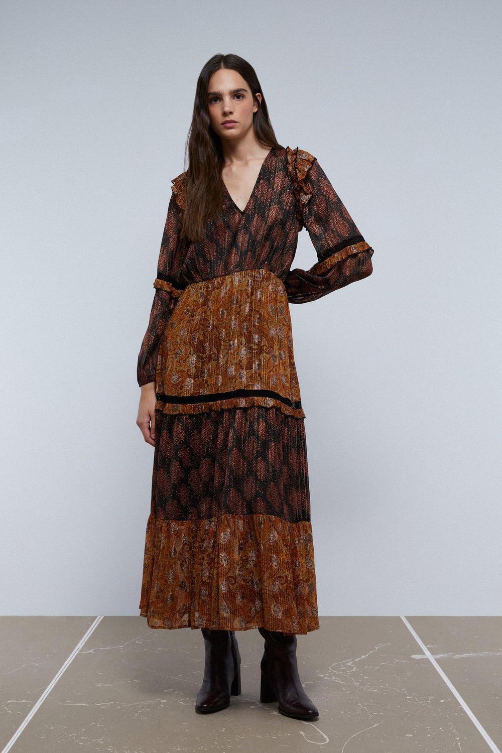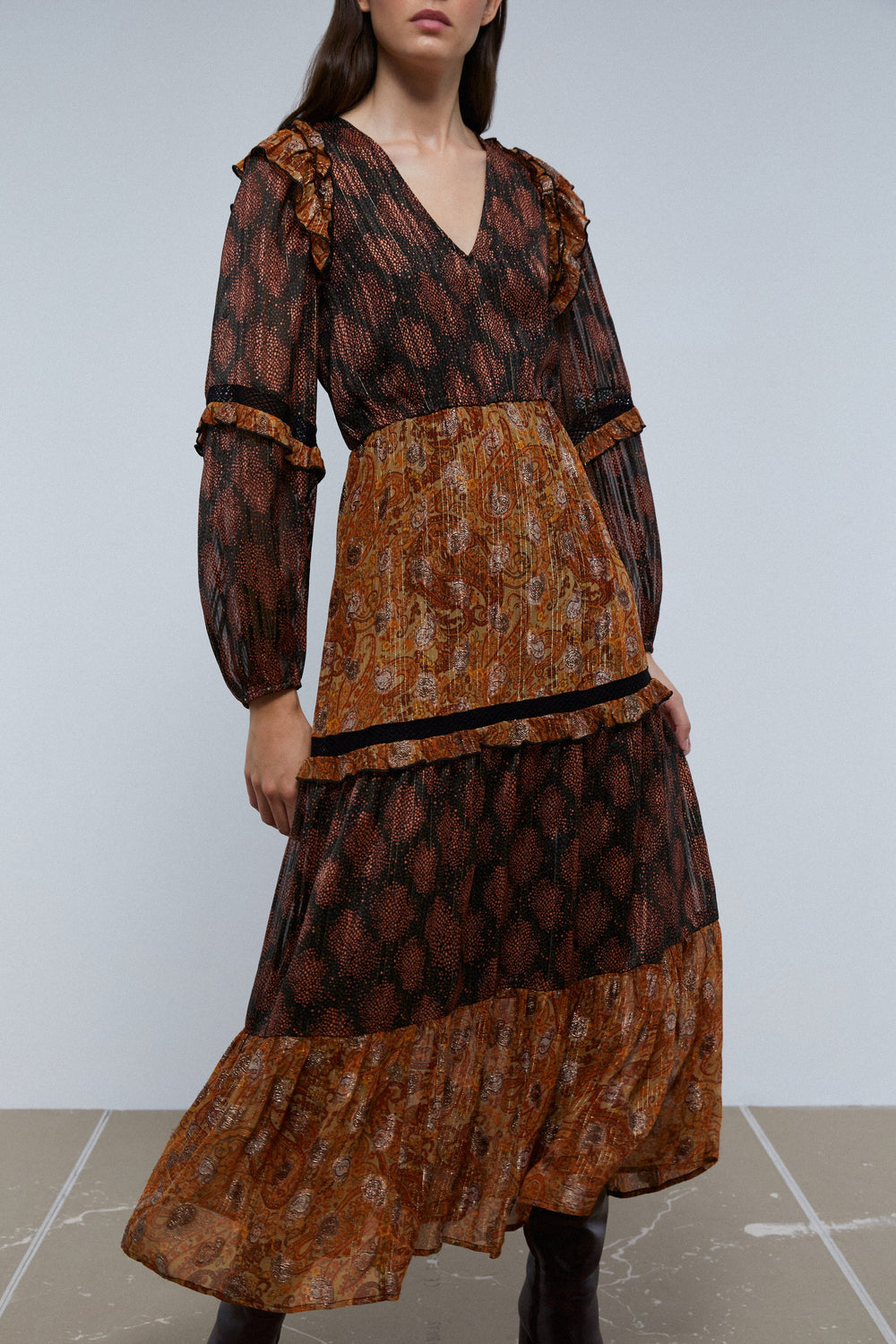 MIDI DRESS WITH LUREX PAISLEY
