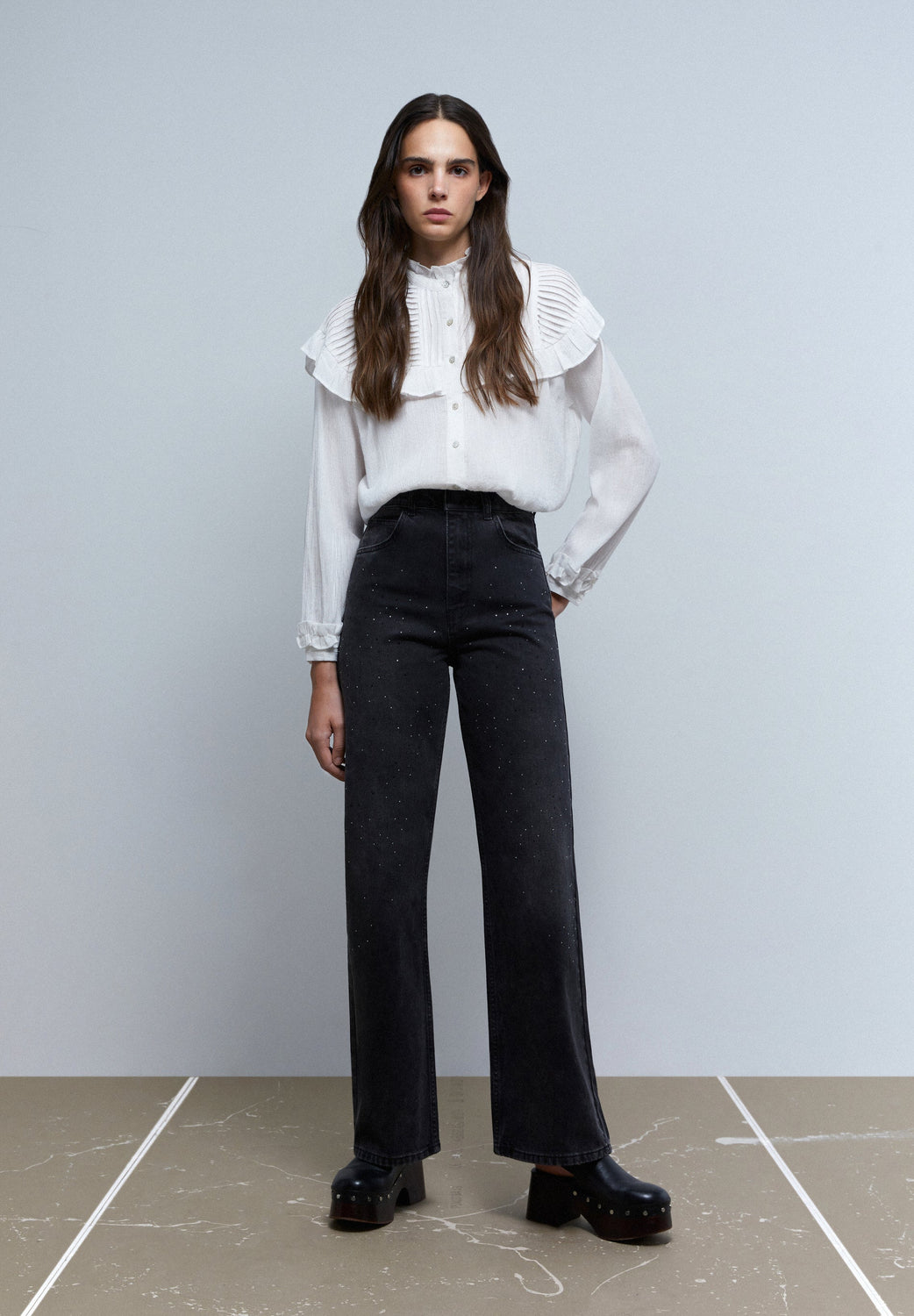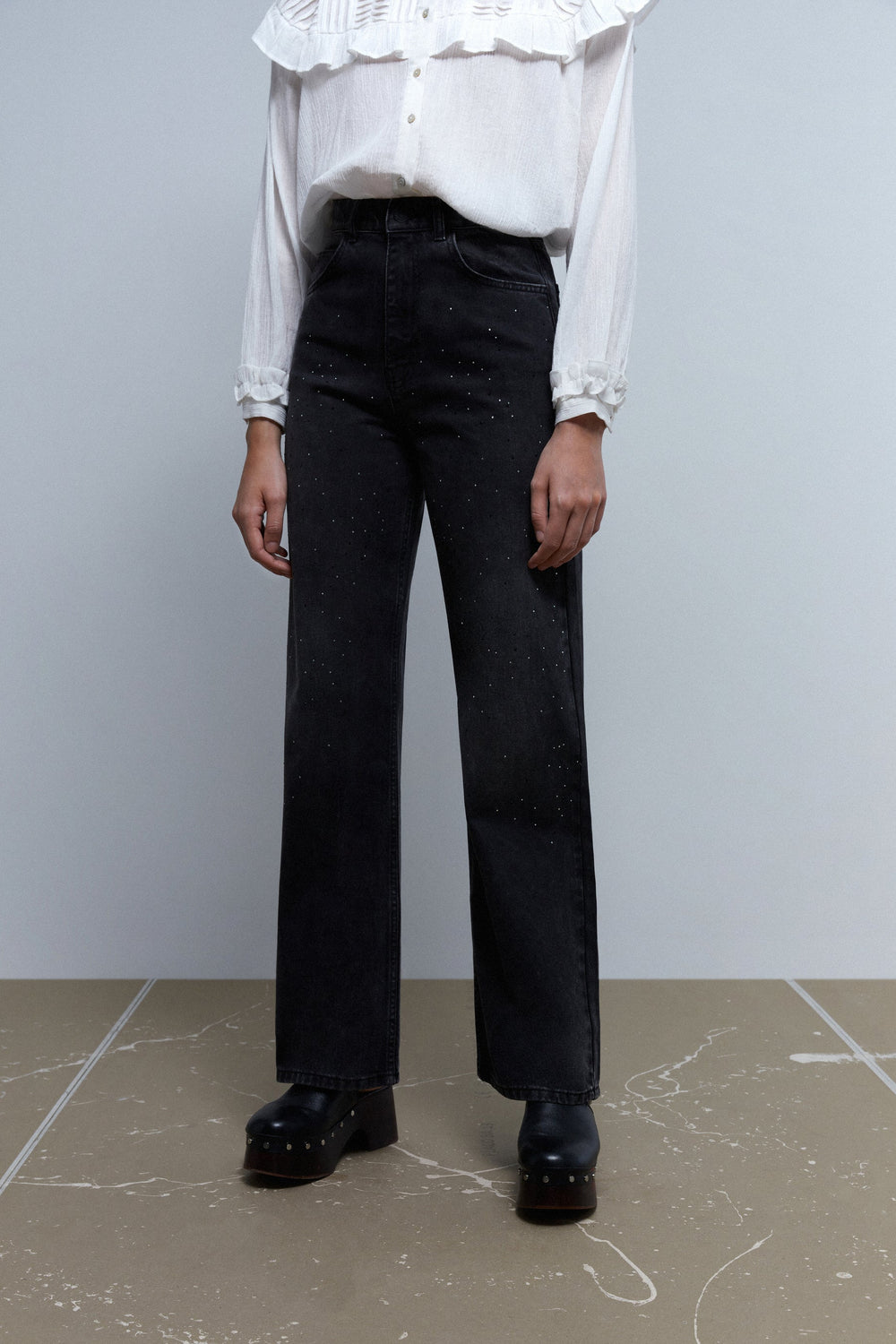 WIDE LEG JEANS WITH GLITTER