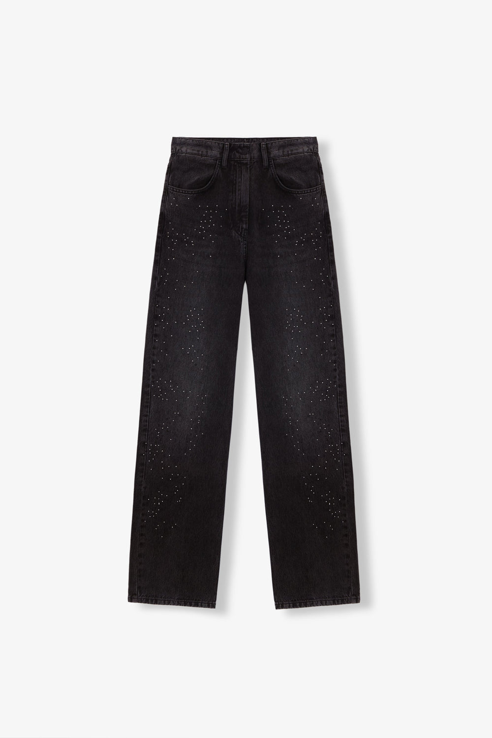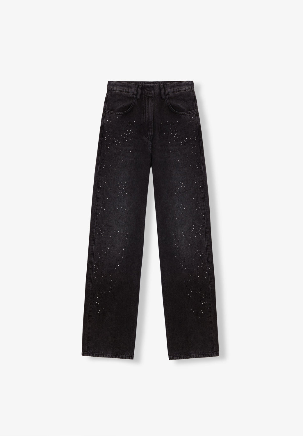 Wide leg jeans with light glitter appliqué detailing on the front