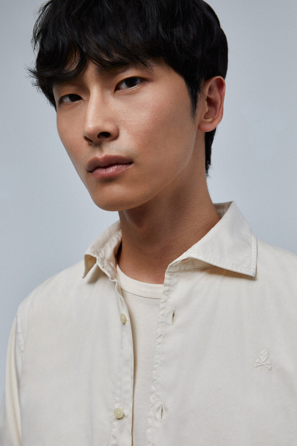 Faded shirt with a matching embroidered skull.