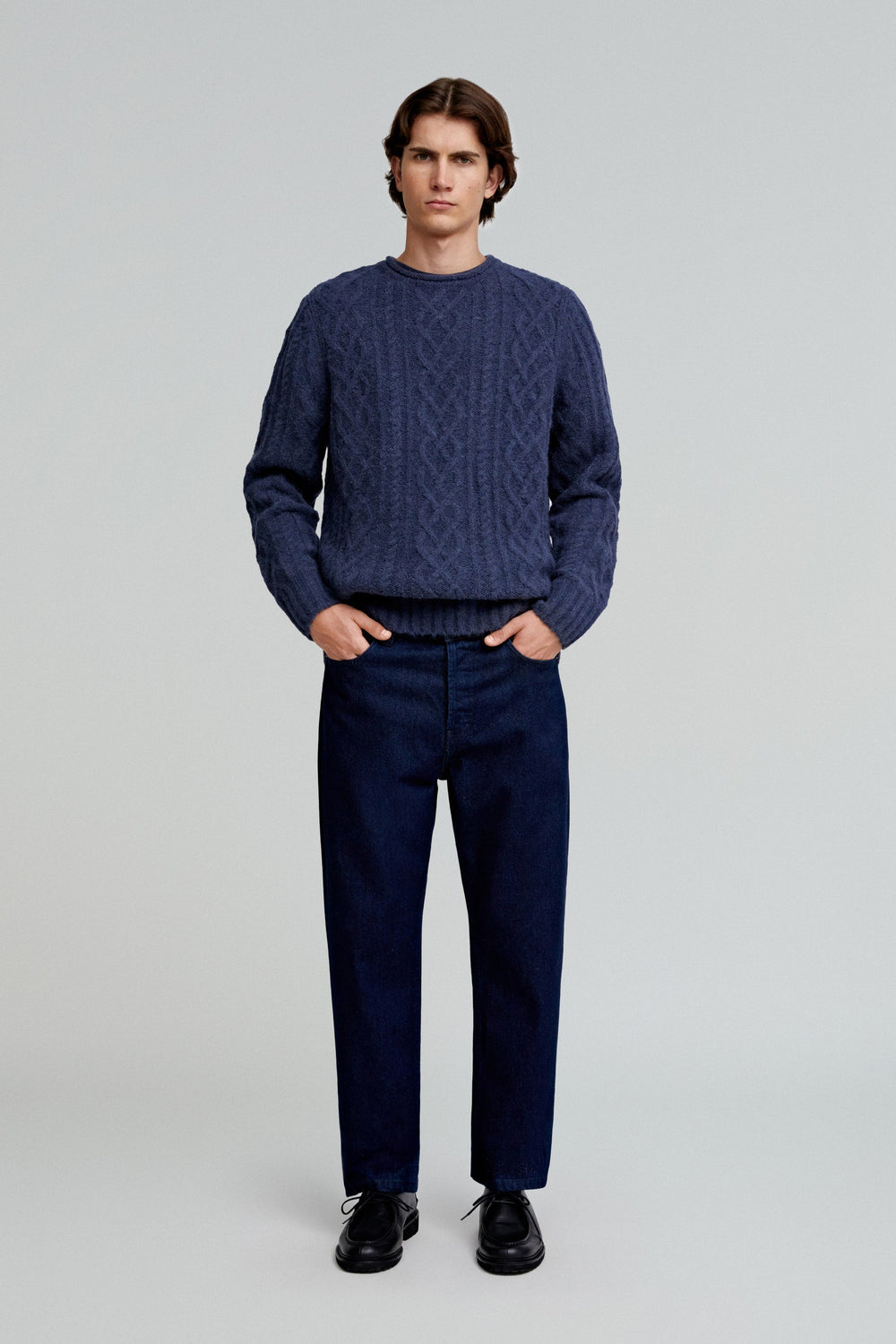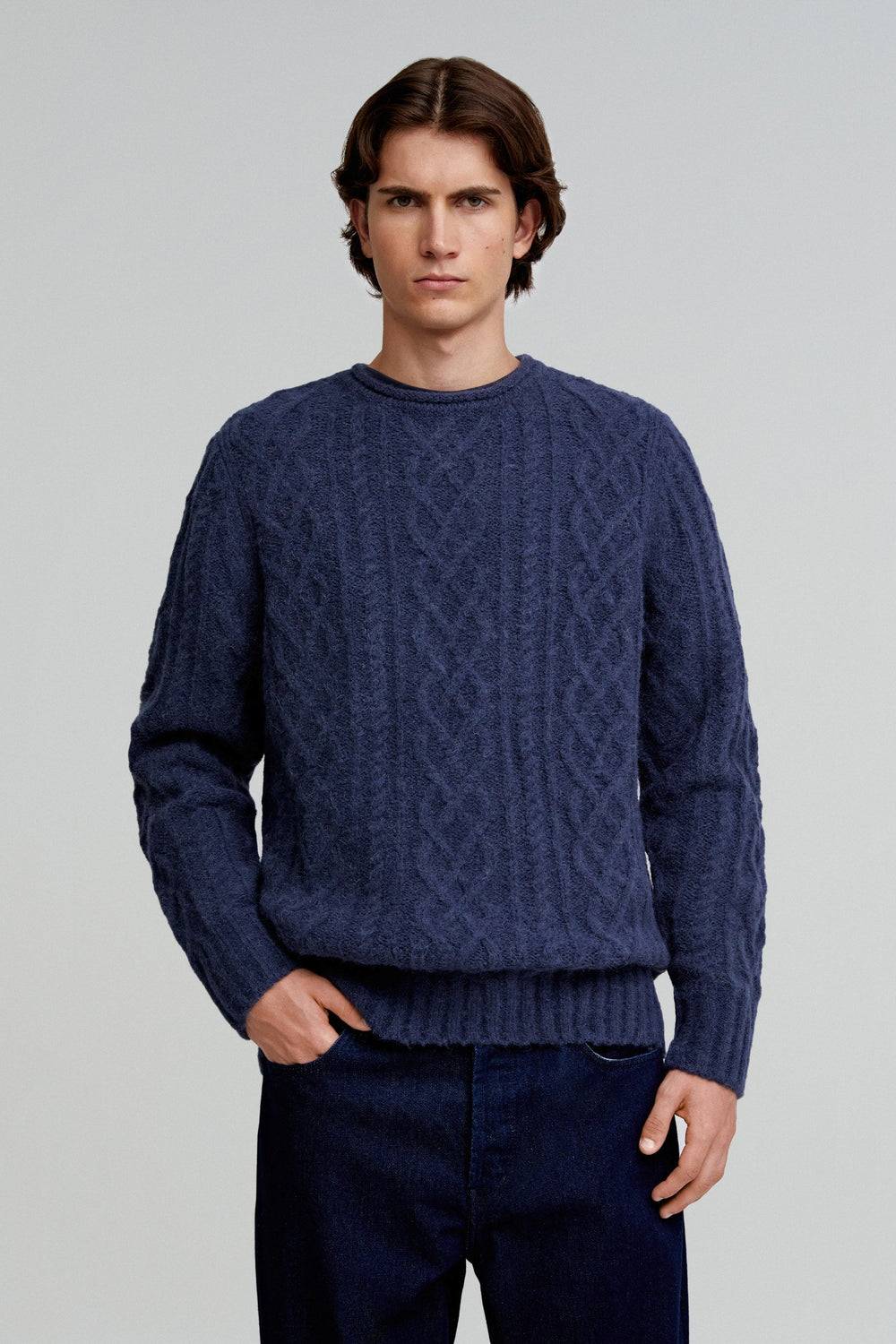 Jumper made of wool and alpaca blend. Regular fit, round neck and long sleeves. Cable-knit detail.