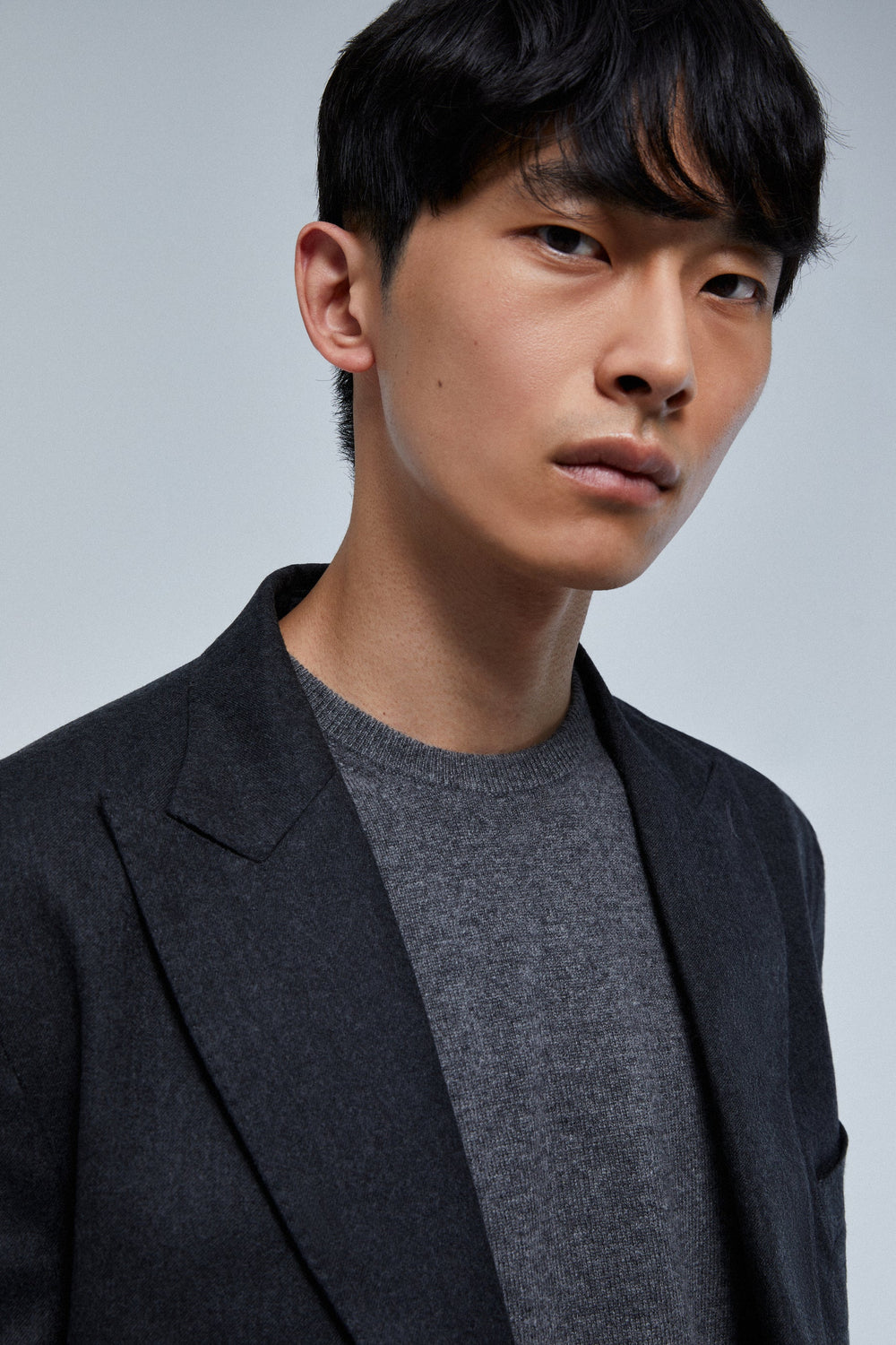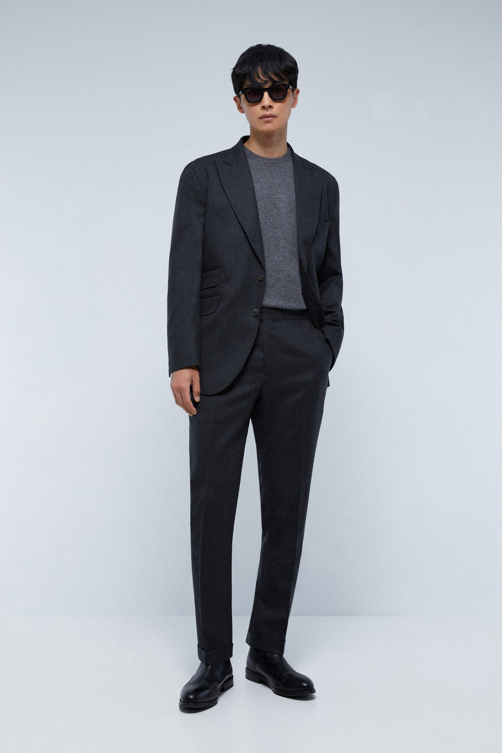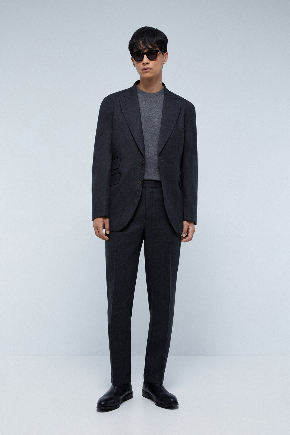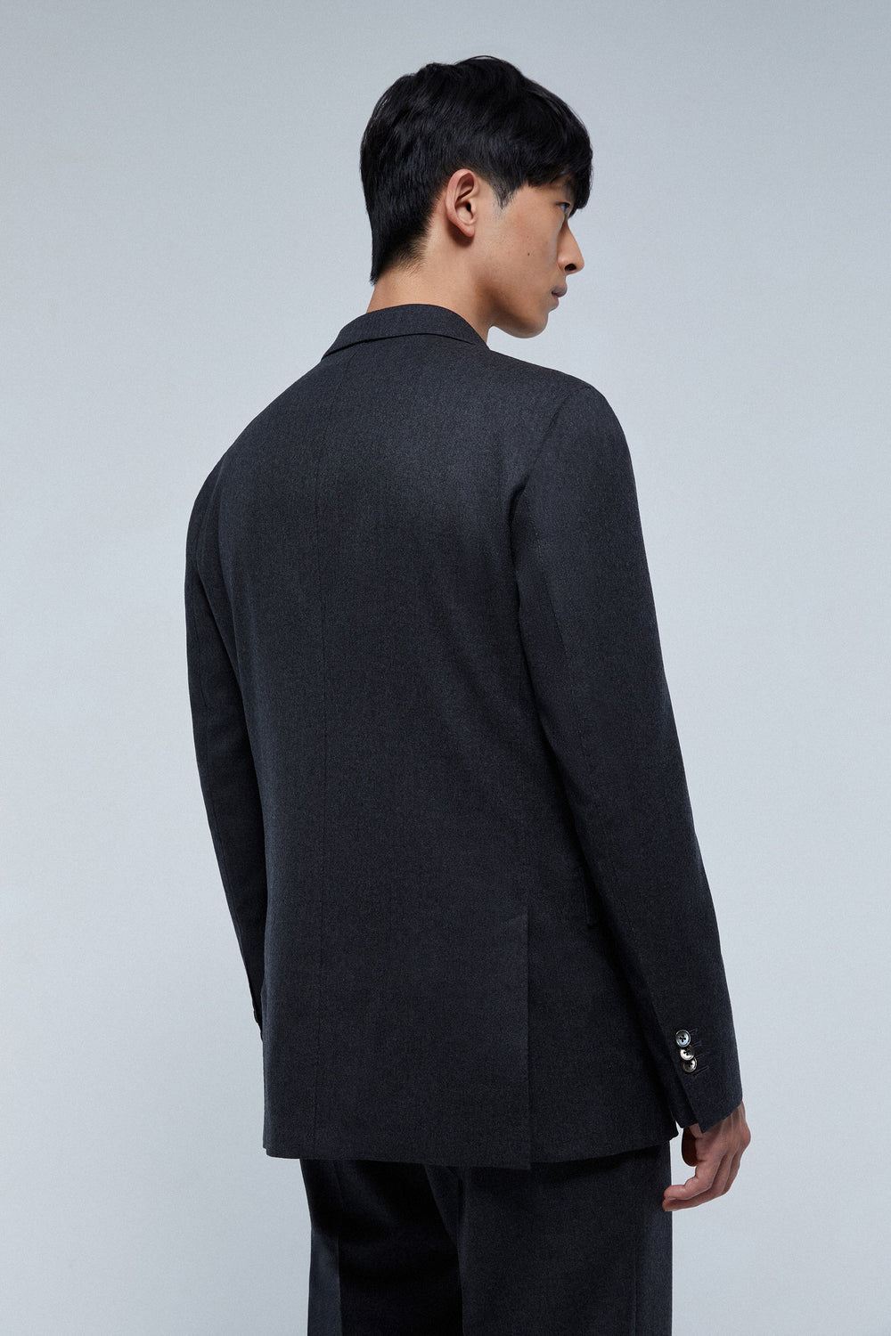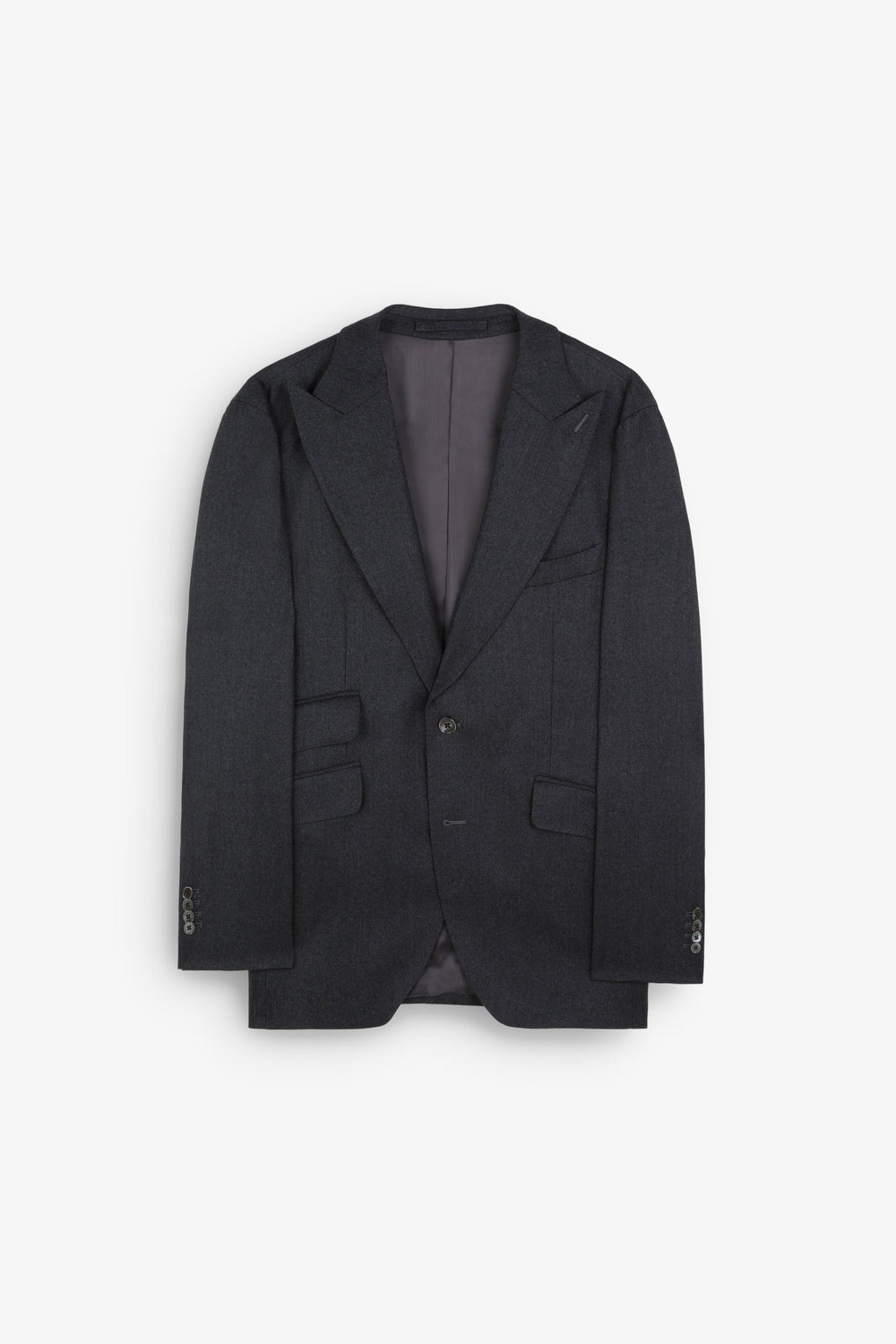 - Unstructured blazer with peaked lapel collar. Button fastening and flap and ticket pockets. Neapolitan long sleeves with working buttoned cuffs